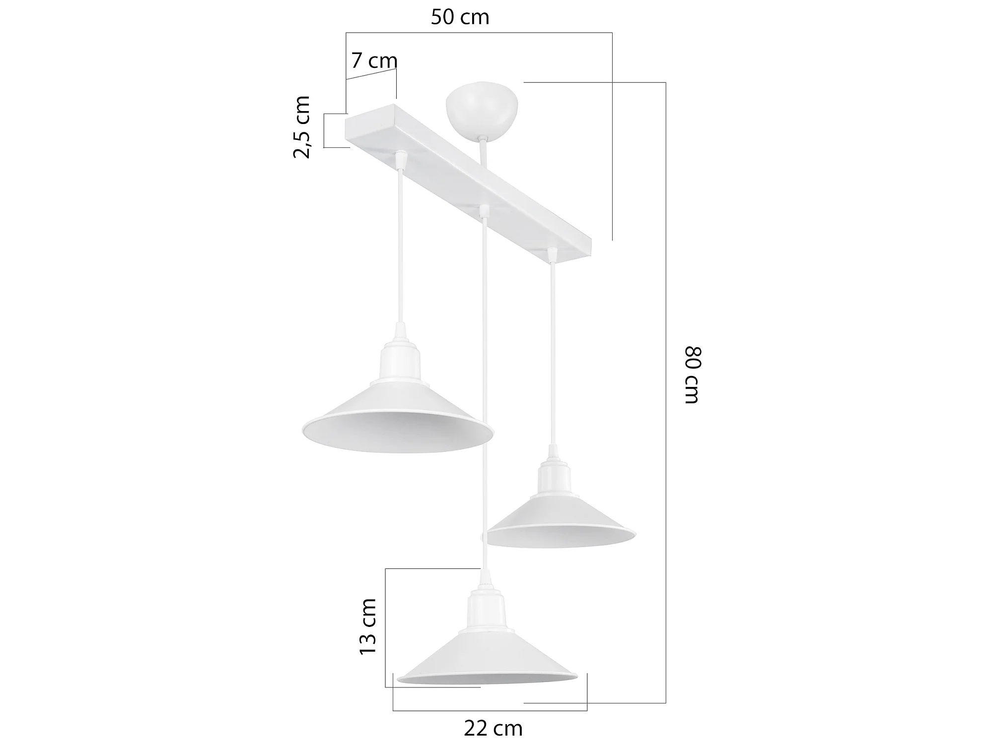 Suspension Darlington en plastique hauteur 80 cm 3 x E27 blanc [lux.pro]