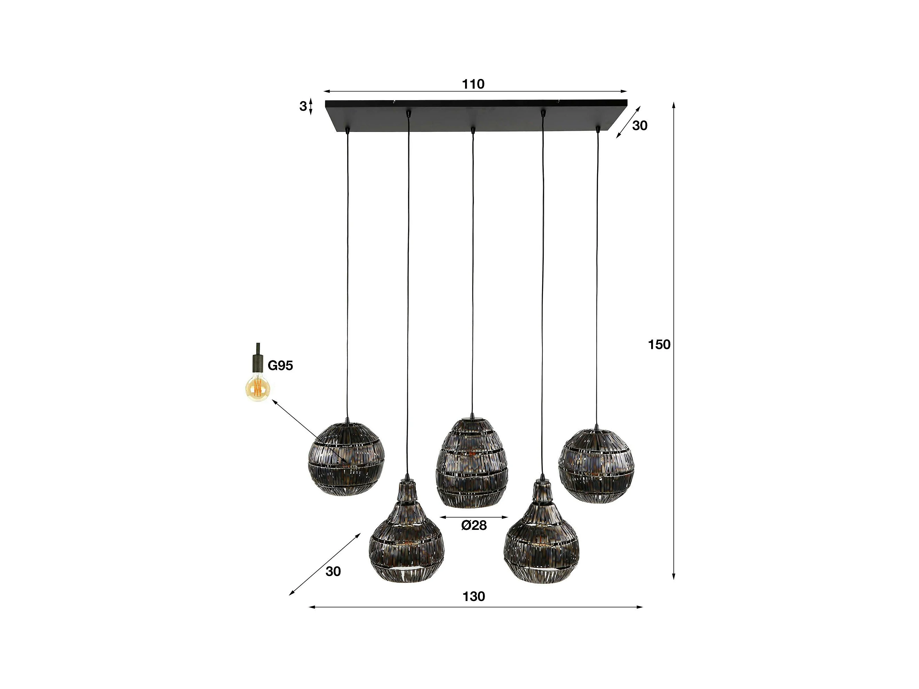 Suspension de salle à manger avec 5 abat-jour en métal tressé TRIBECA