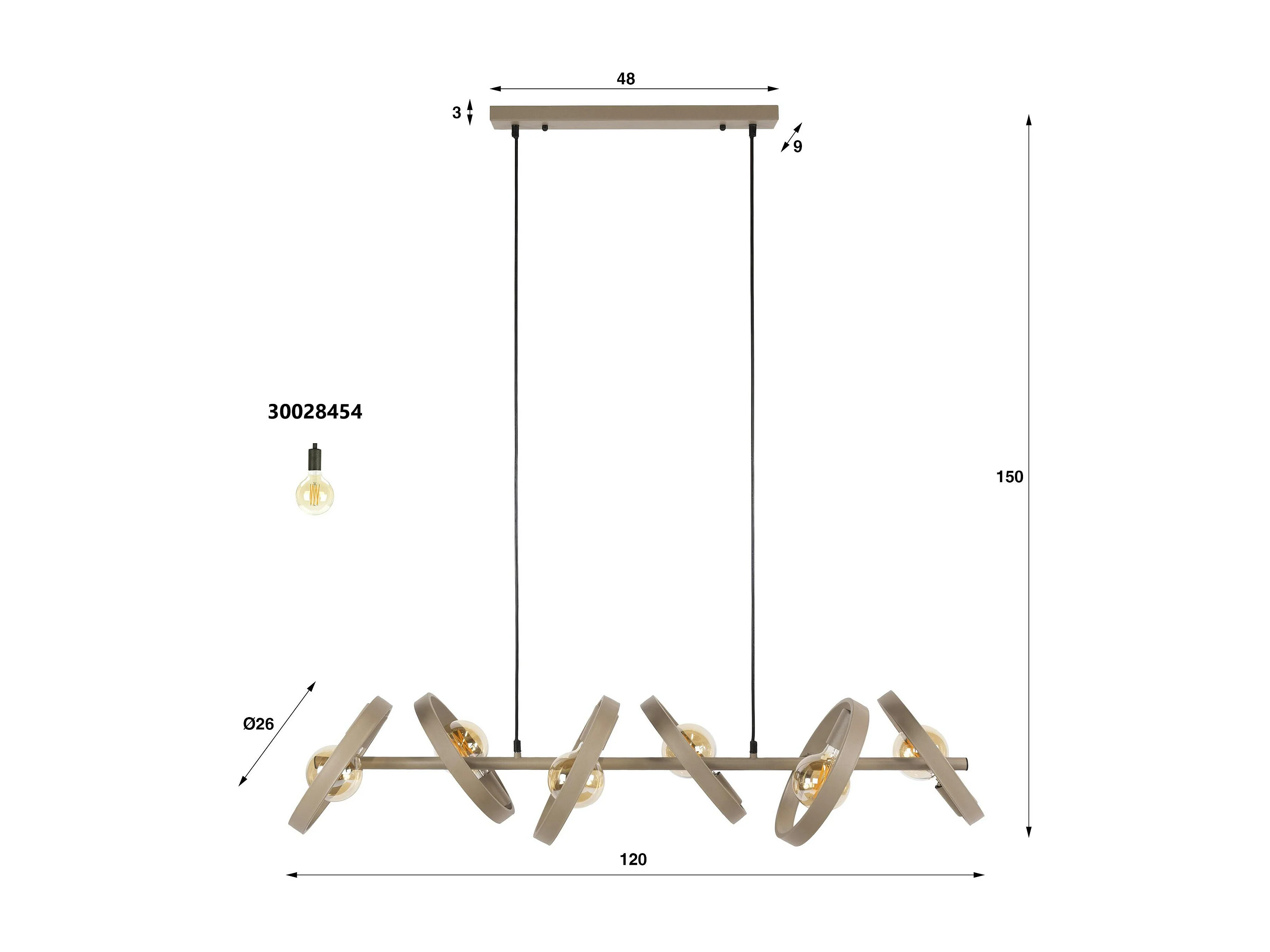 Suspension de table beige 6 anneaux mobiles RALF