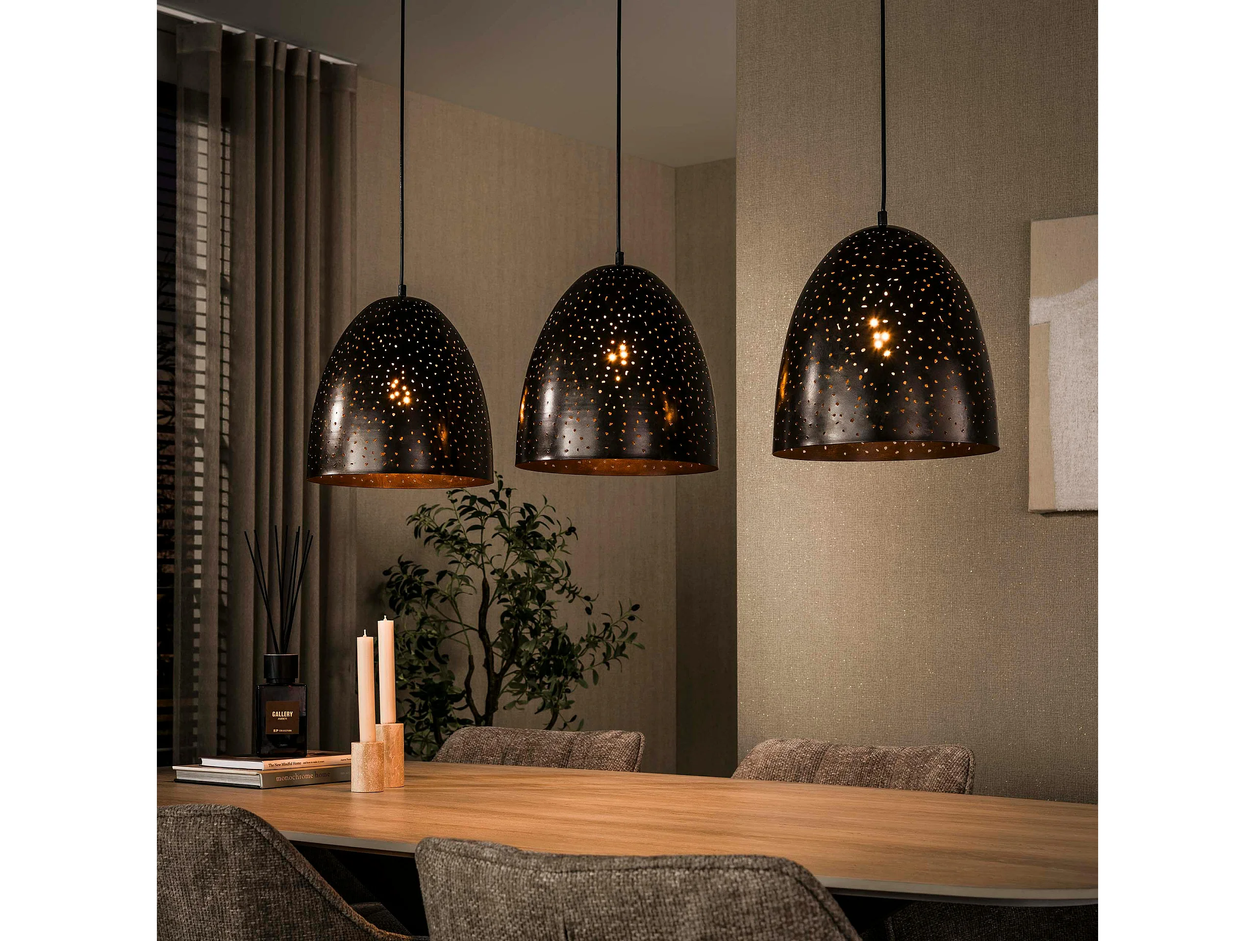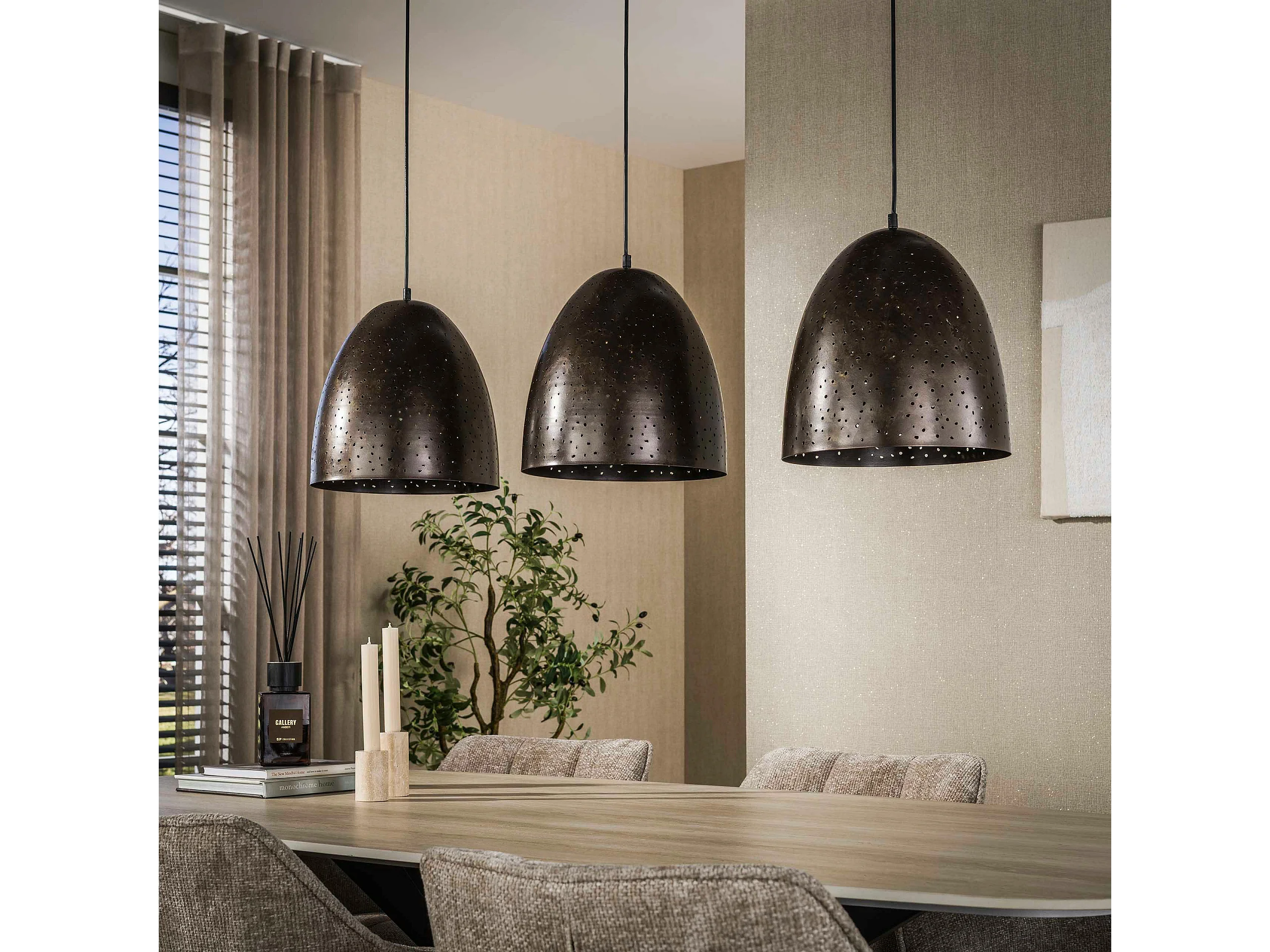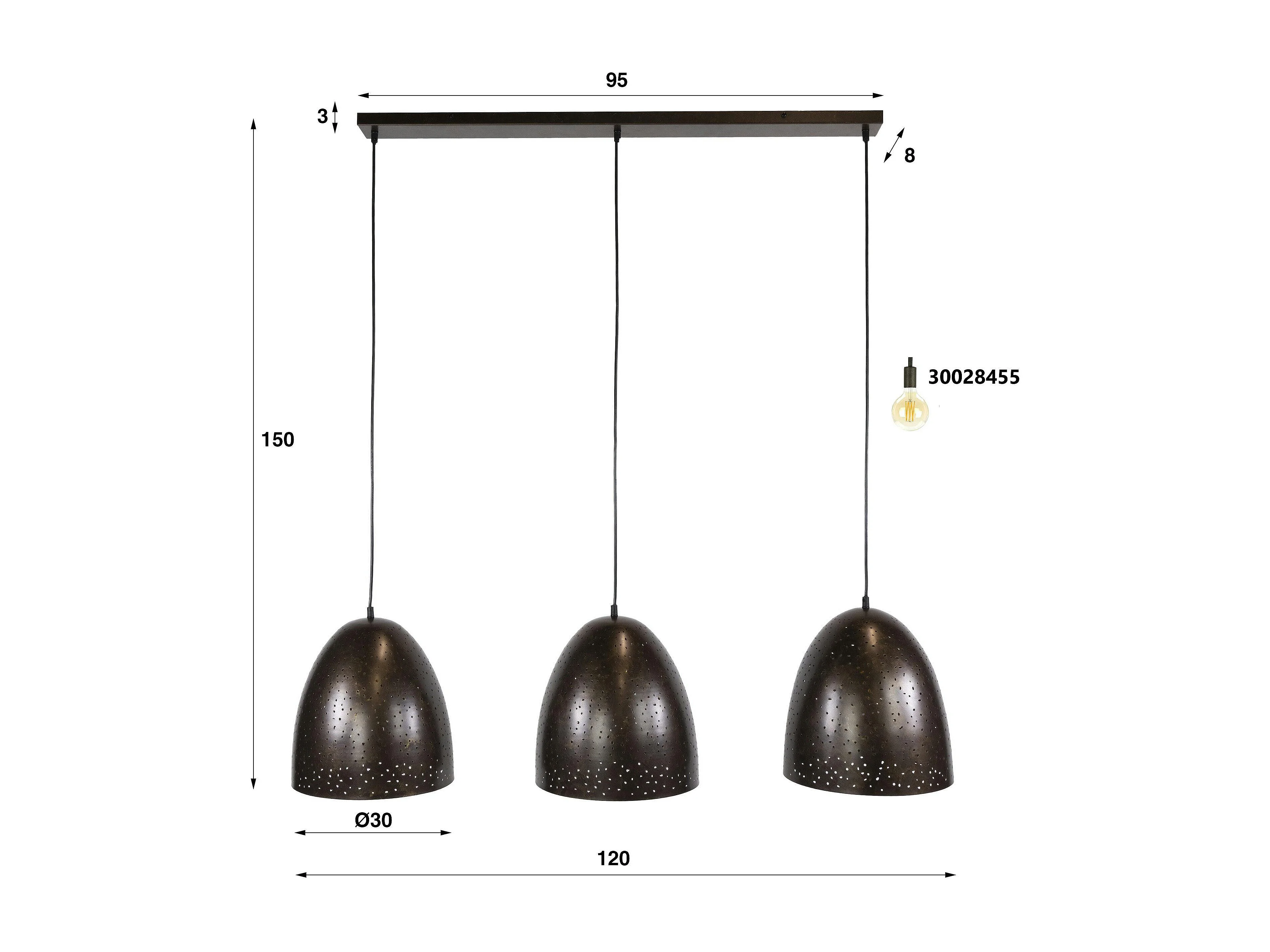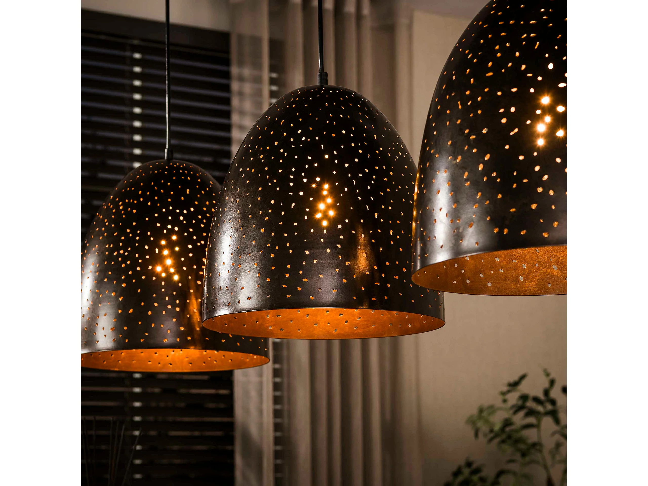 Suspension de table en métal brun perforé 3 abat-jour RALF