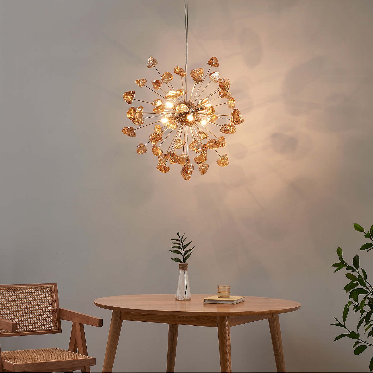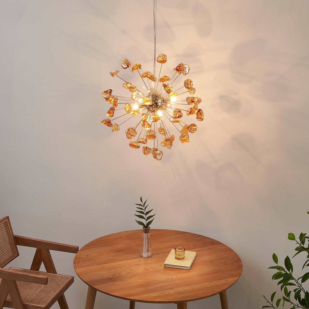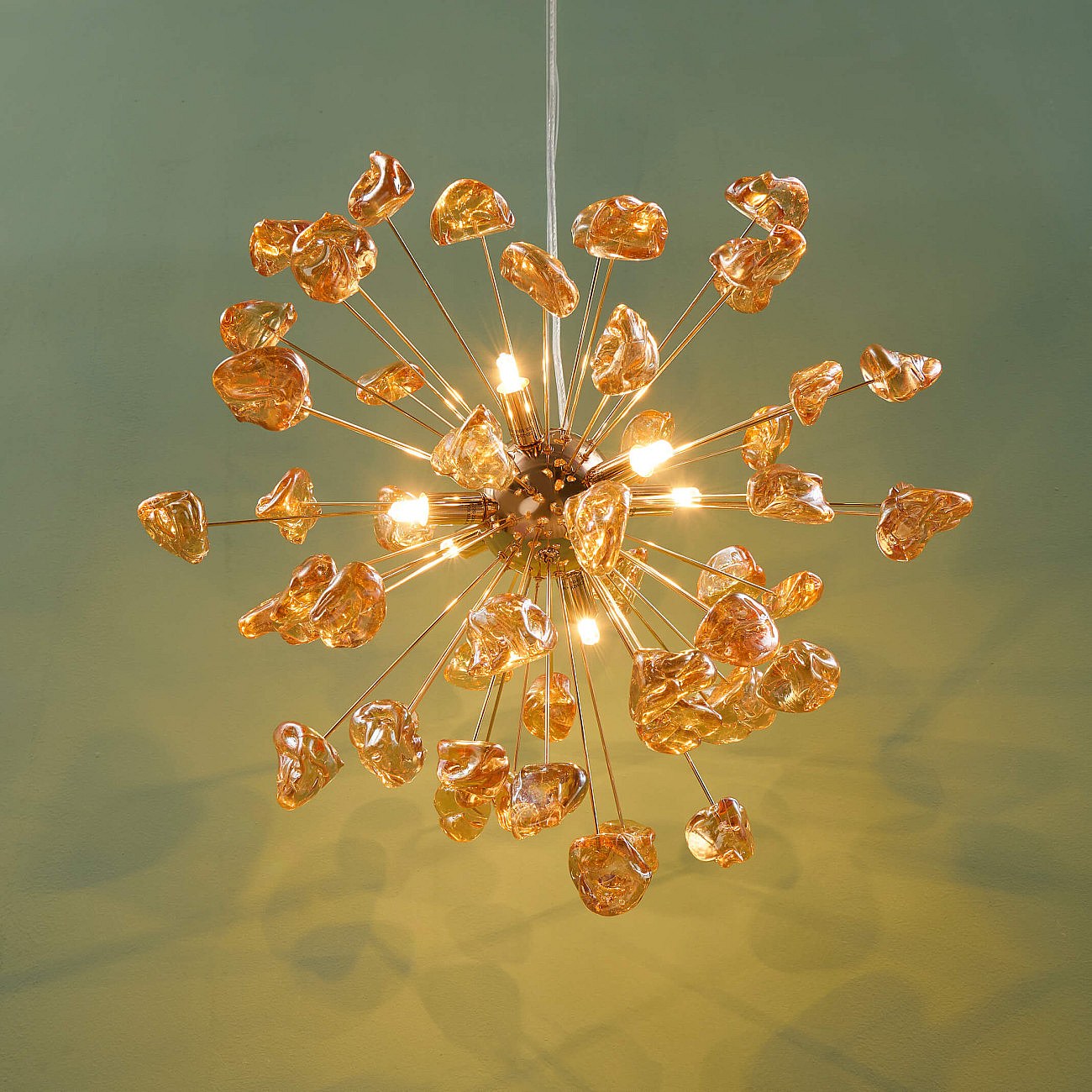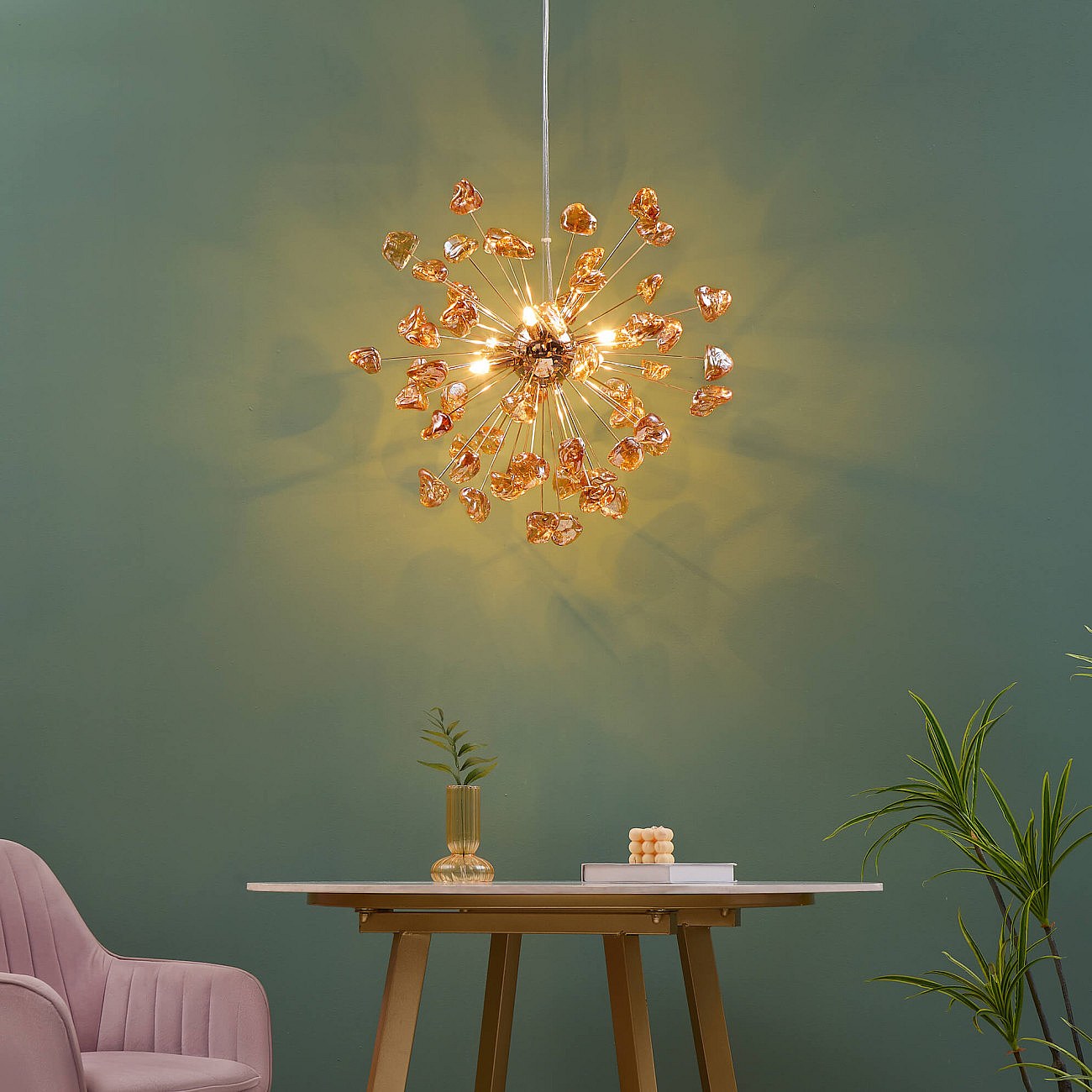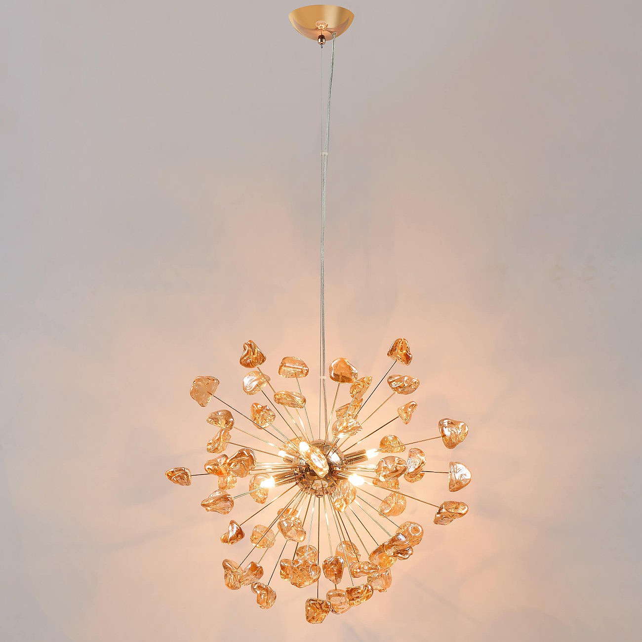 Suspension décorative métal doré et verre ambré - Rimelia