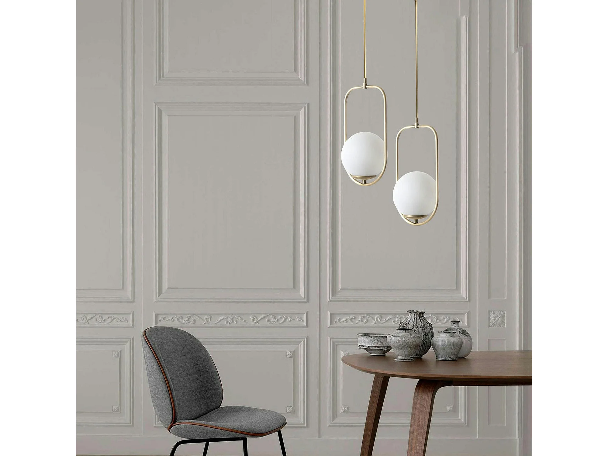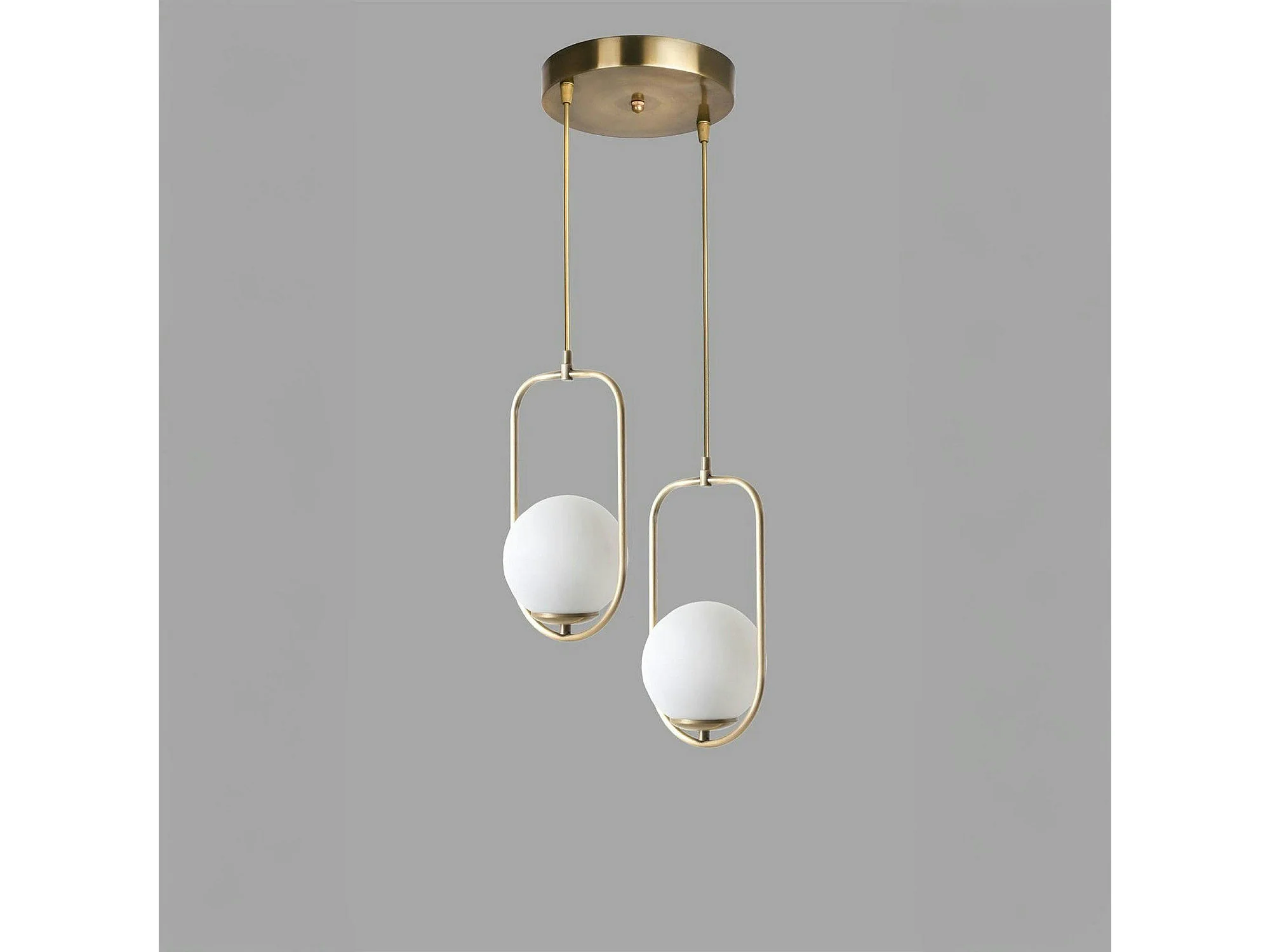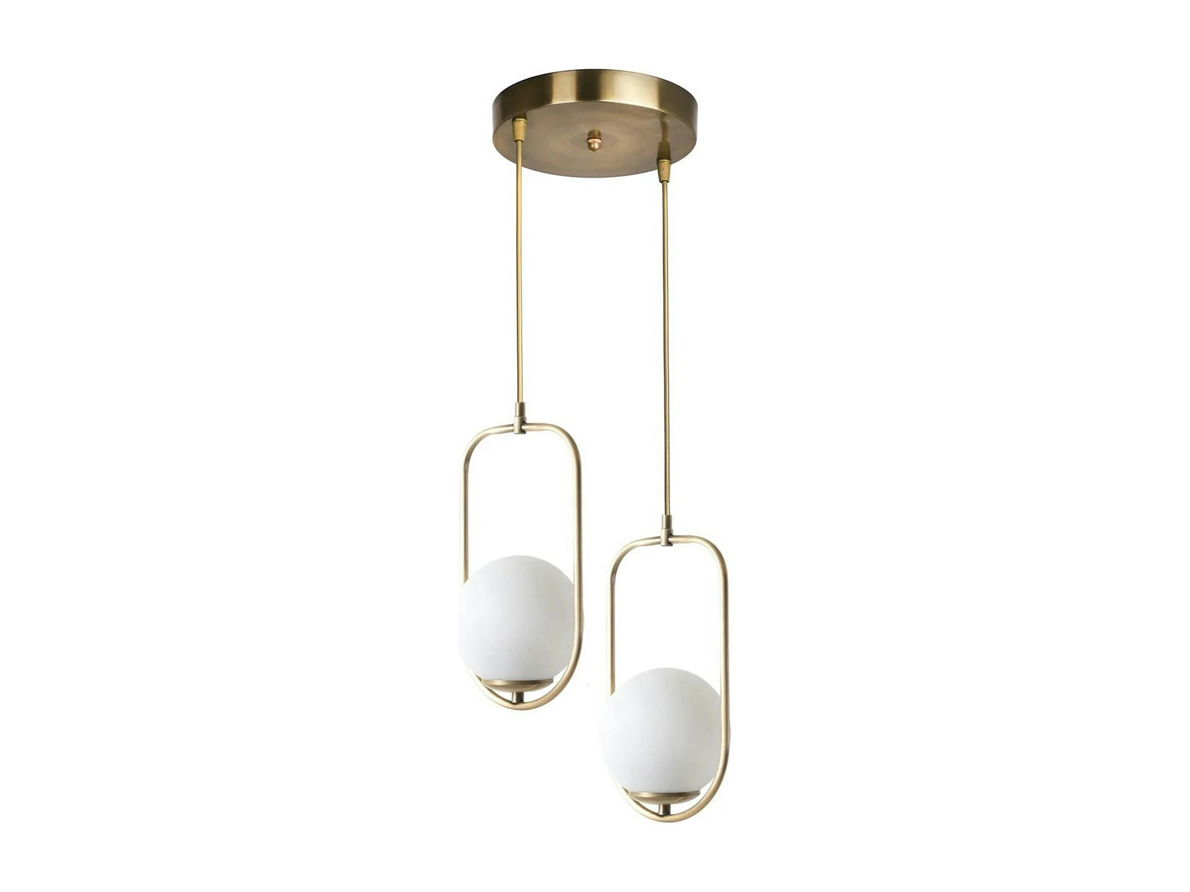 Suspension design dorée 2 globes blancs sur cadres SIERRE