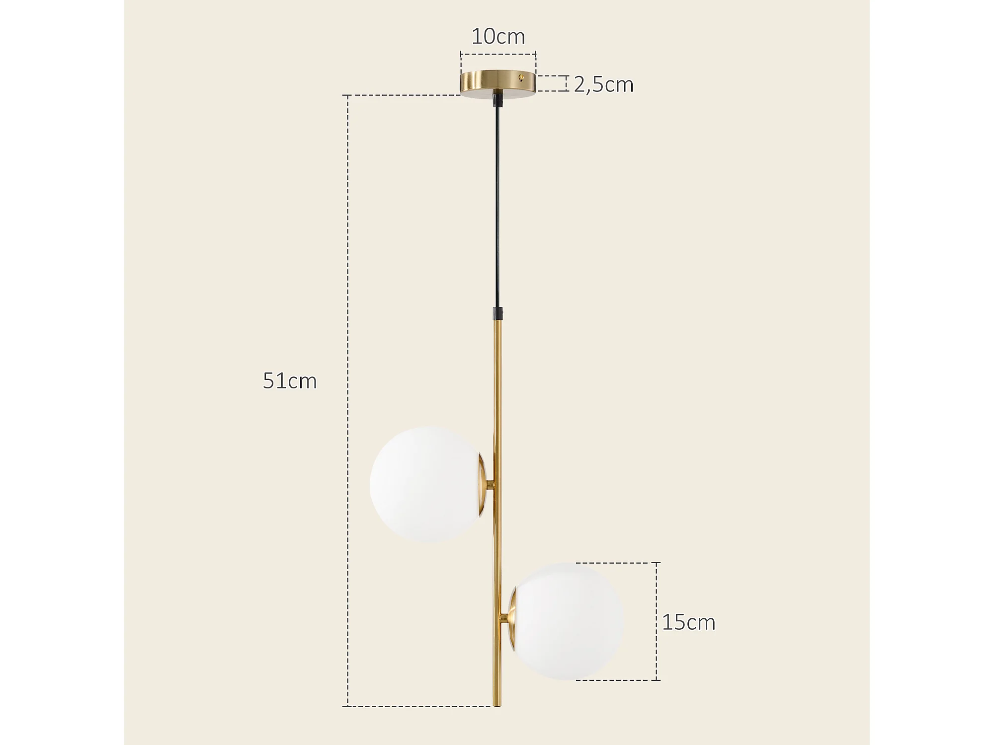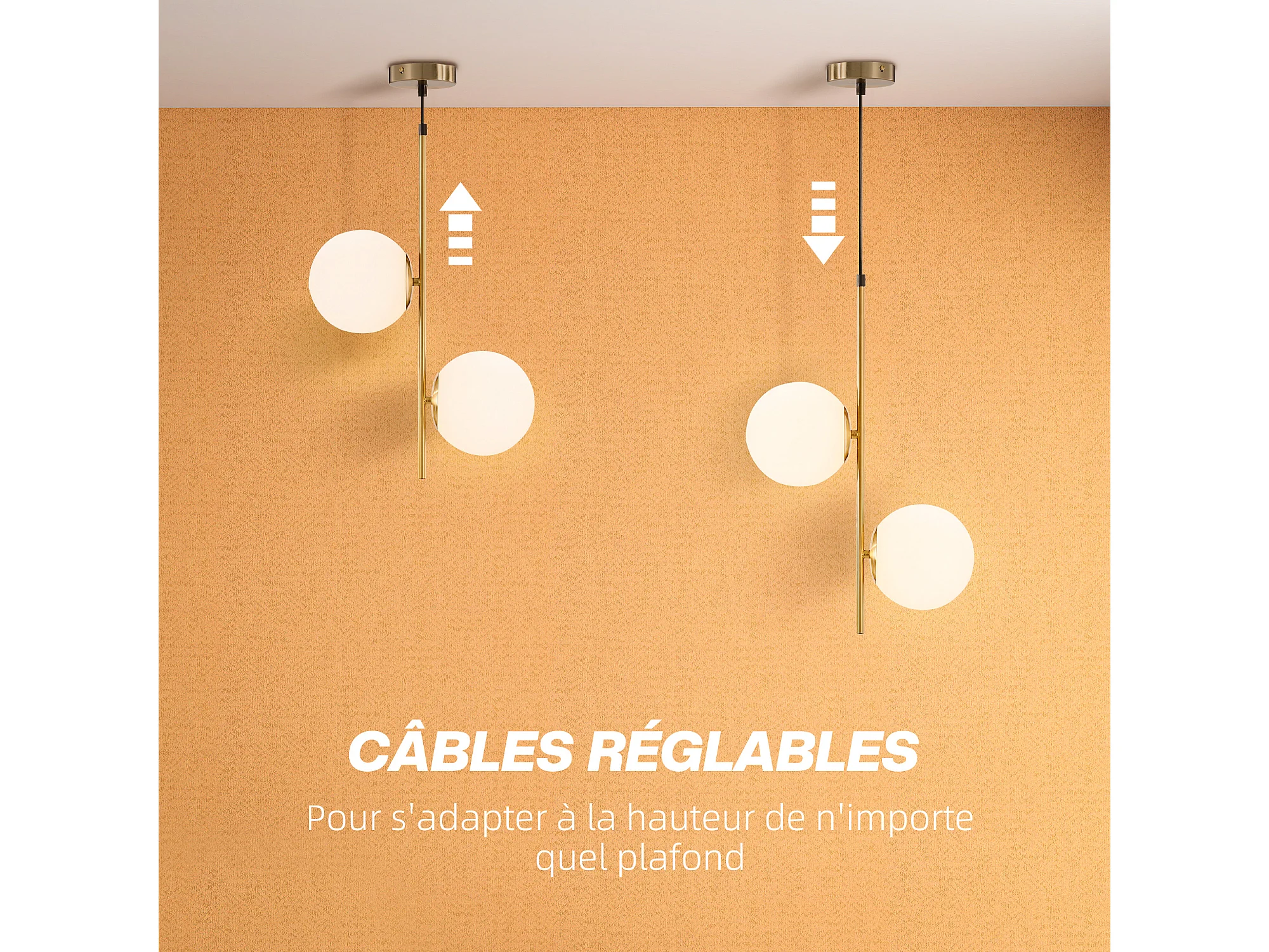 Suspension design néo-rétro 2 globes verre blanc opaque max. 40W métal doré