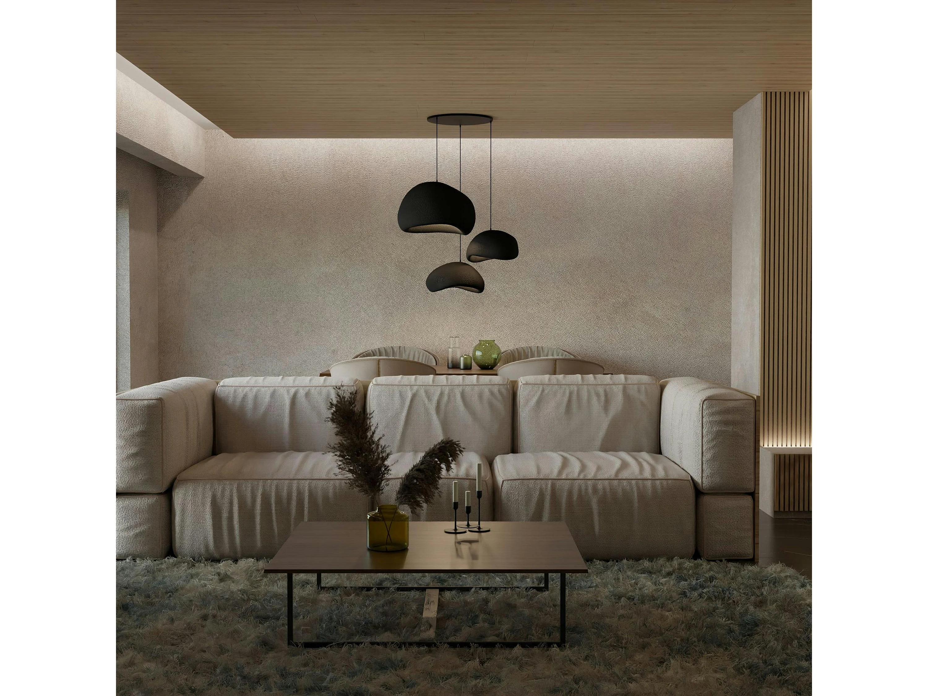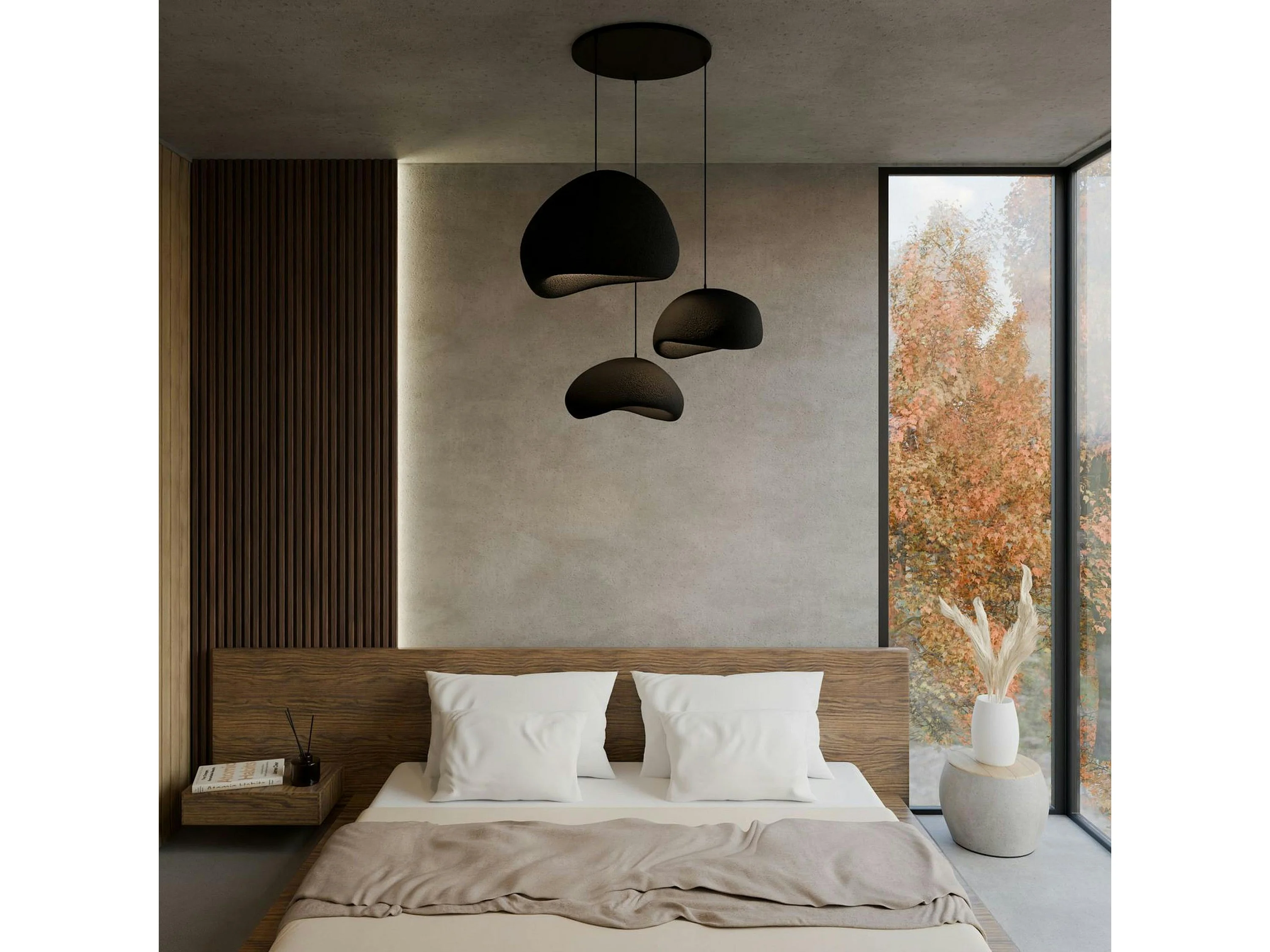 Suspension design noire 3 abat-jour style wabi-sabi 42 cm NOXIS