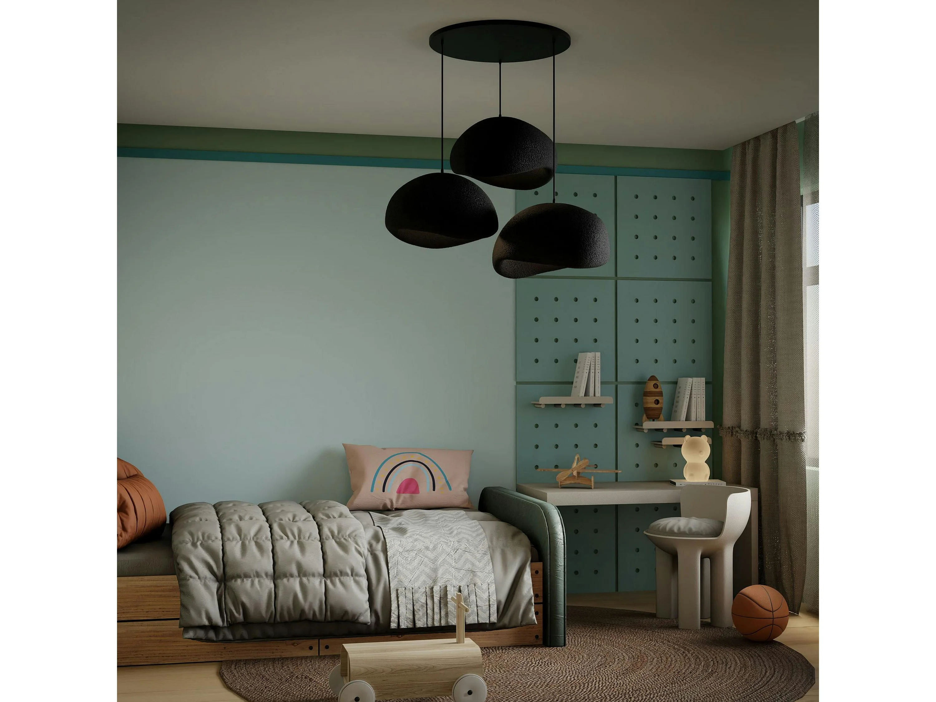 Suspension noire design organique 3 abat-jour H.28 cm NOXIS