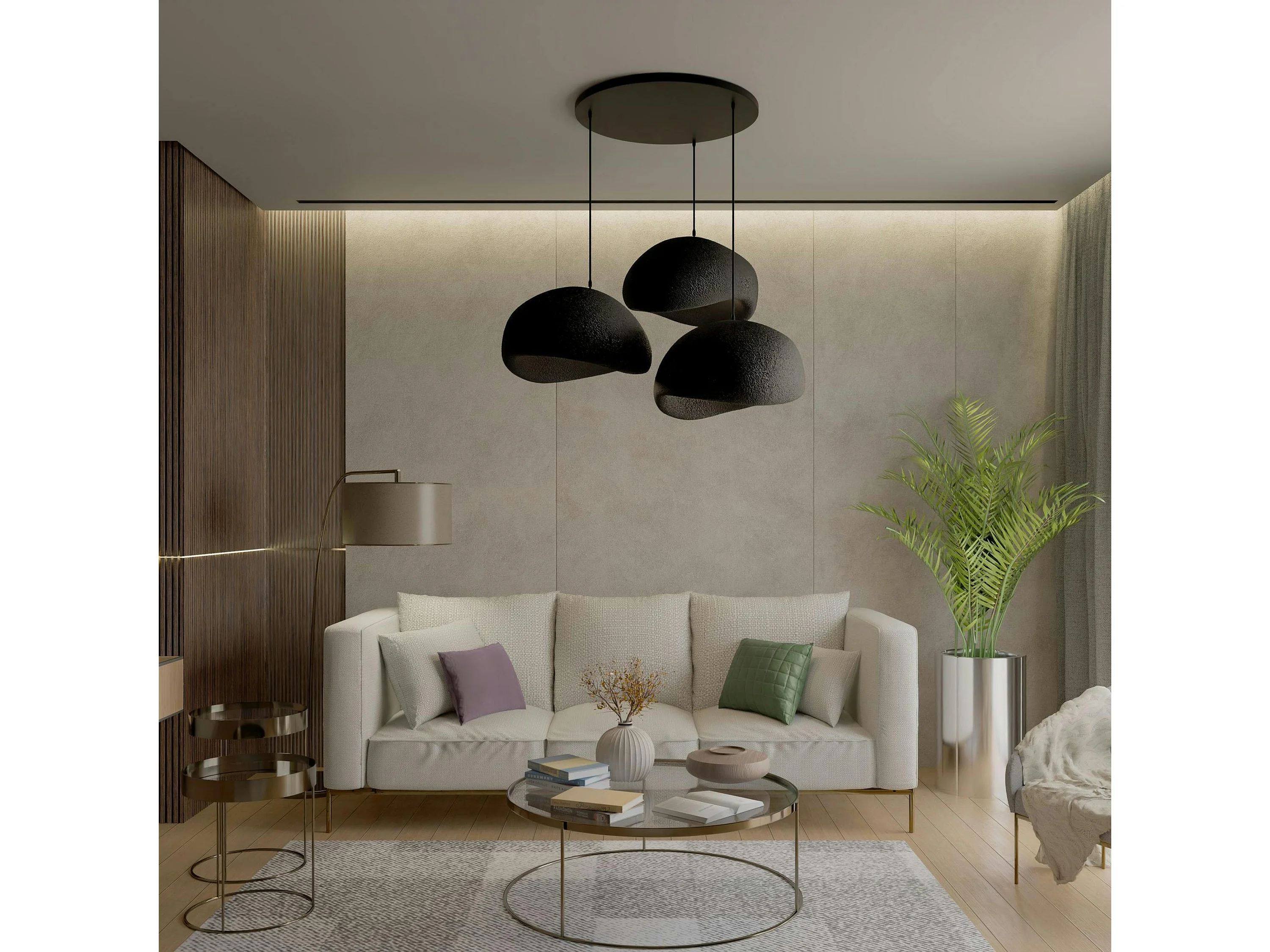 Suspension design noire 3 abat-jour style wabi-sabi NOXIS