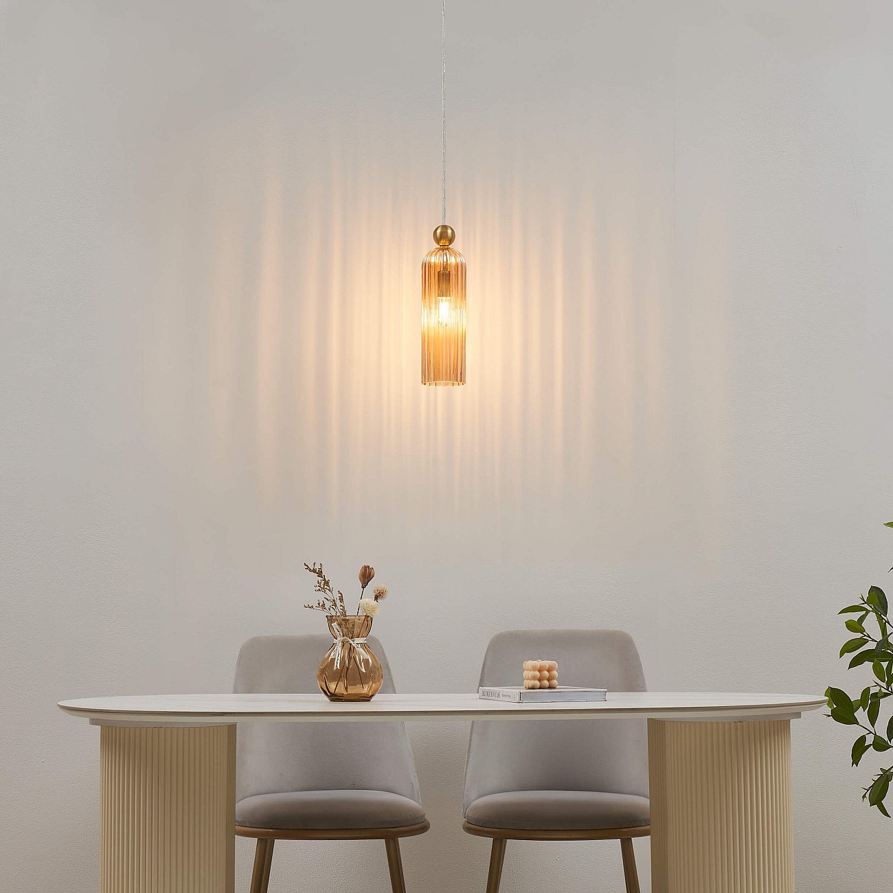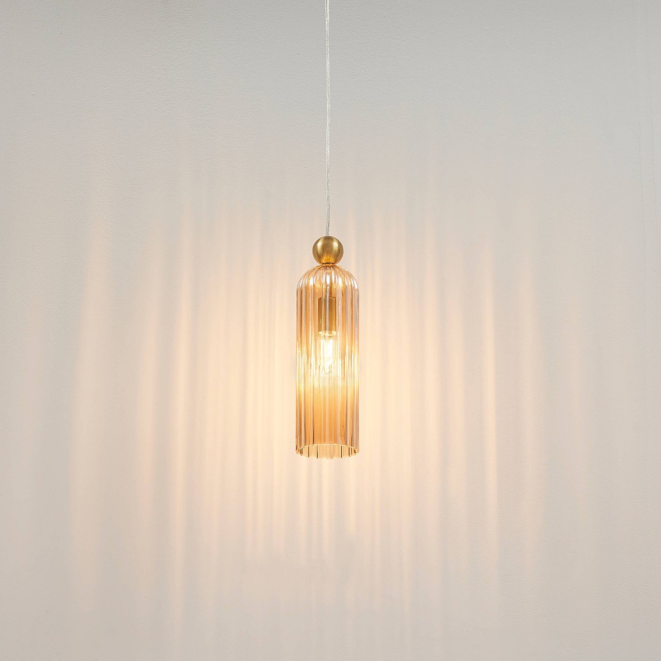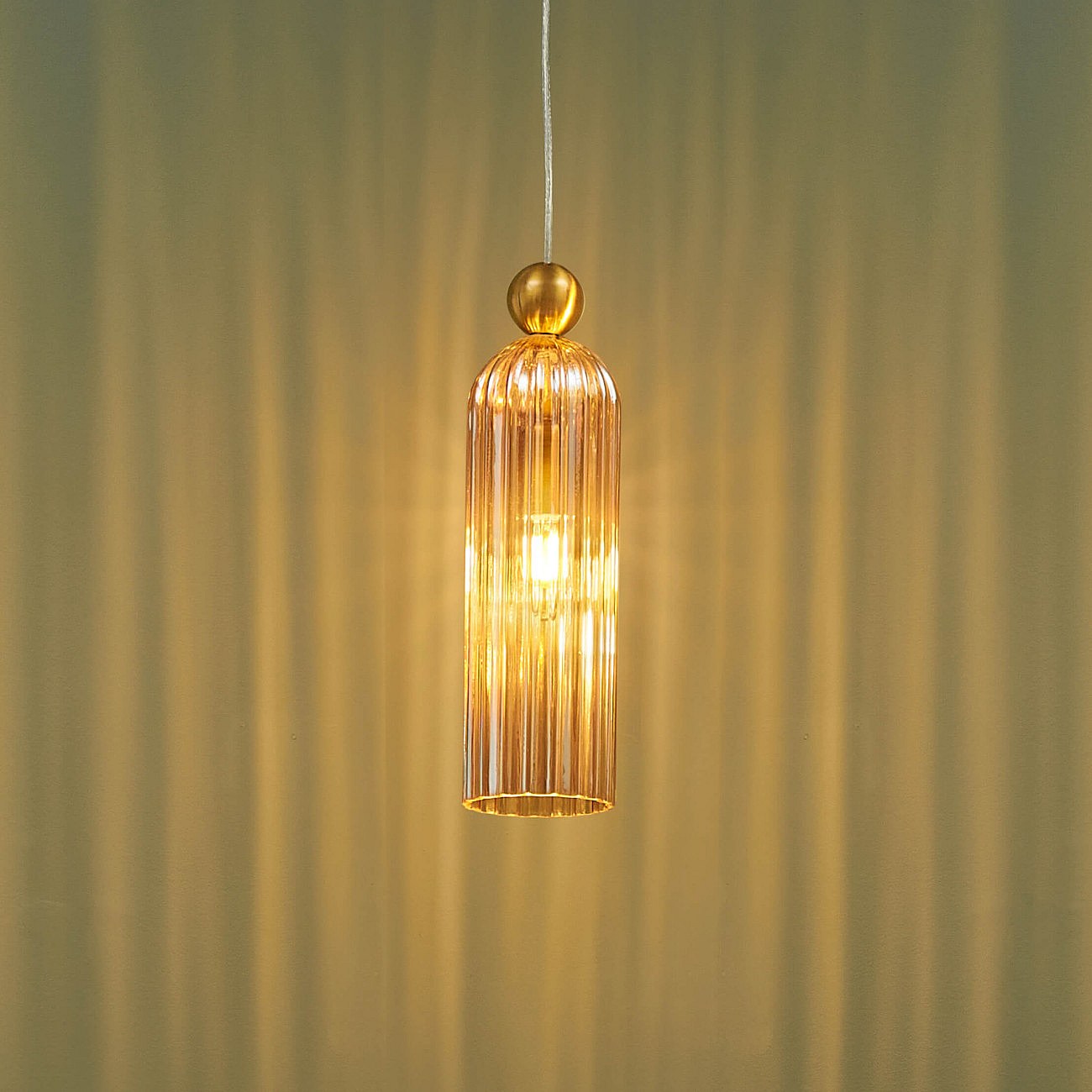 Suspension dorée verre ambré et cannelé - Leonora