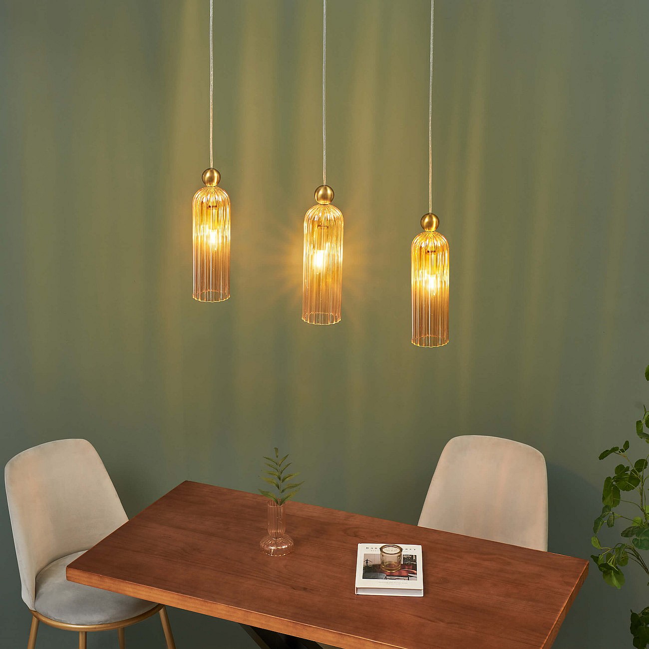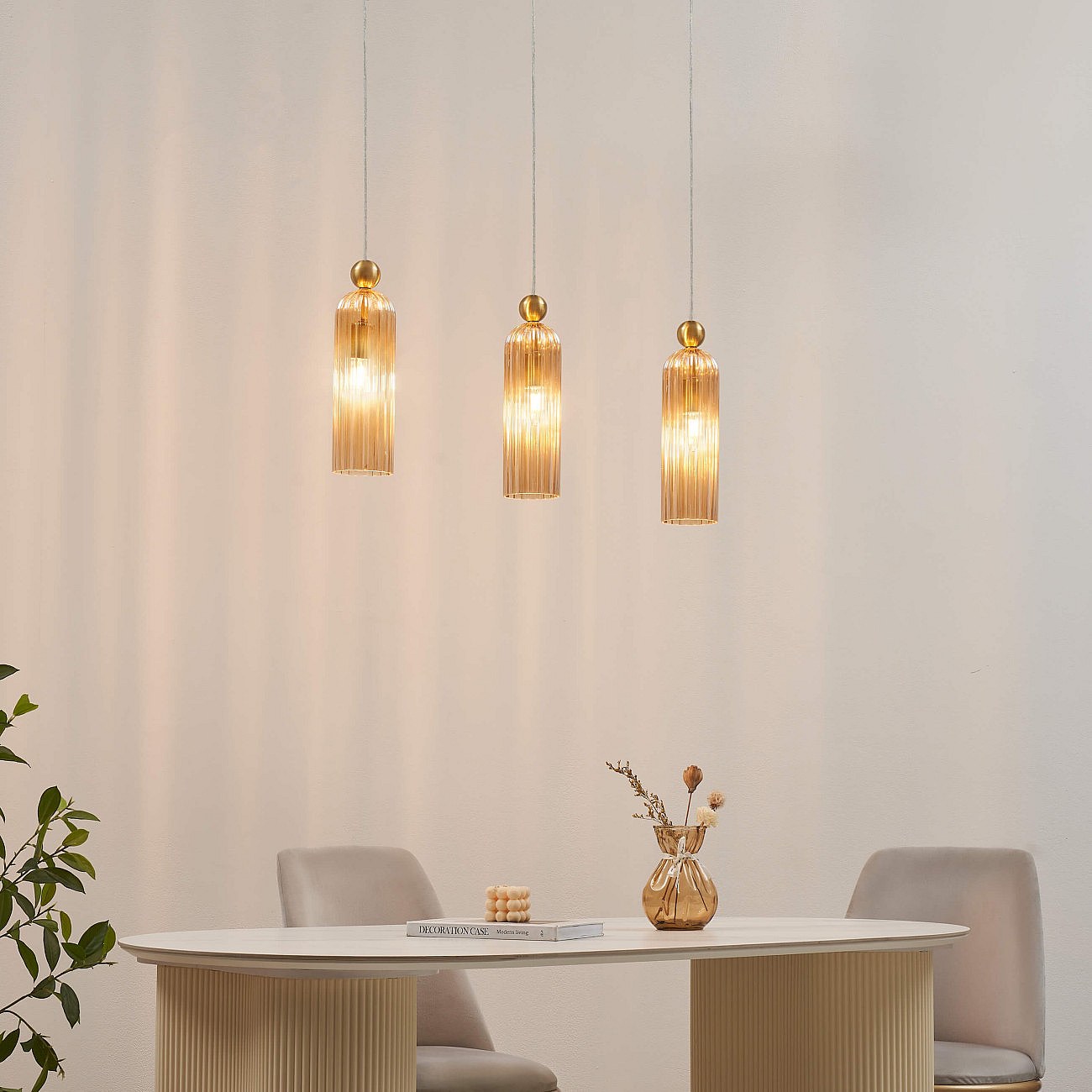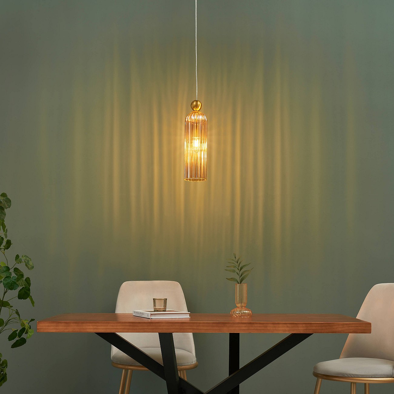 Suspension dorée verre ambré et cannelé - Leonora
