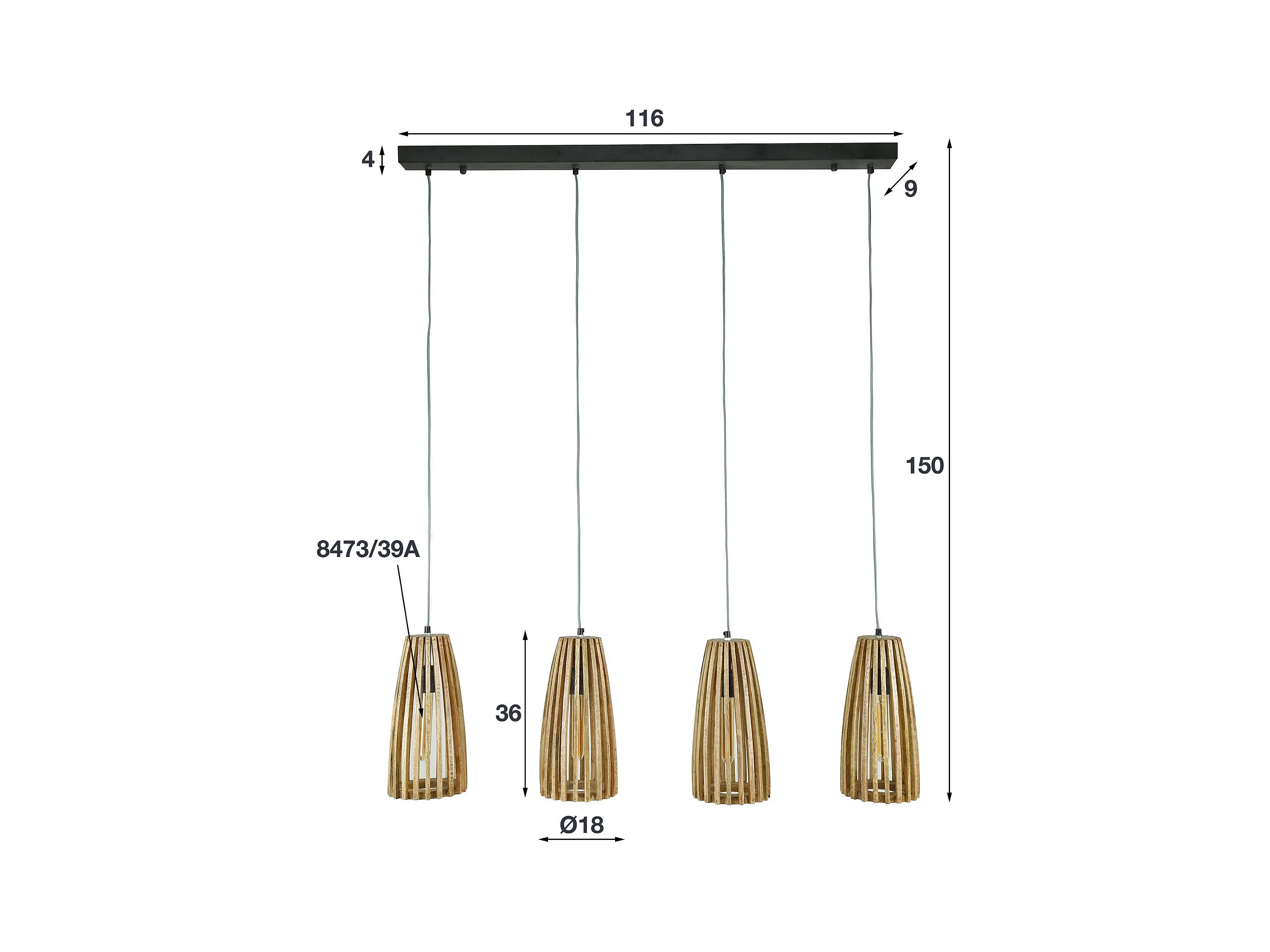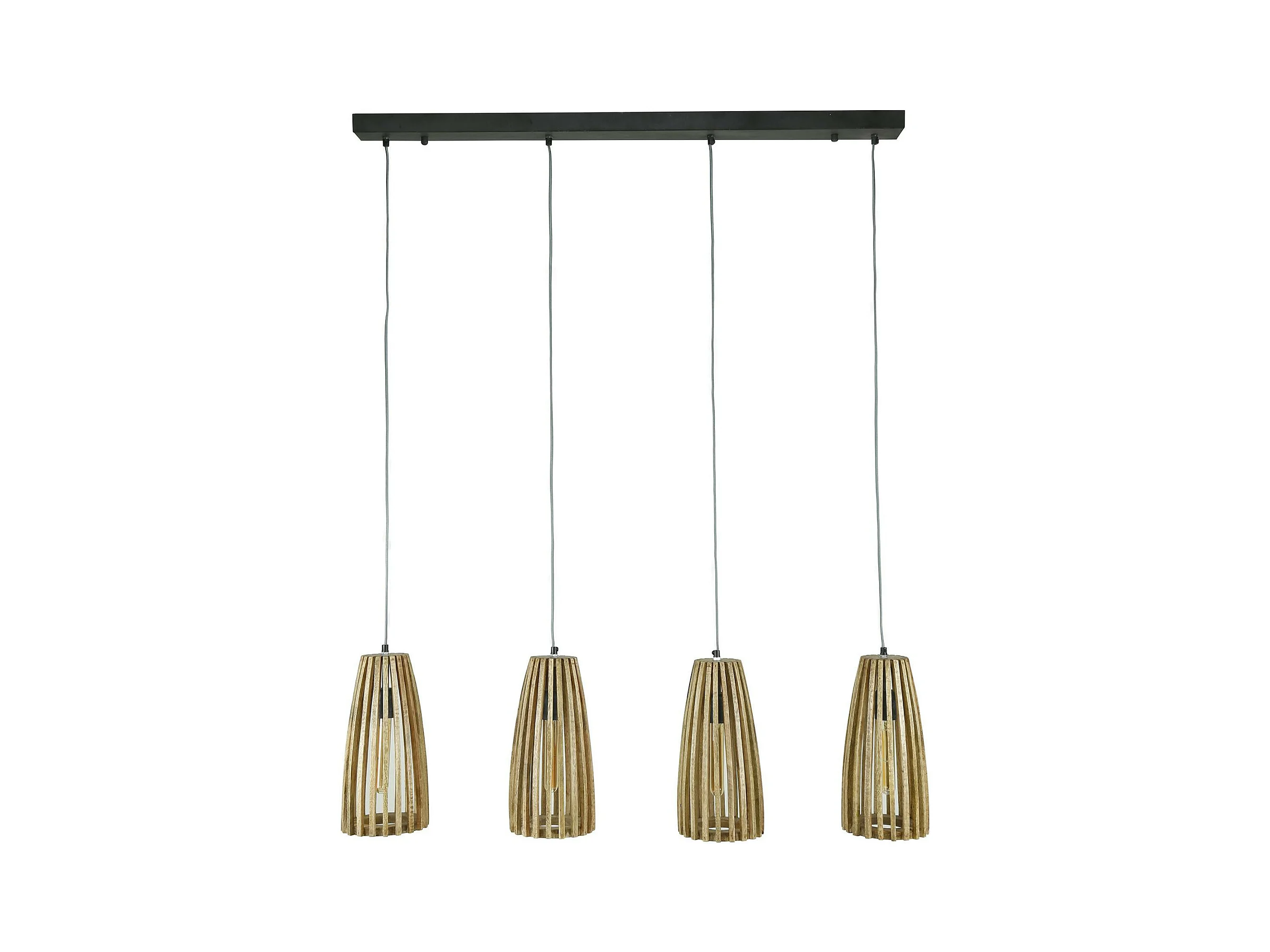 Suspension en bois ajourée 4 lampes LUCKNOW