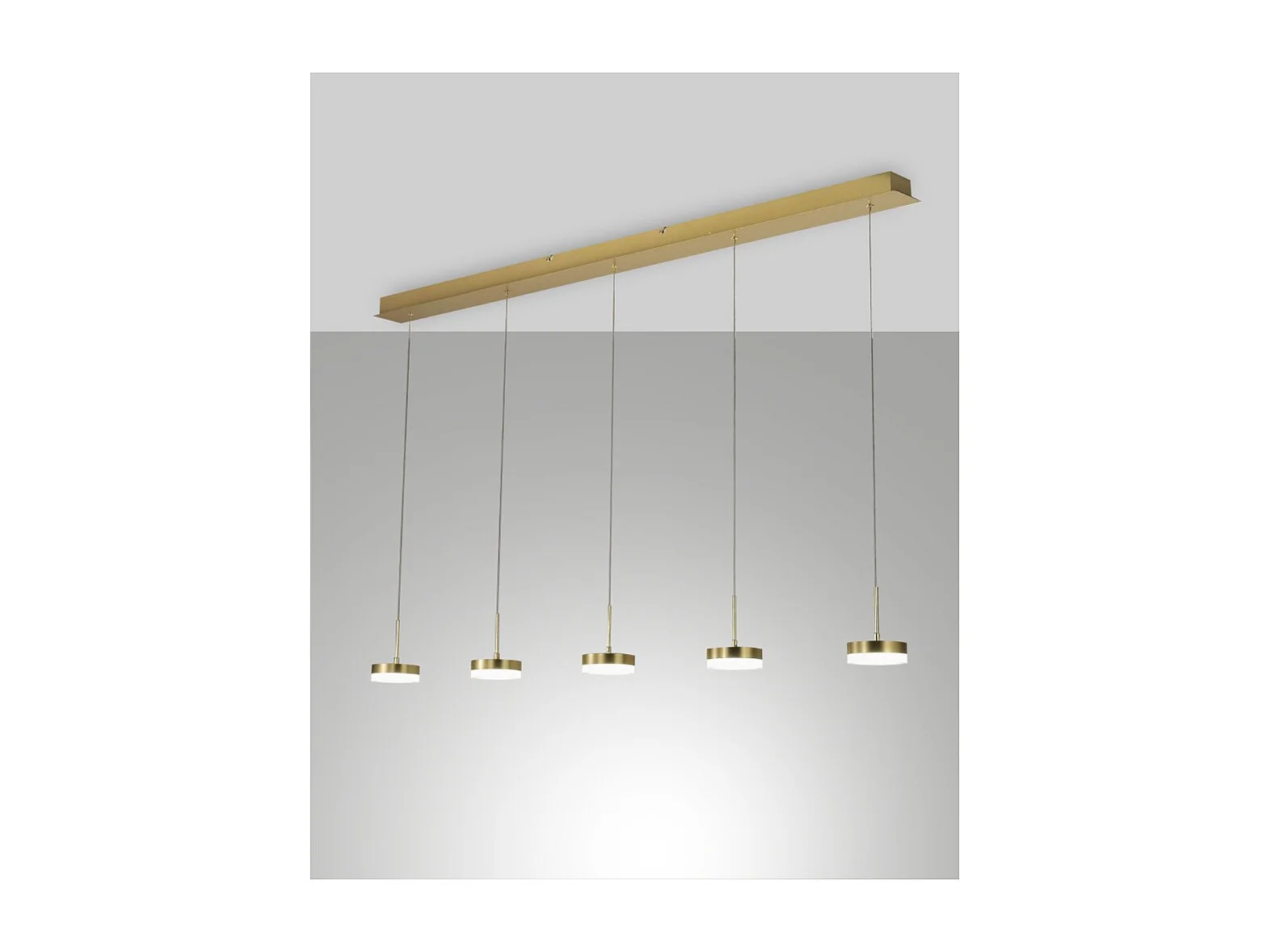 Suspension Fabas Luce Dunk 5 lumières - LED 40W dimmable - Laiton satiné Design linéaire