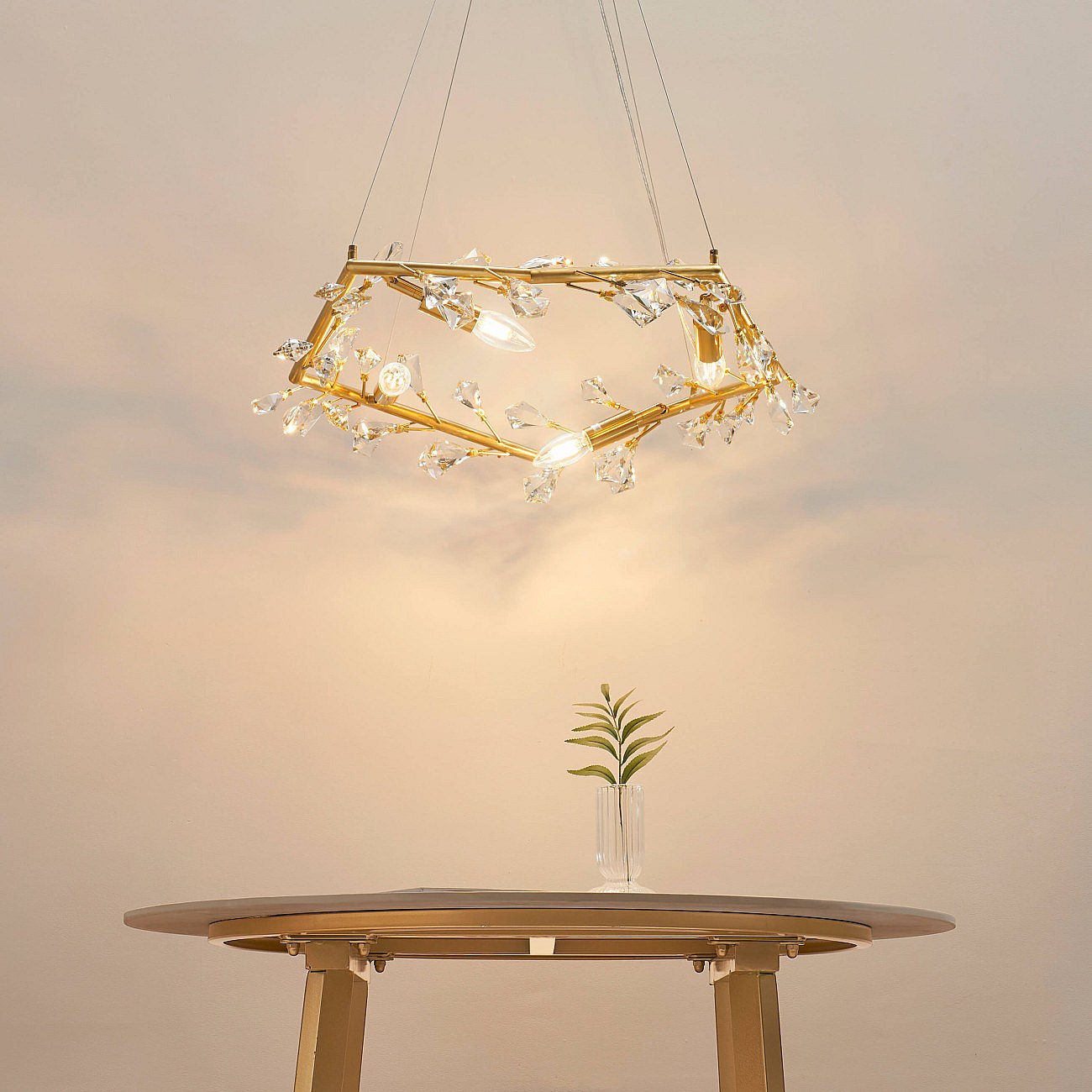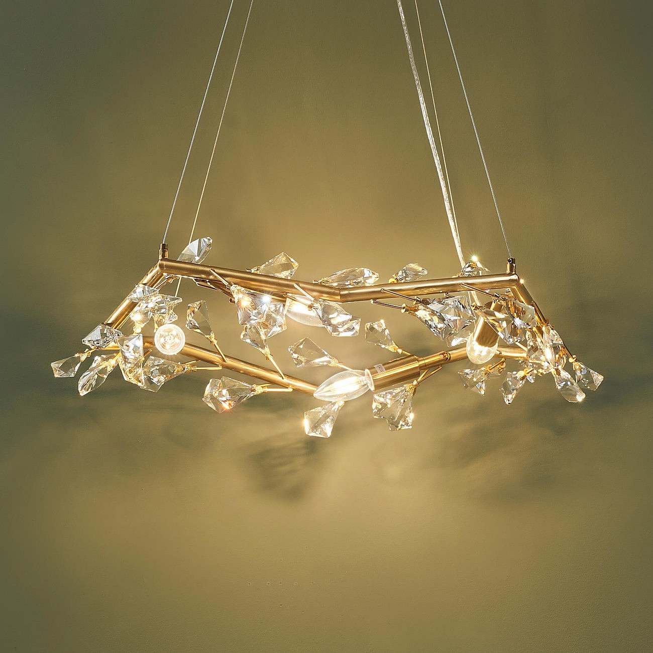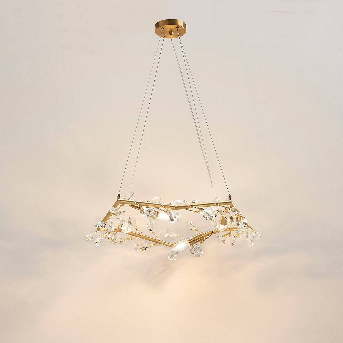 Suspension feuillage cristal et métal couleur laiton - Solarana
