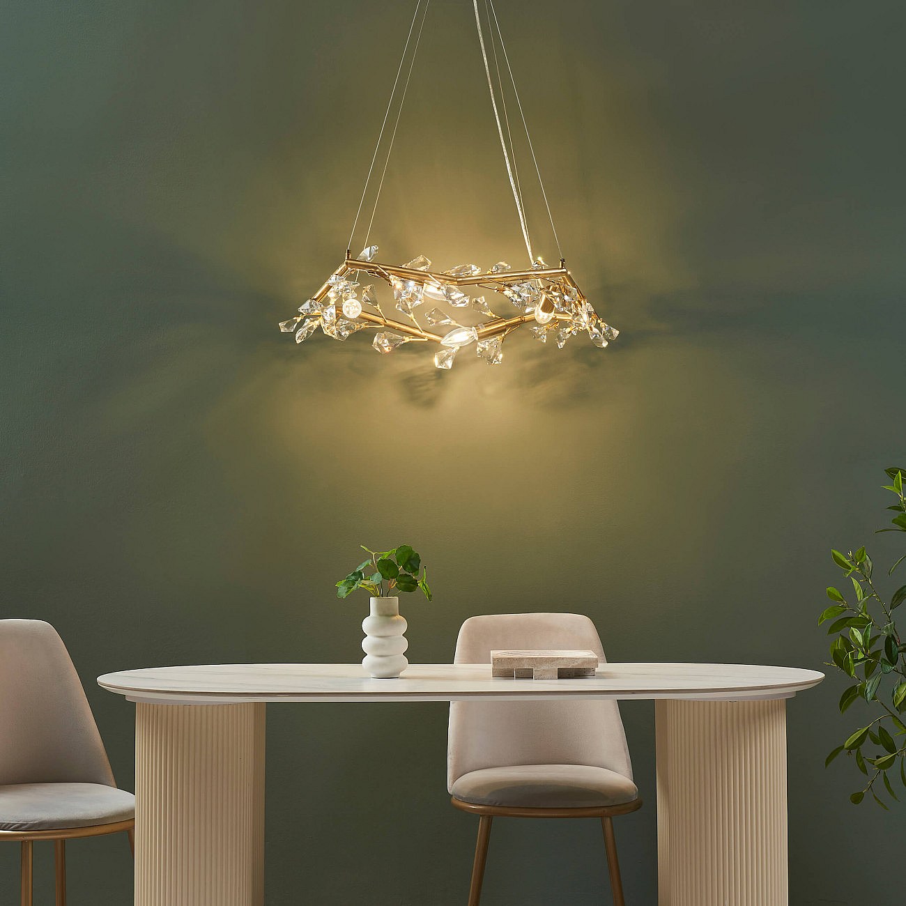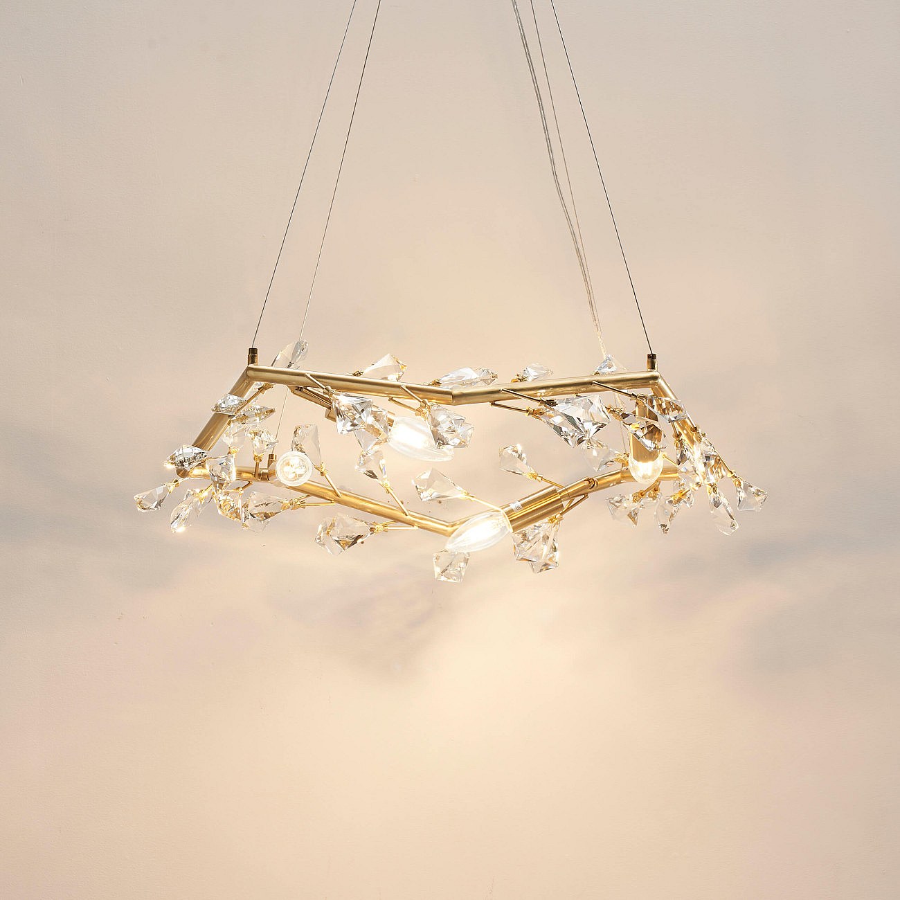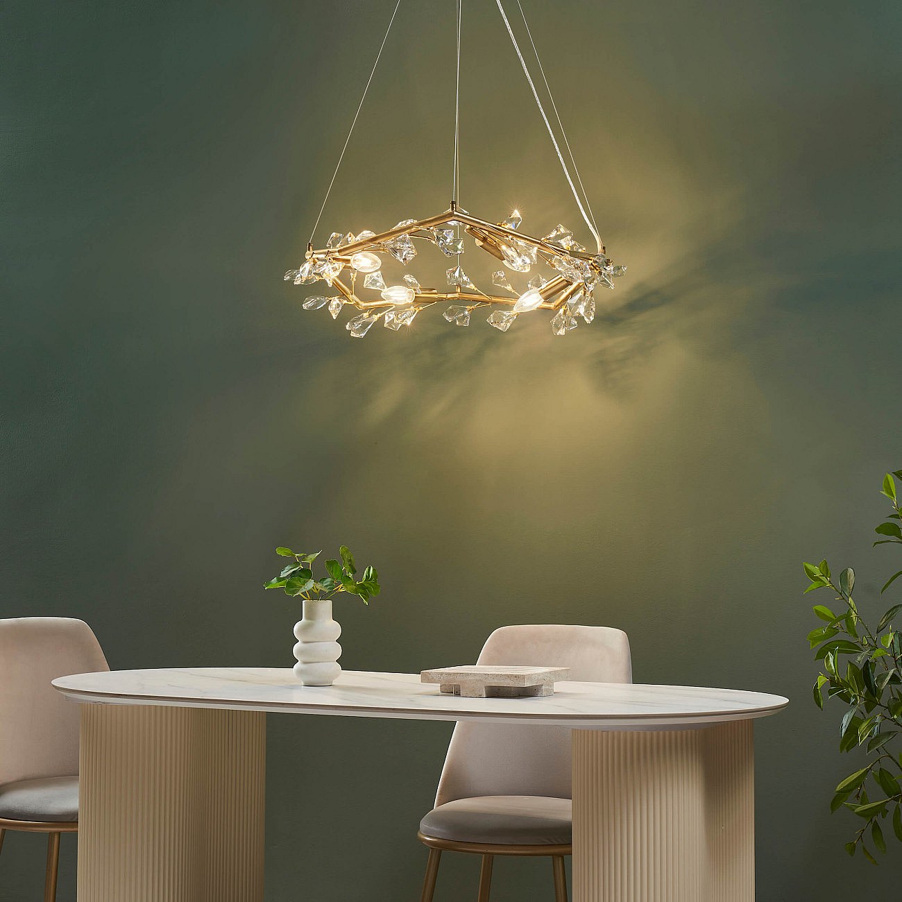 Suspension feuillage cristal et métal couleur laiton - Solarana