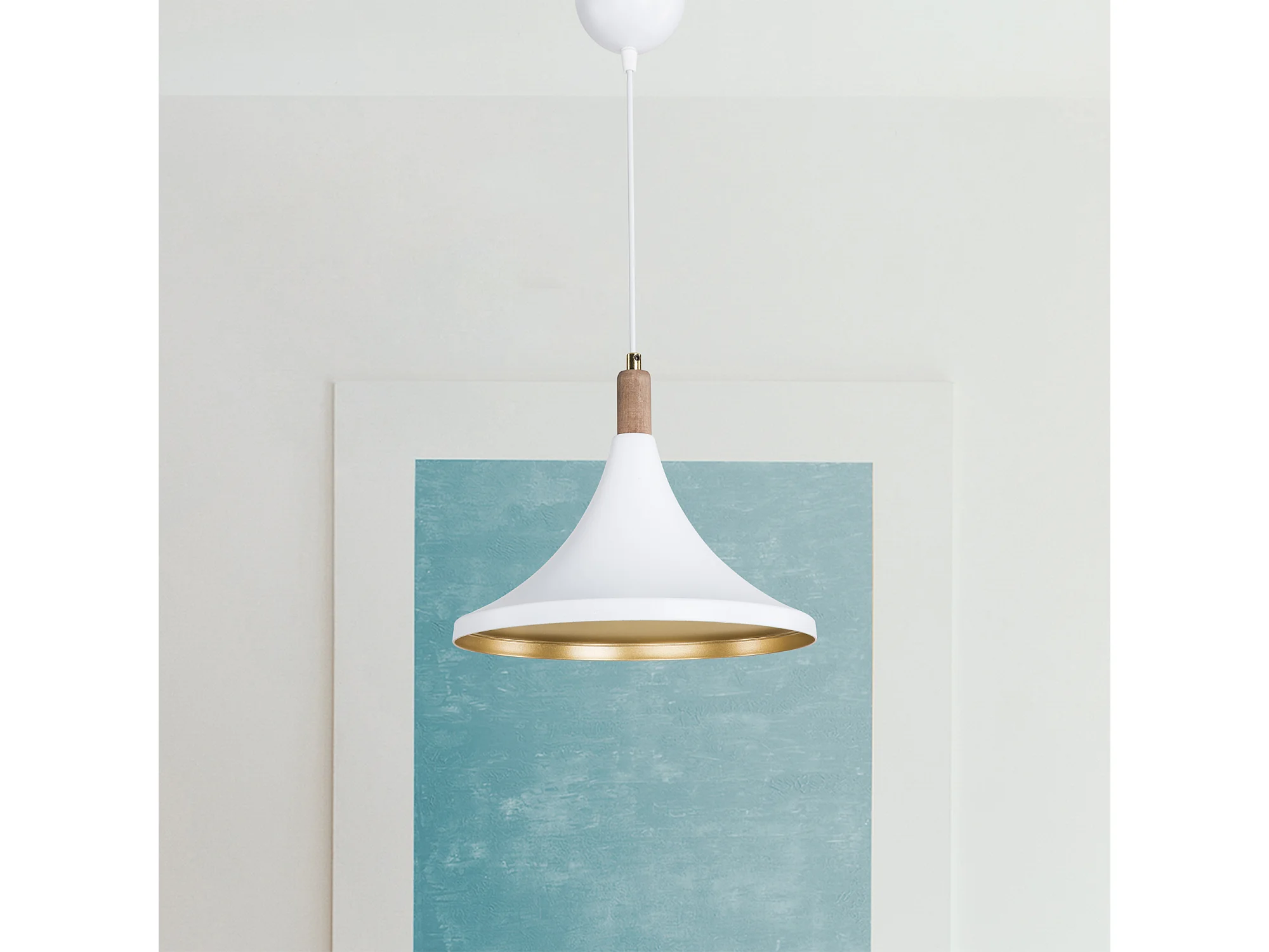 Suspension design en métal et bois coloris blanc - Dim : D.15 x H.17 cm