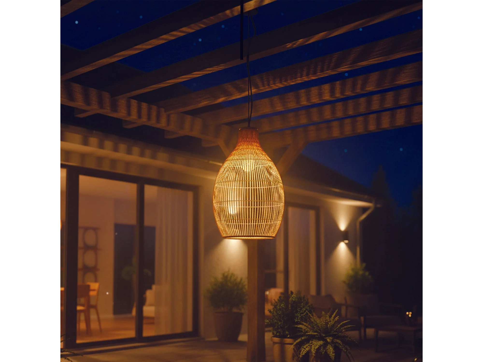 Suspension HOLIDAY Extérieure Polyrotin Beige H42cm