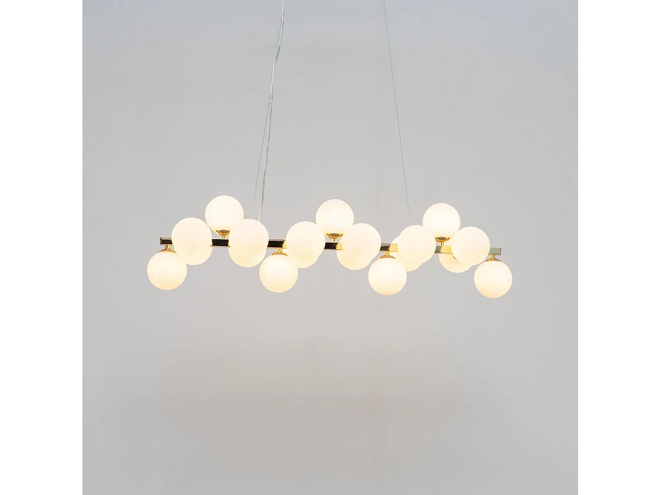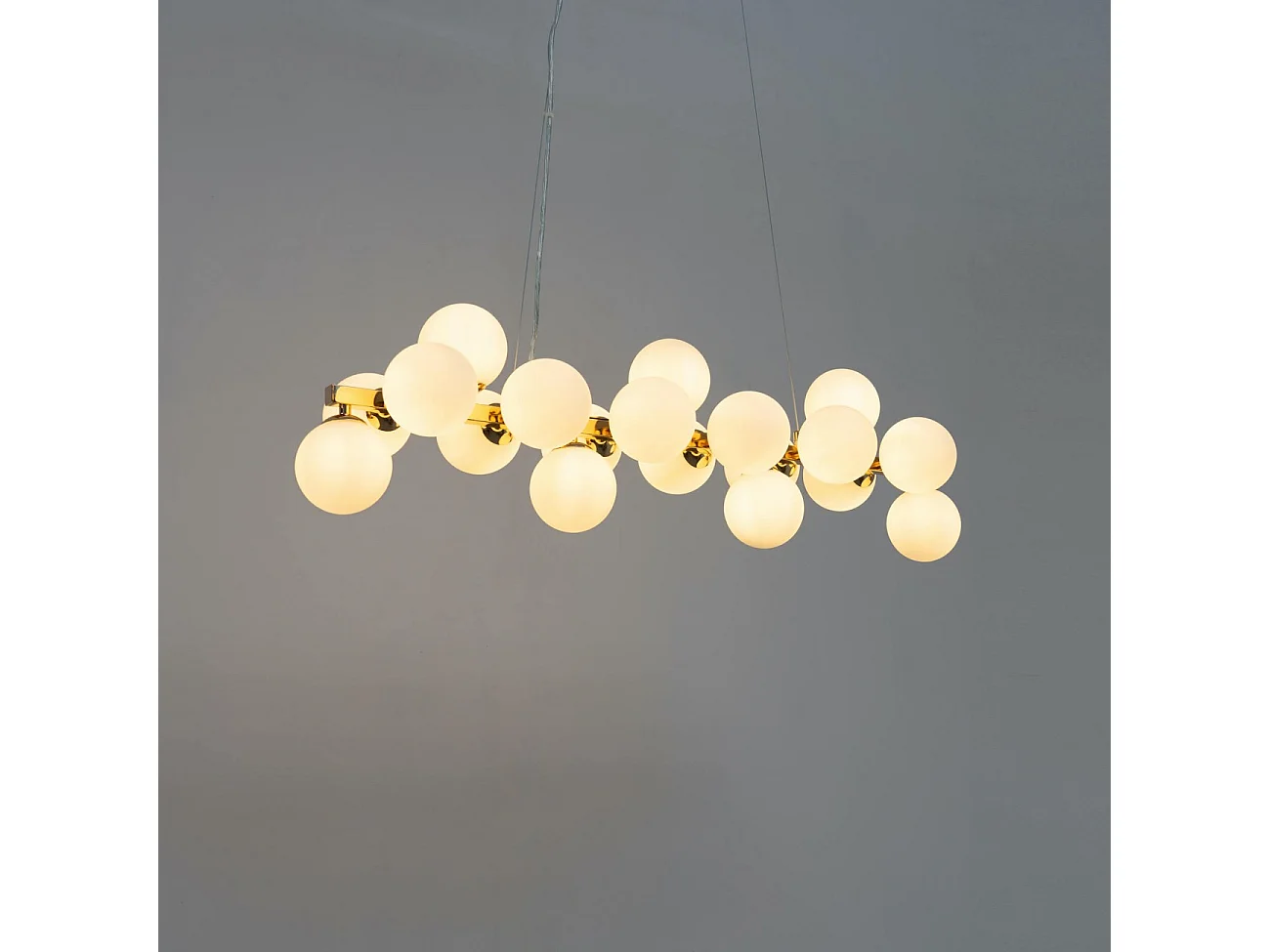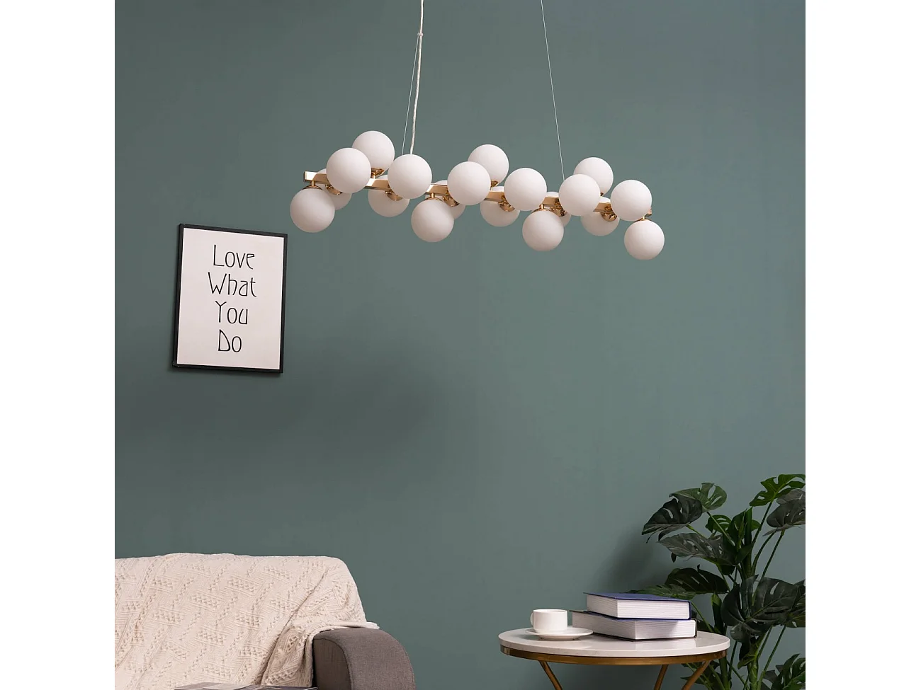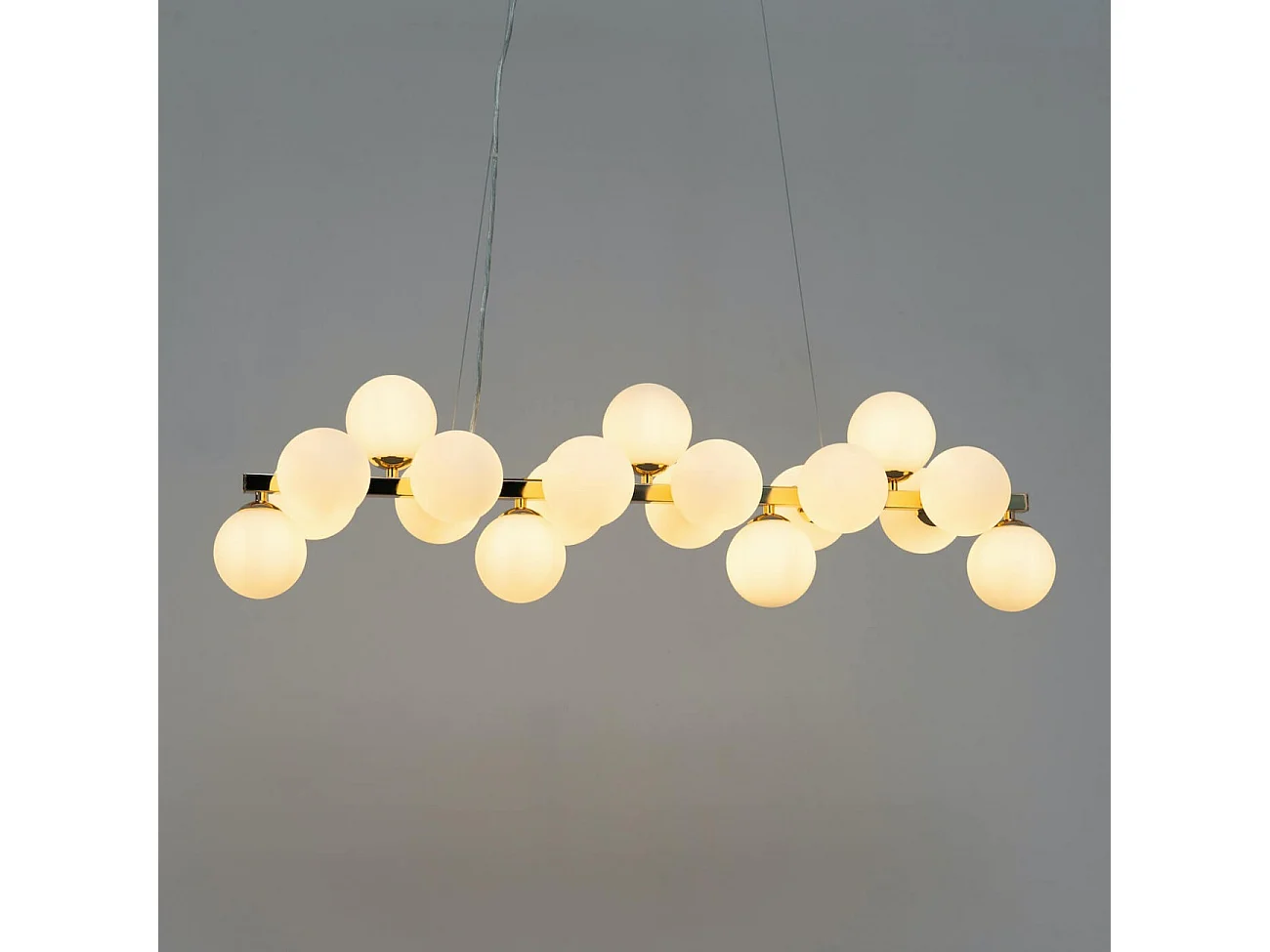 Suspension horizontale dorée à sphères en verre blanc - Ambrosia