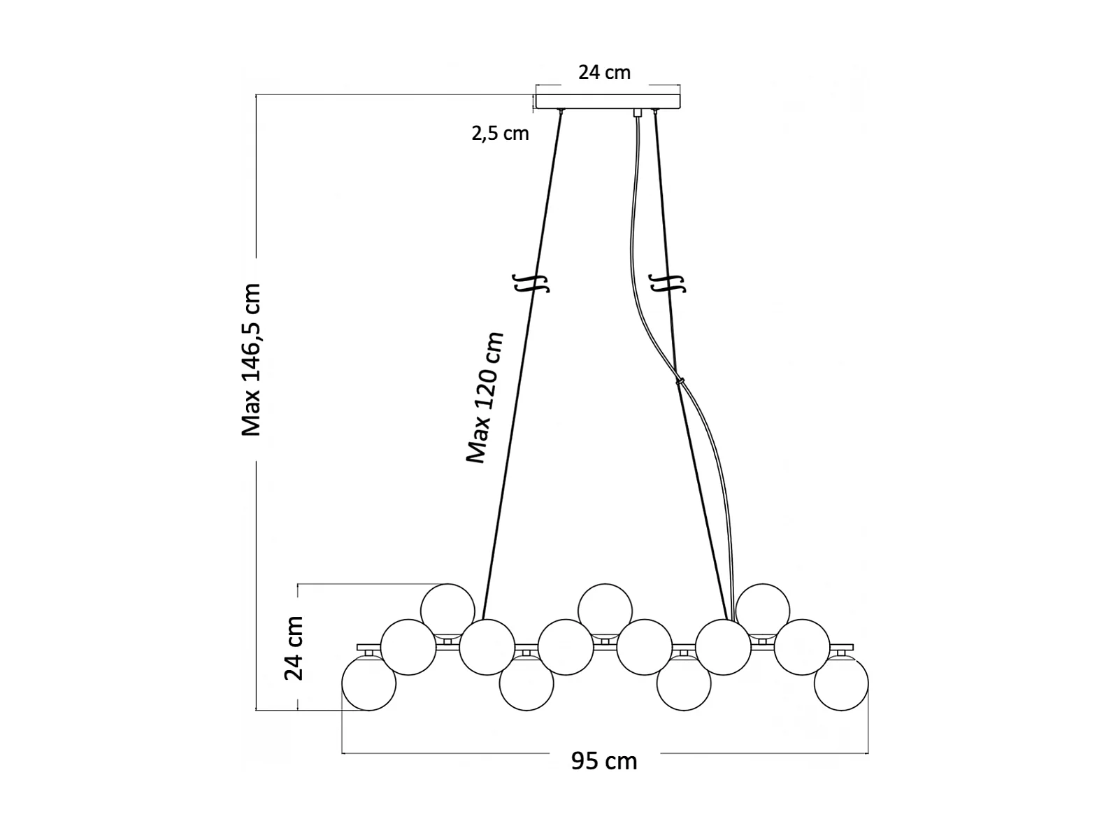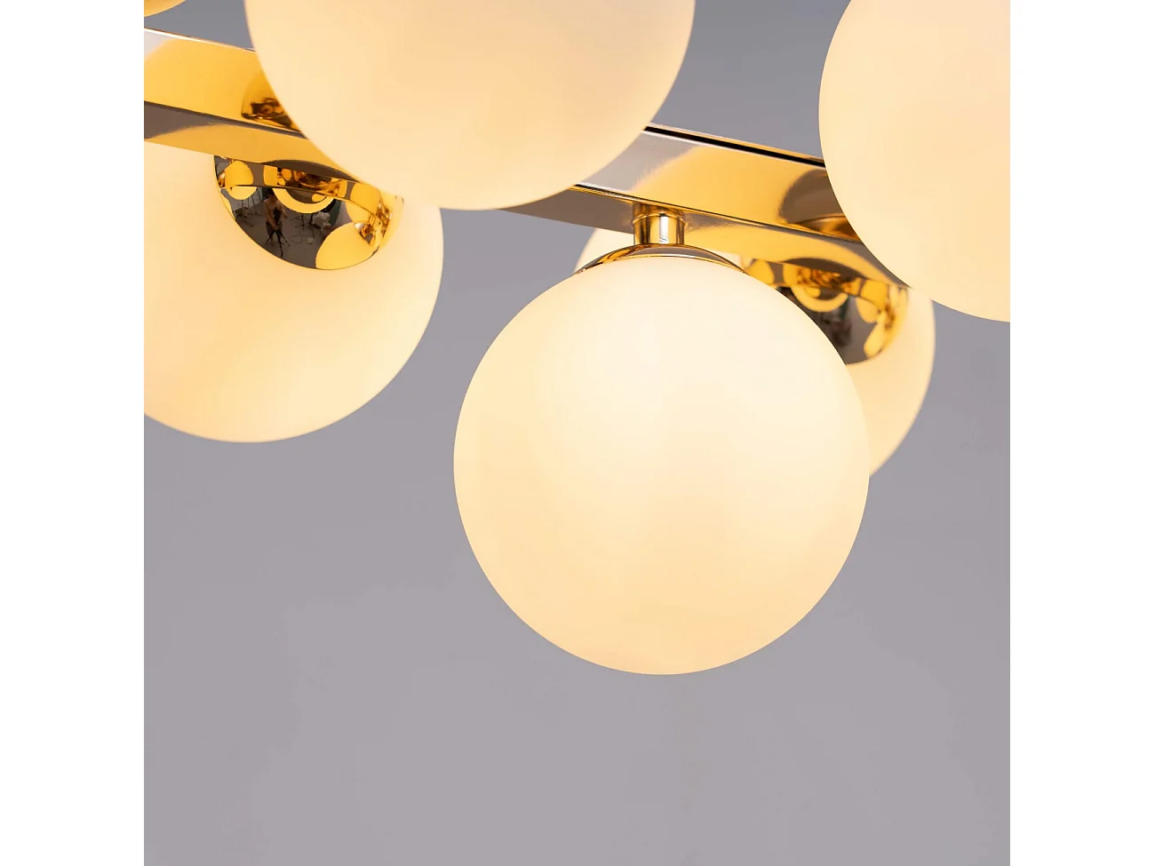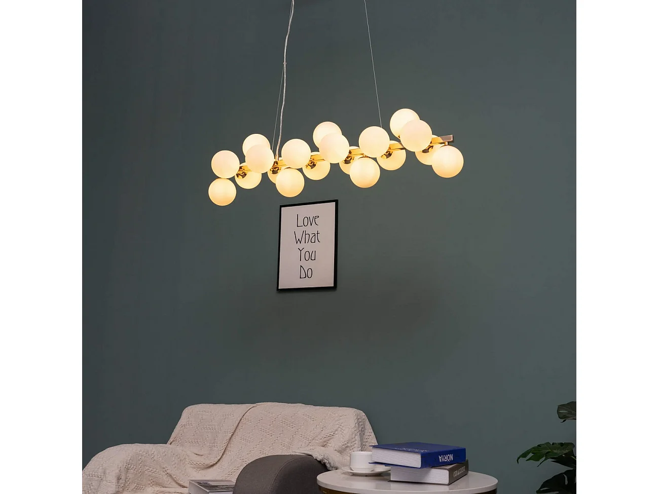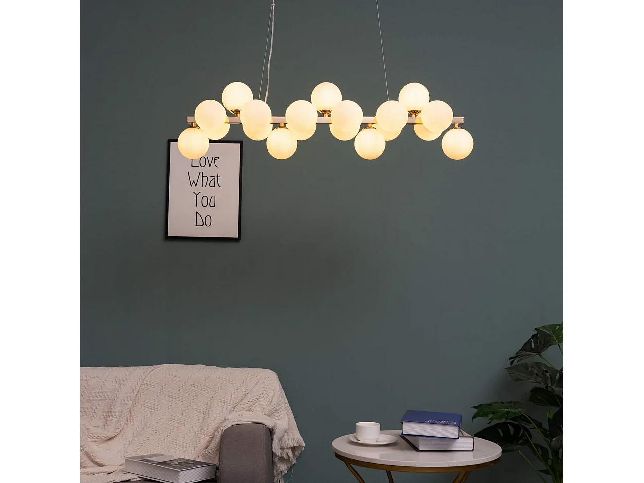 Suspension horizontale dorée à sphères en verre blanc - Ambrosia