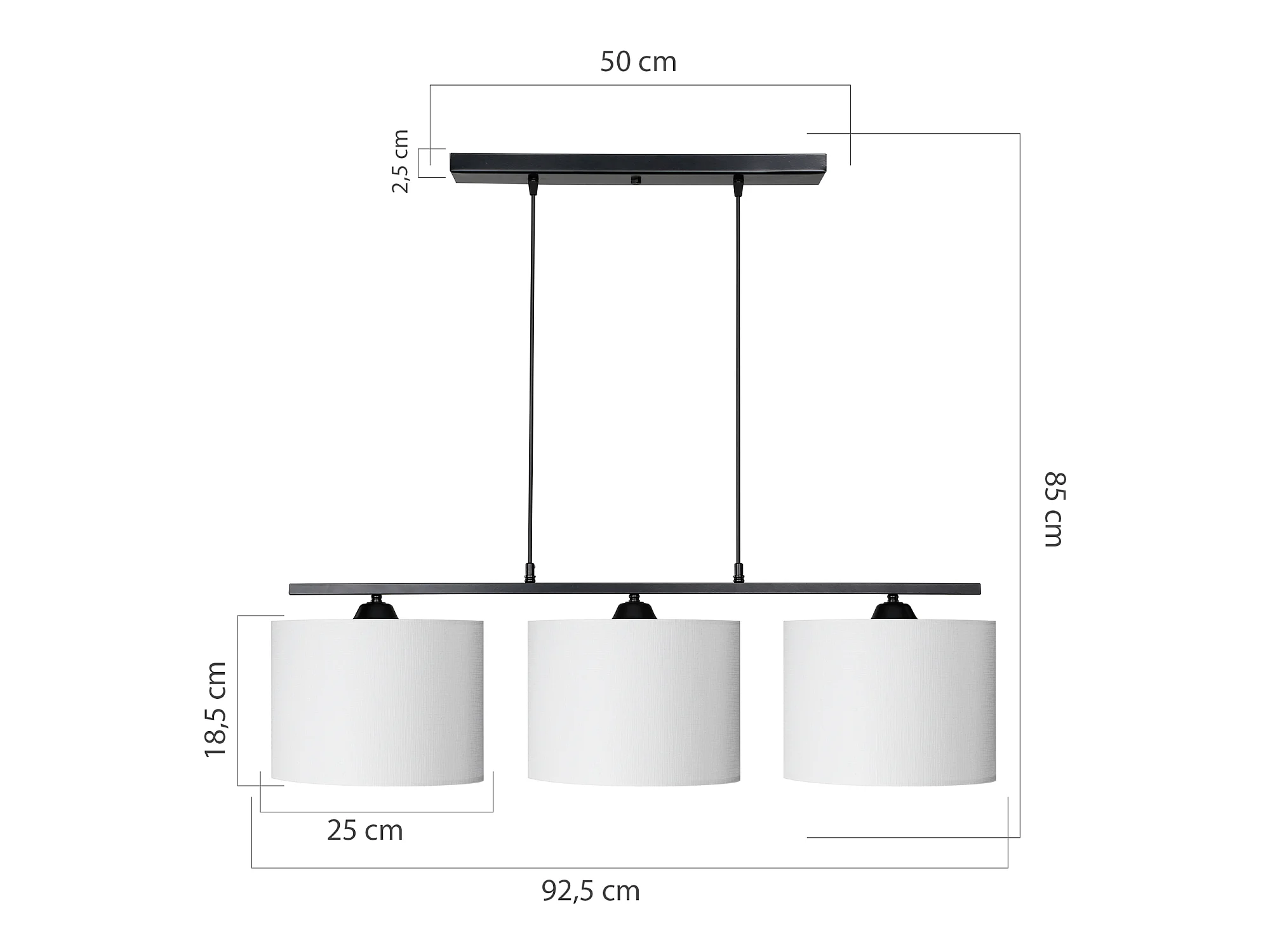 Suspension Horsham 85 x 92,5 cm 3 x E27 noir / blanc [lux.pro]