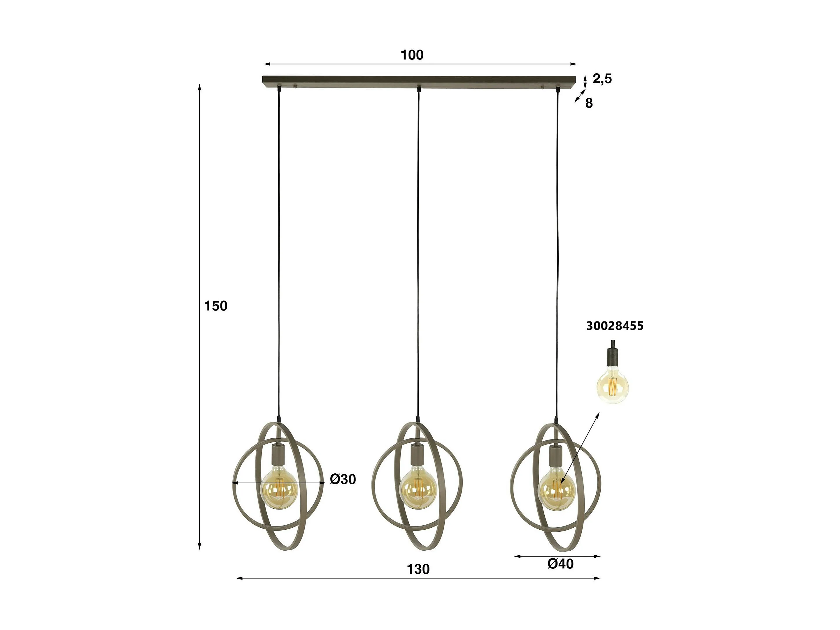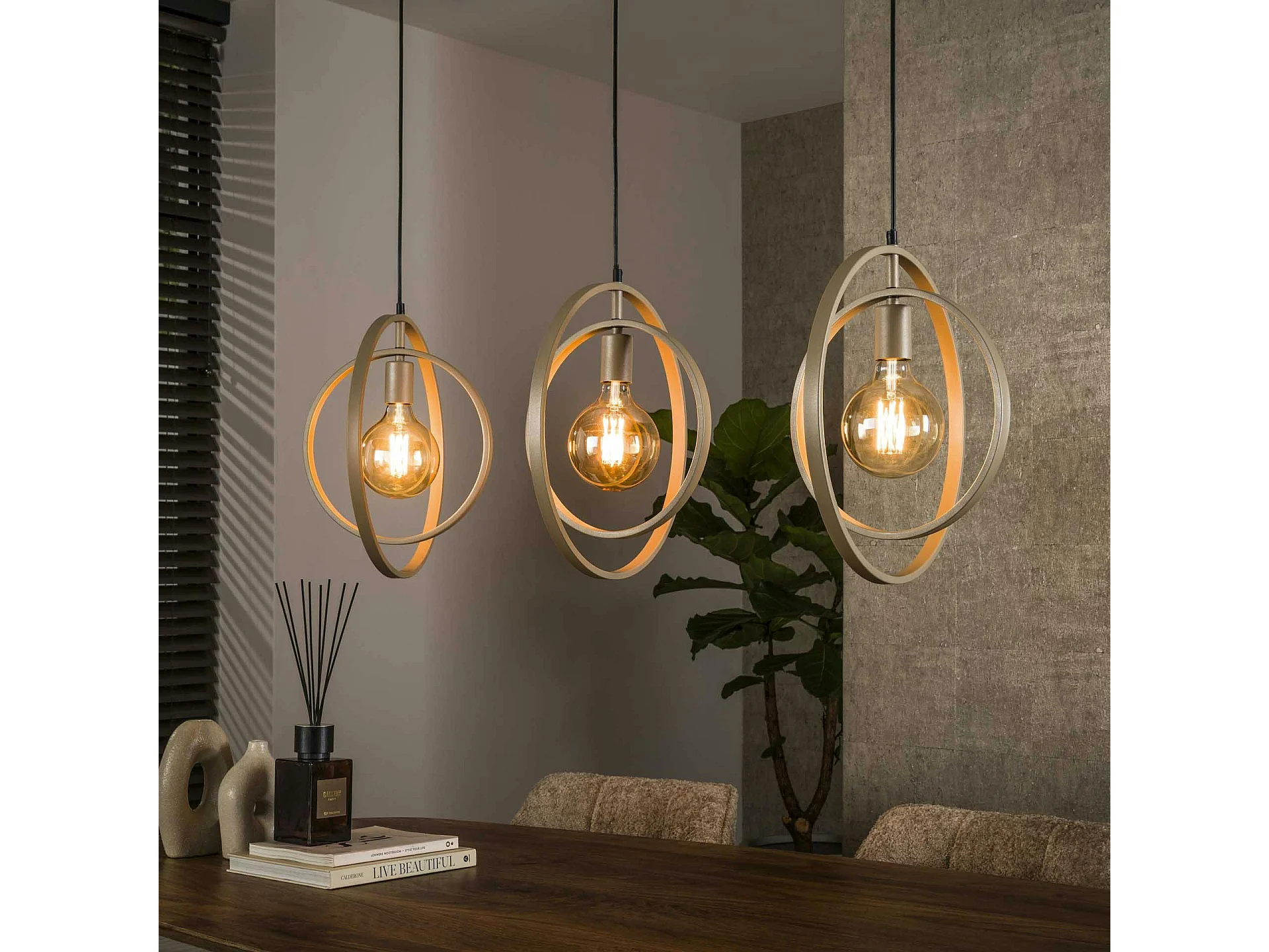 Suspension îlot beige mat, 3 anneaux pivotants métal TRIBECA