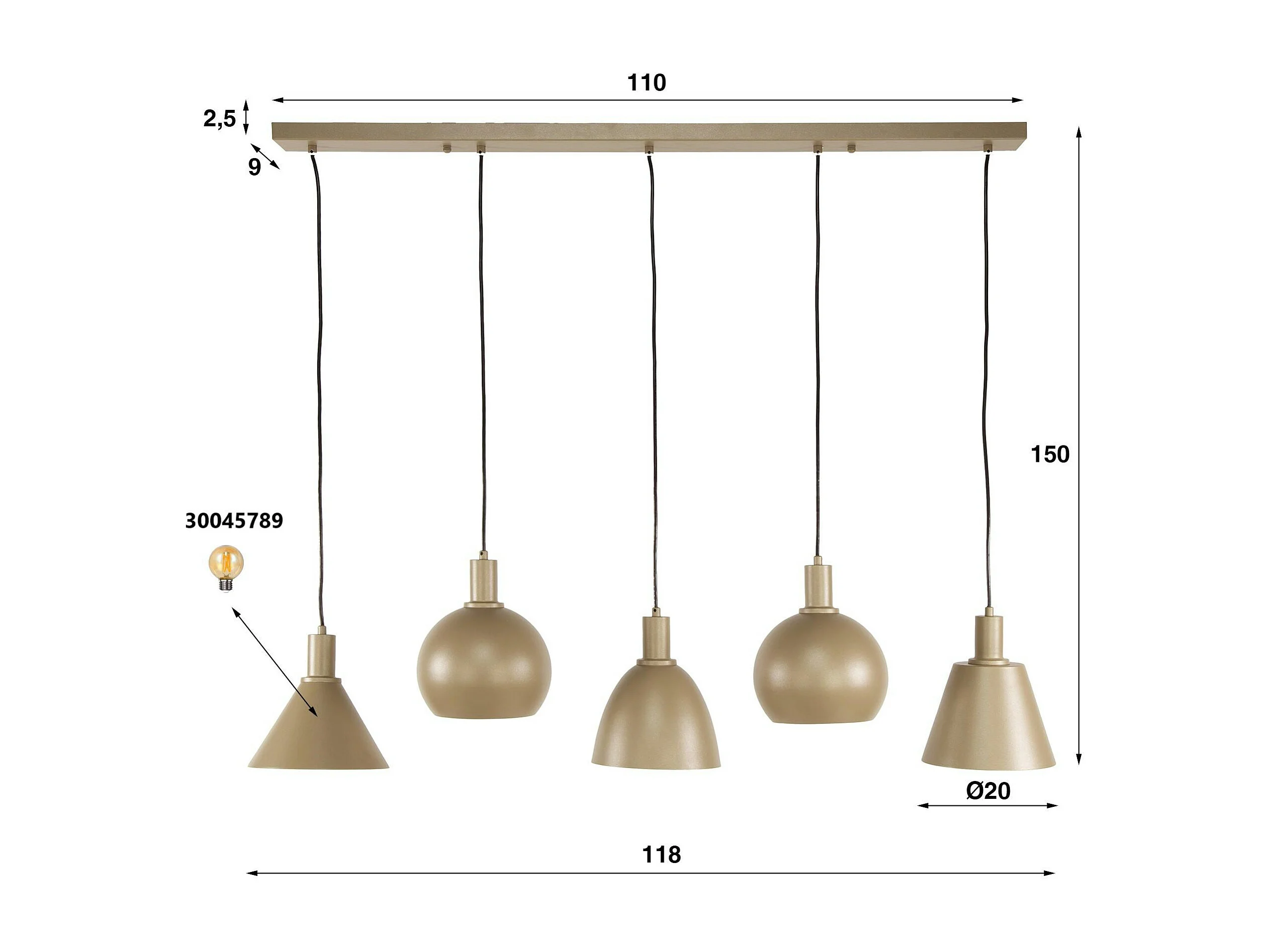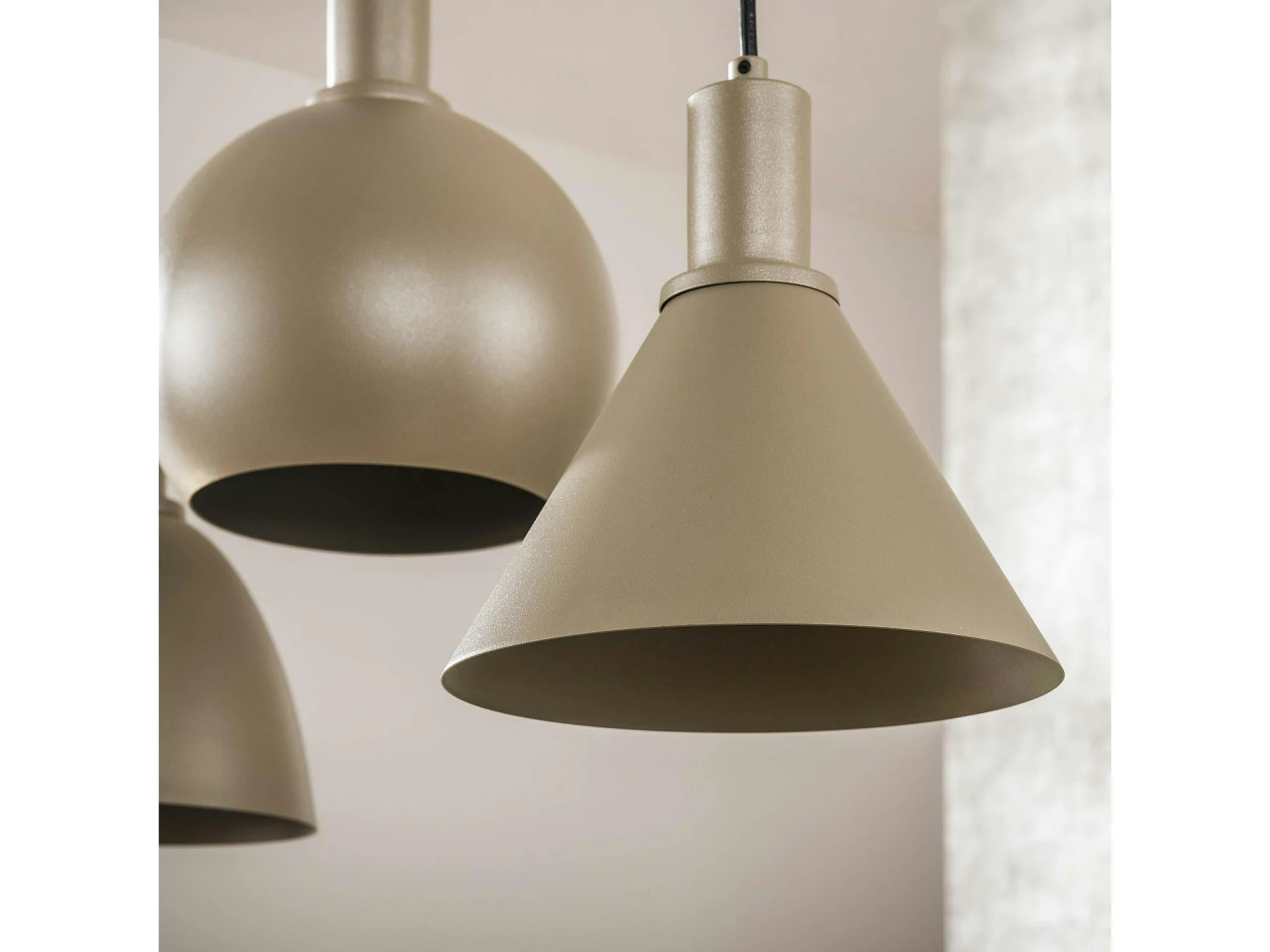 Suspension îlot cuisine 5 abat-jour métal beige TRIBECA