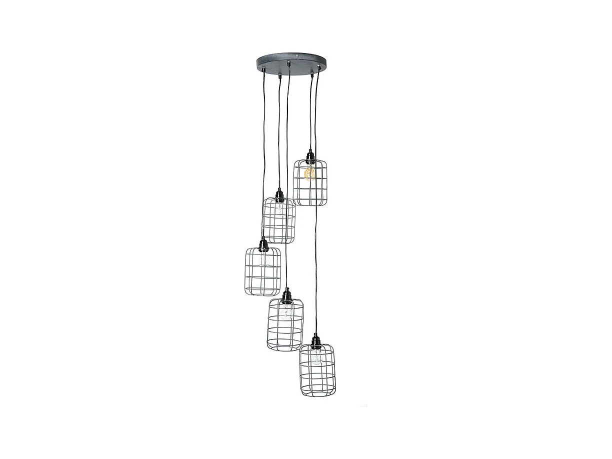 Suspension industrielle 5 lampes étagées en métal patiné effet vieilli L30 cm LOFT