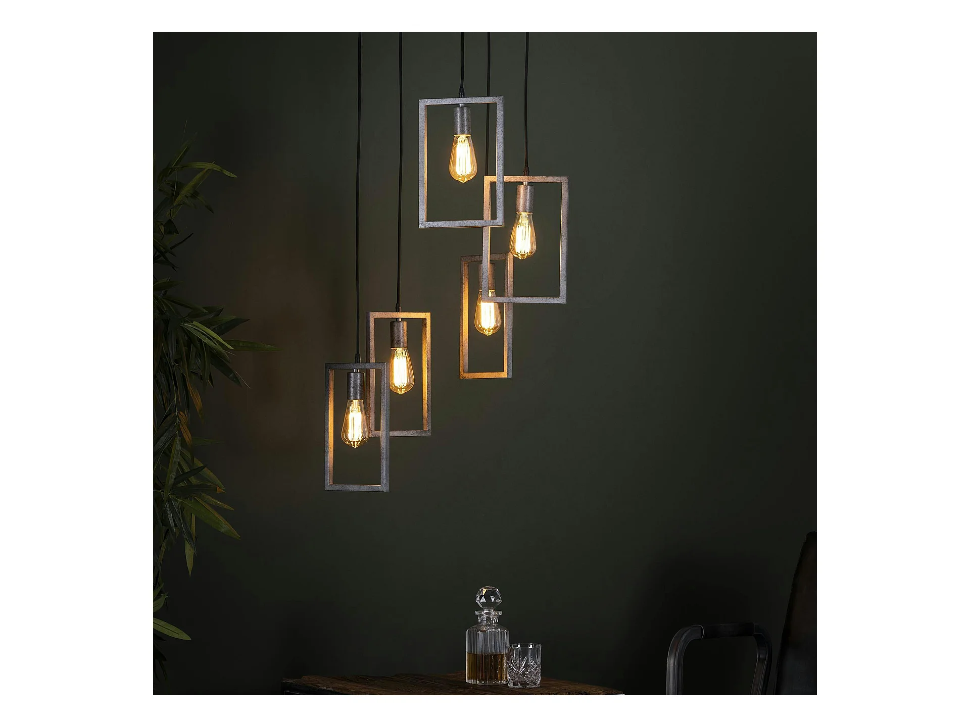 Suspension industrielle 5 lampes graphiques étagées argent vieilli RALF