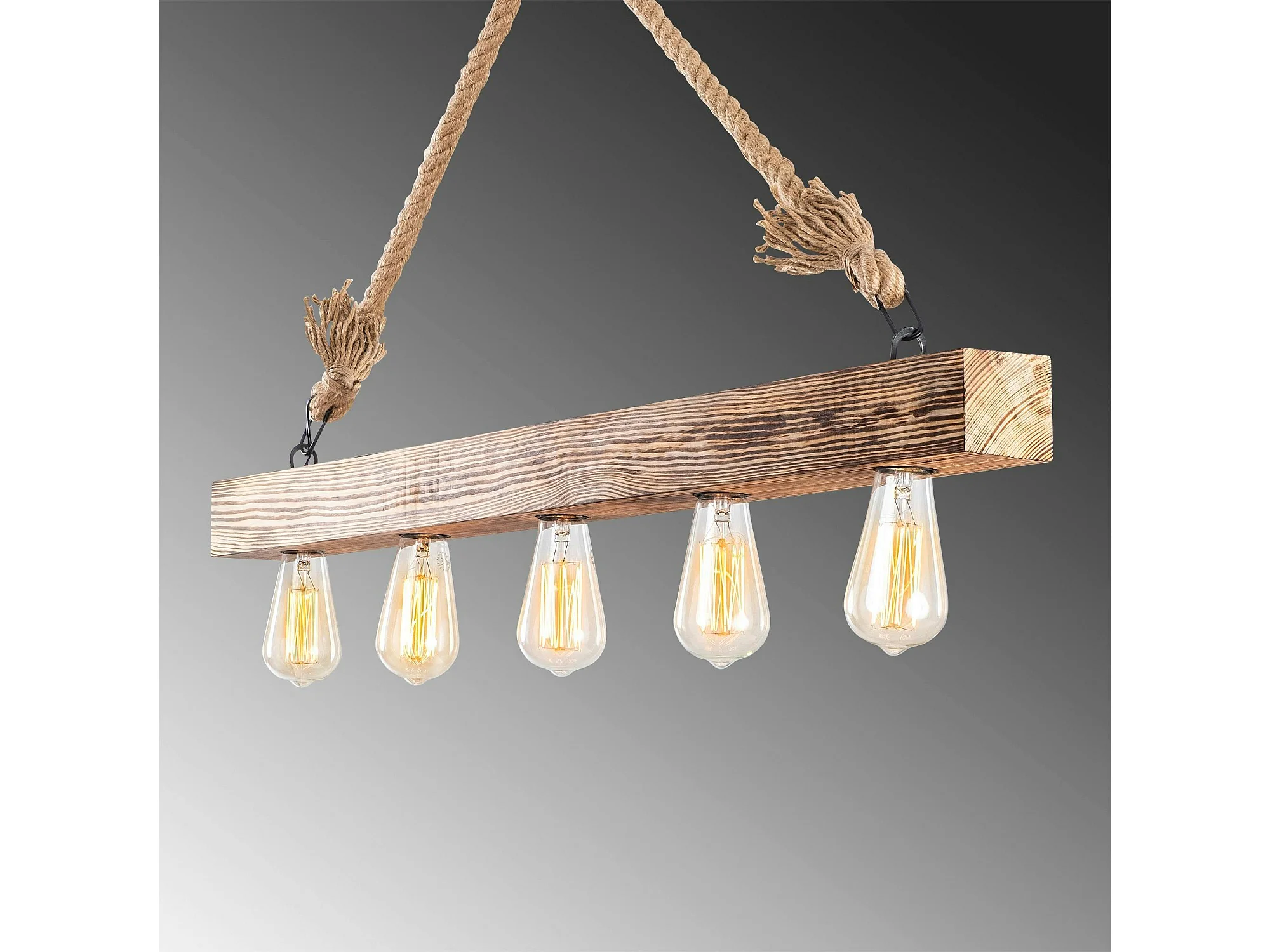 Suspension industrielle bois & corde - 5 ampoules CAMOGLI