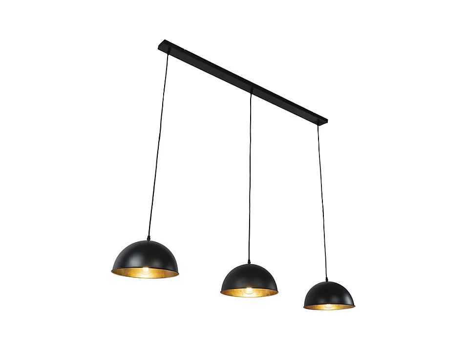 Lampe suspendue design noir avec intérieur doré 3 lumières - Buell