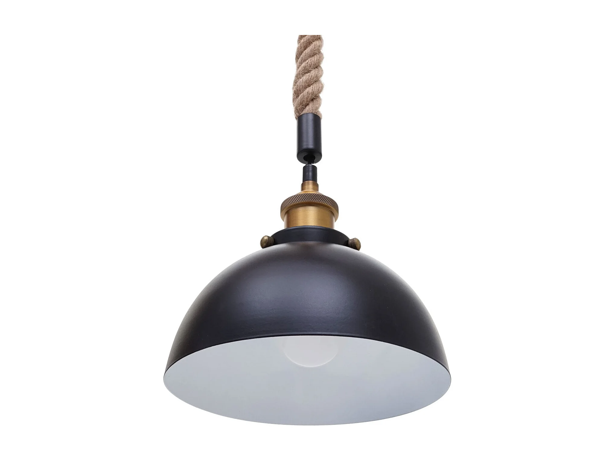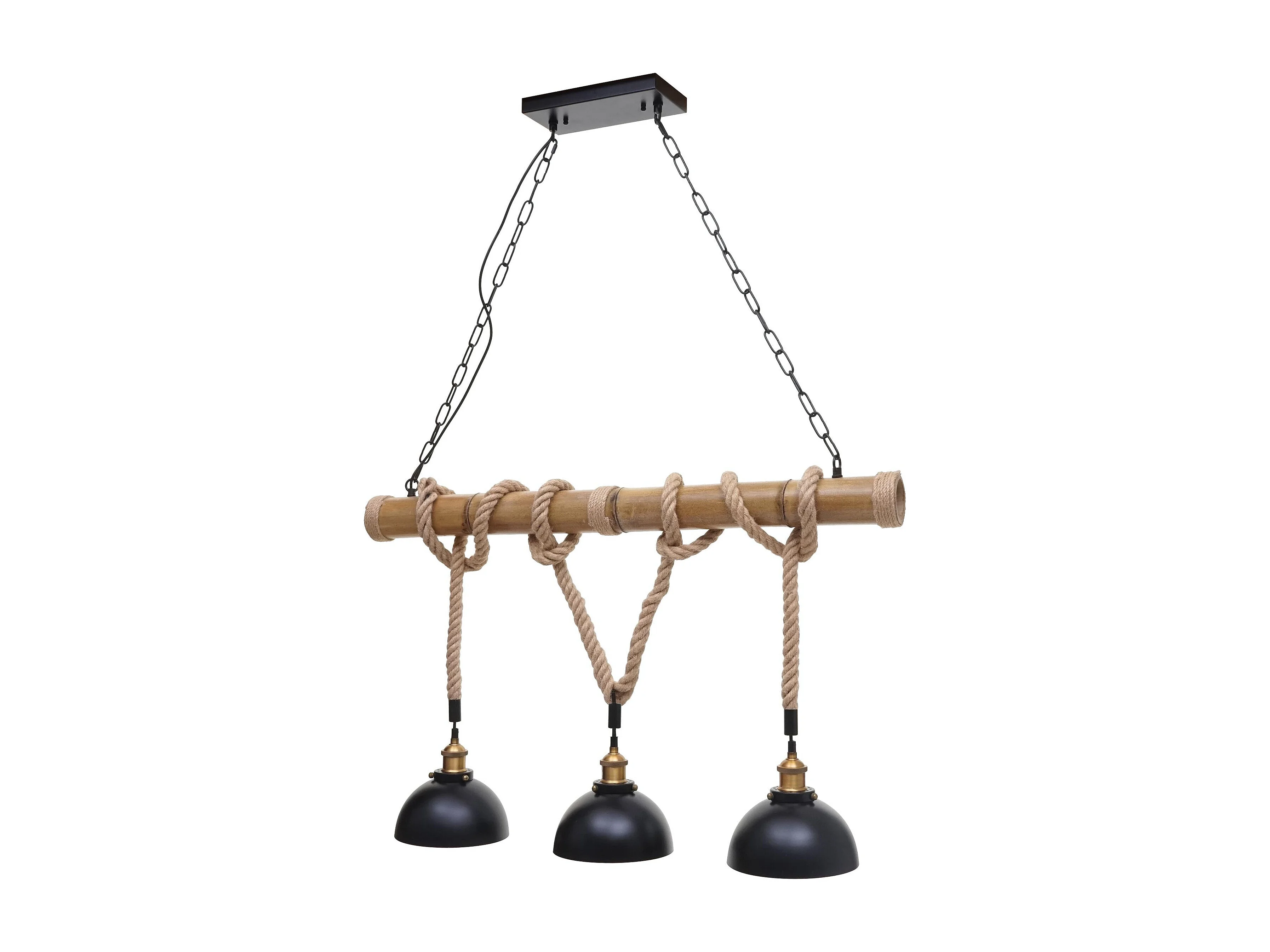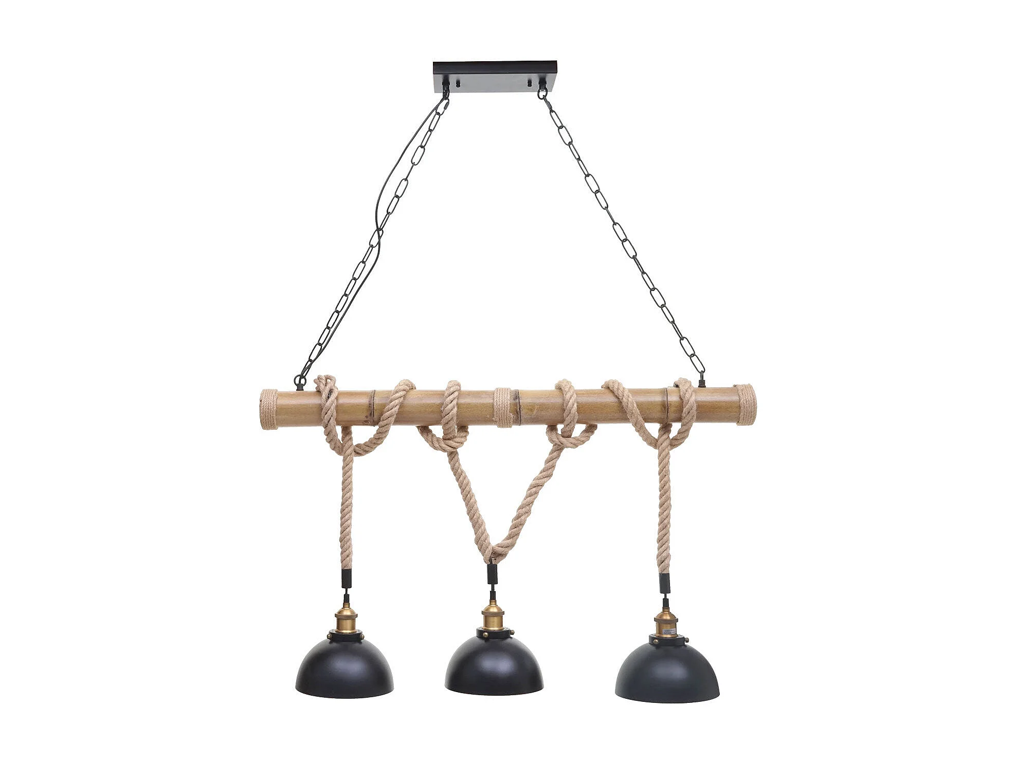Suspension Lampe lustres style industrielle vintage bambou corde métal noir 3x abat-jour dôme 04_0003598