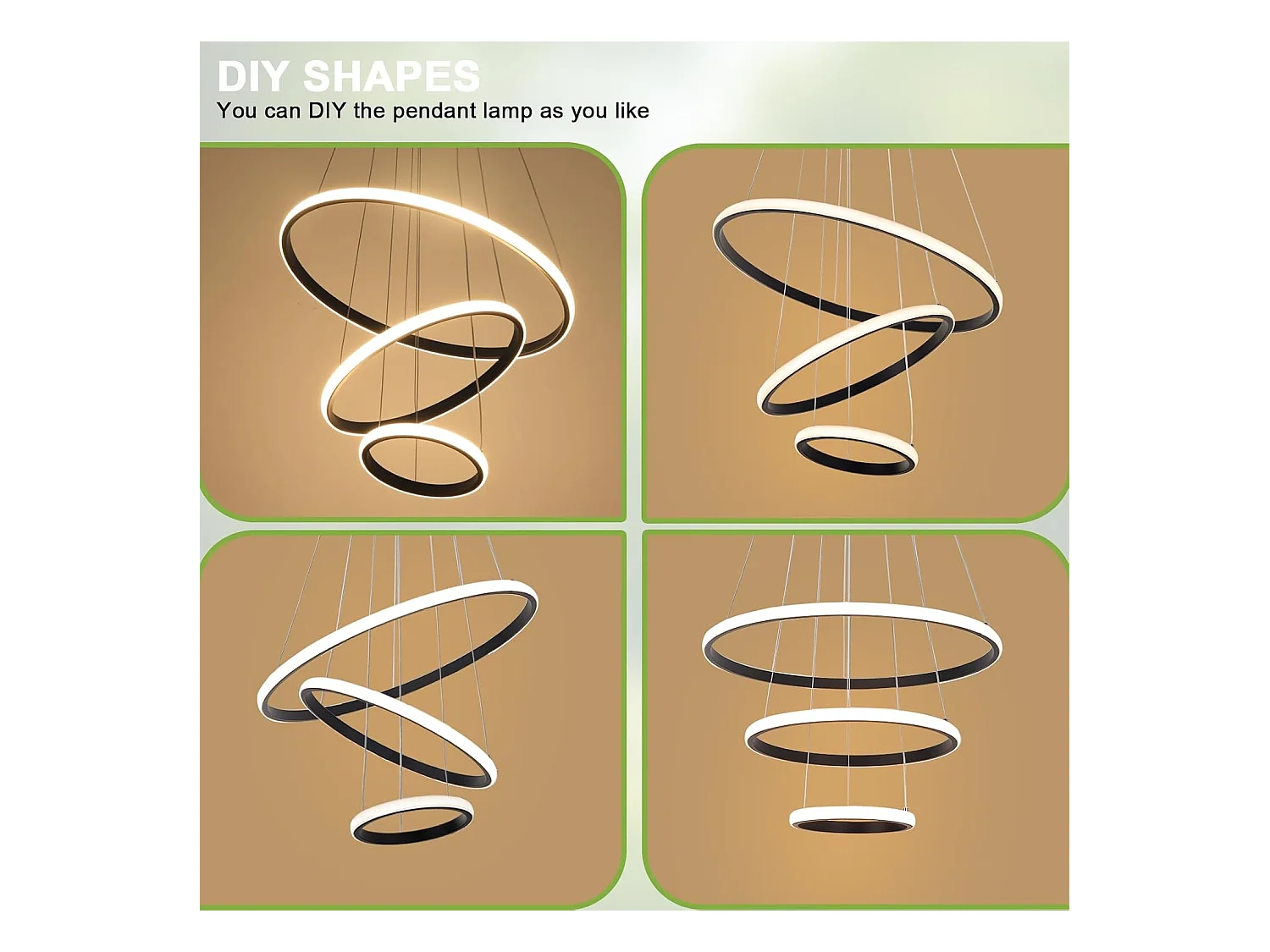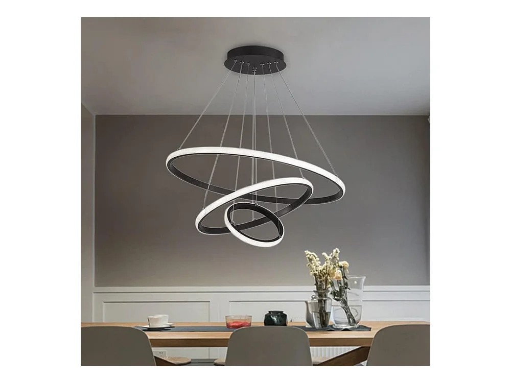 Suspension Led Moderne, Lustre Luminaire 3 Anneaux Suspendu LED Noir, Réglable Lampes Suspendu Dimmable 3000K/4500K/6500K, 20+35+50CM, 40W