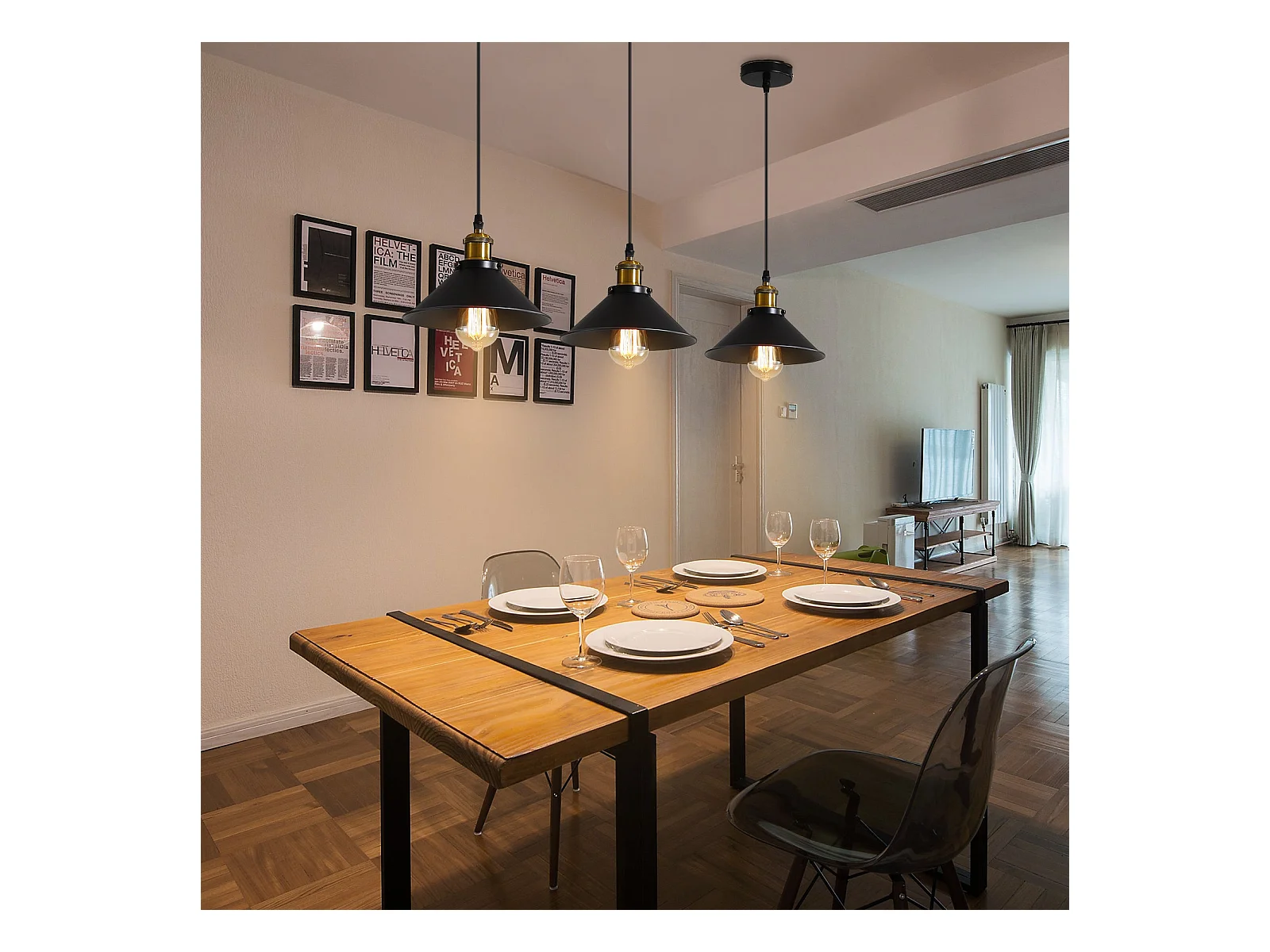 Suspension lustre industriel 3 lumière avec 120 cm câble réglable E27, noir, sans ampoules