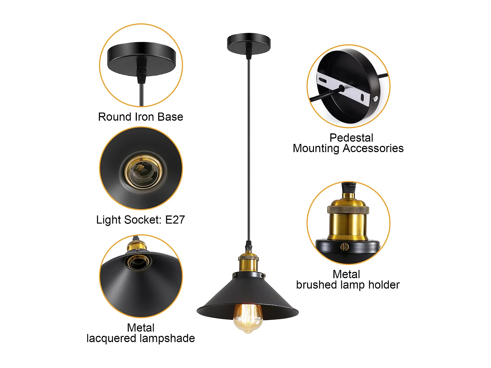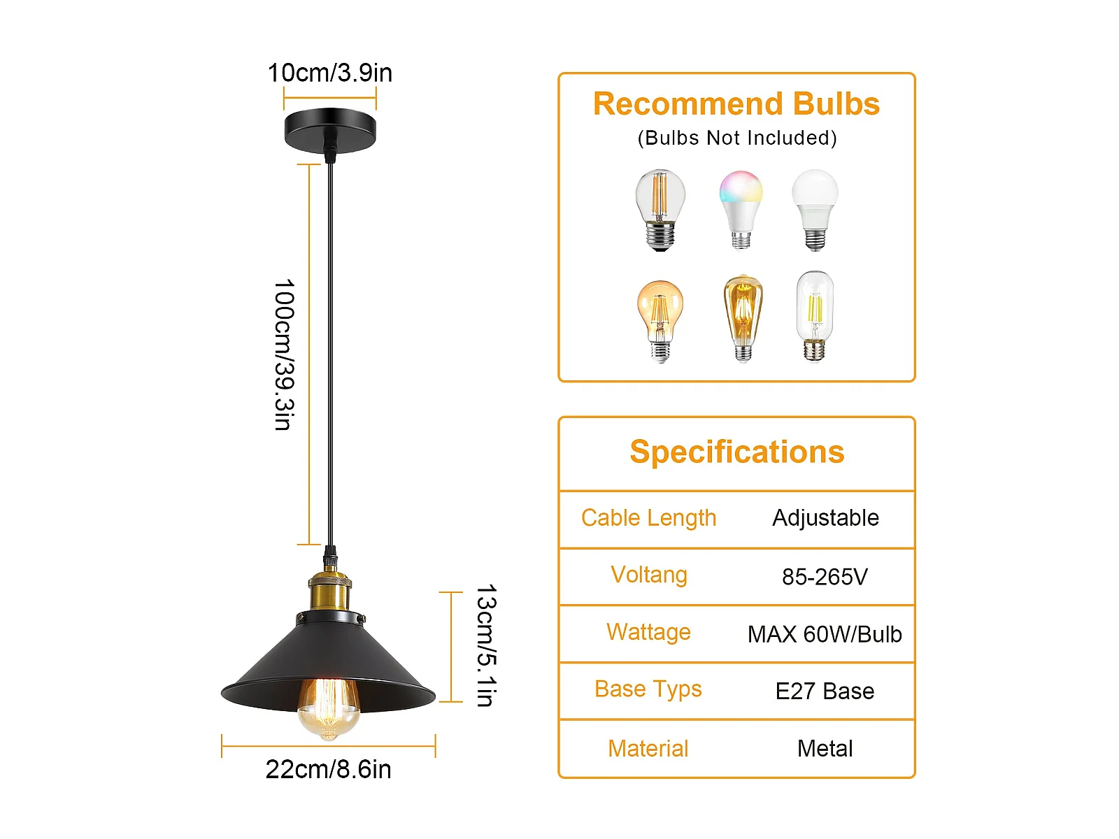 Luminaire Suspension en Métal Noir D 35 cm style industriel