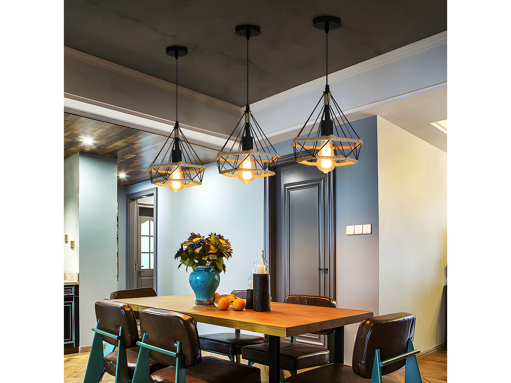 Suspension lustre vintage en diamant- brun - 25*25*130cm - en fer - sans ampoule E27