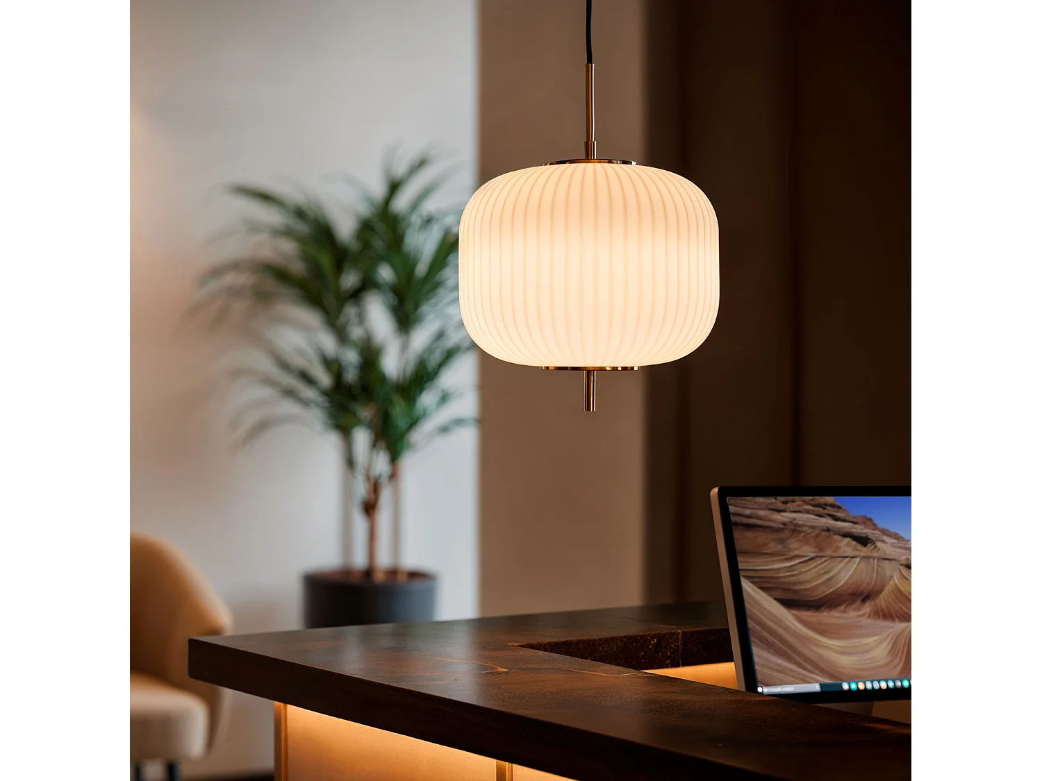 Suspension boule en verre opaque et métal cuivré - GLOBE