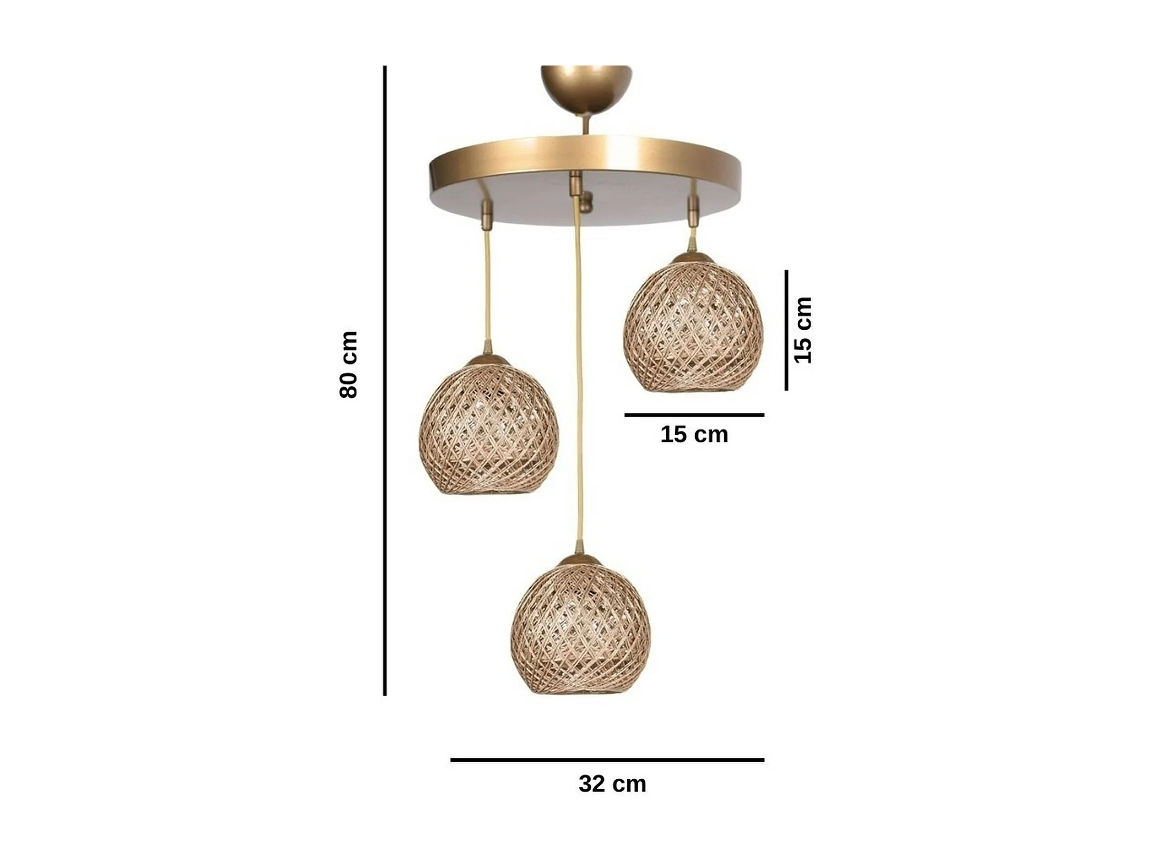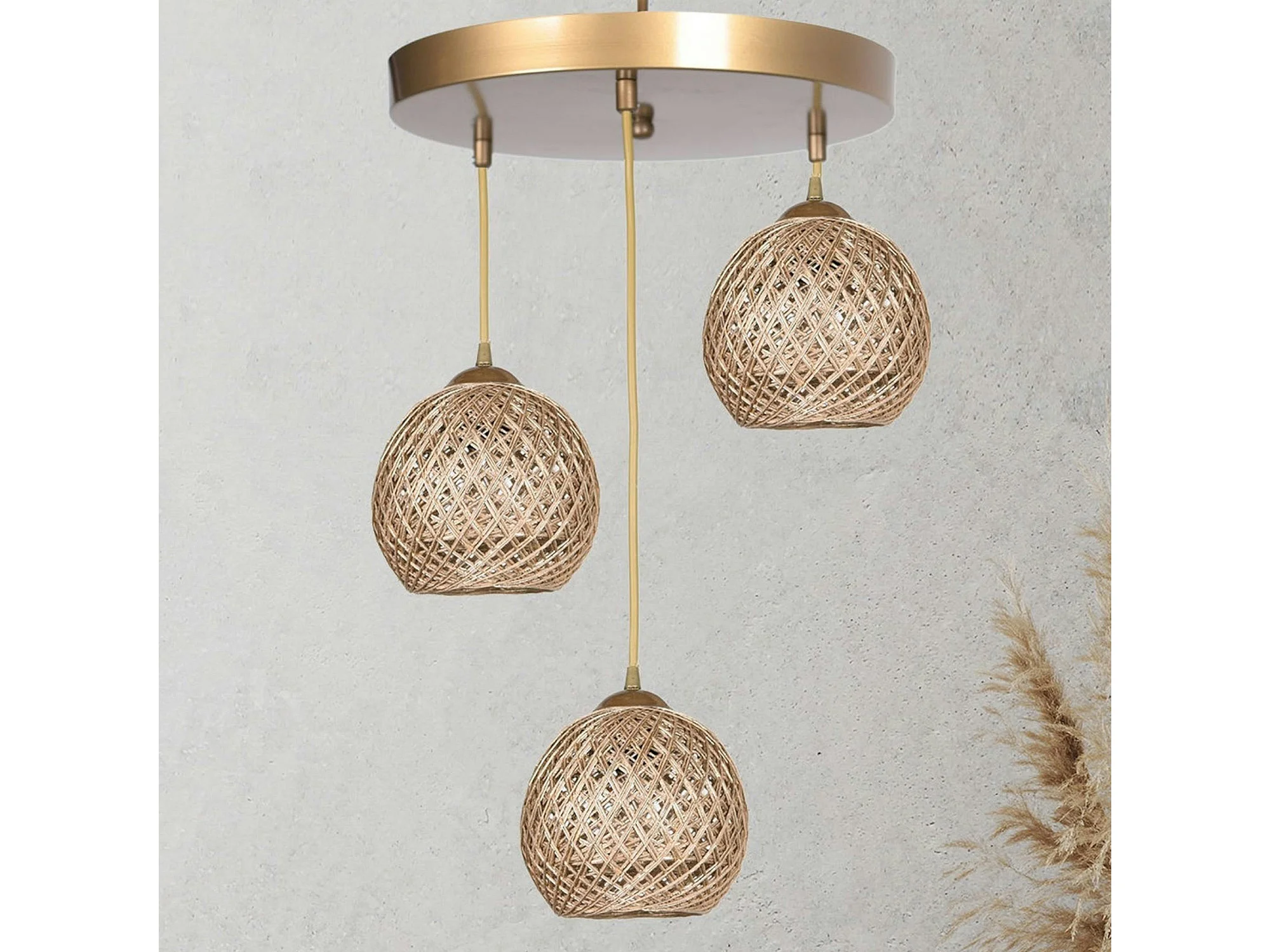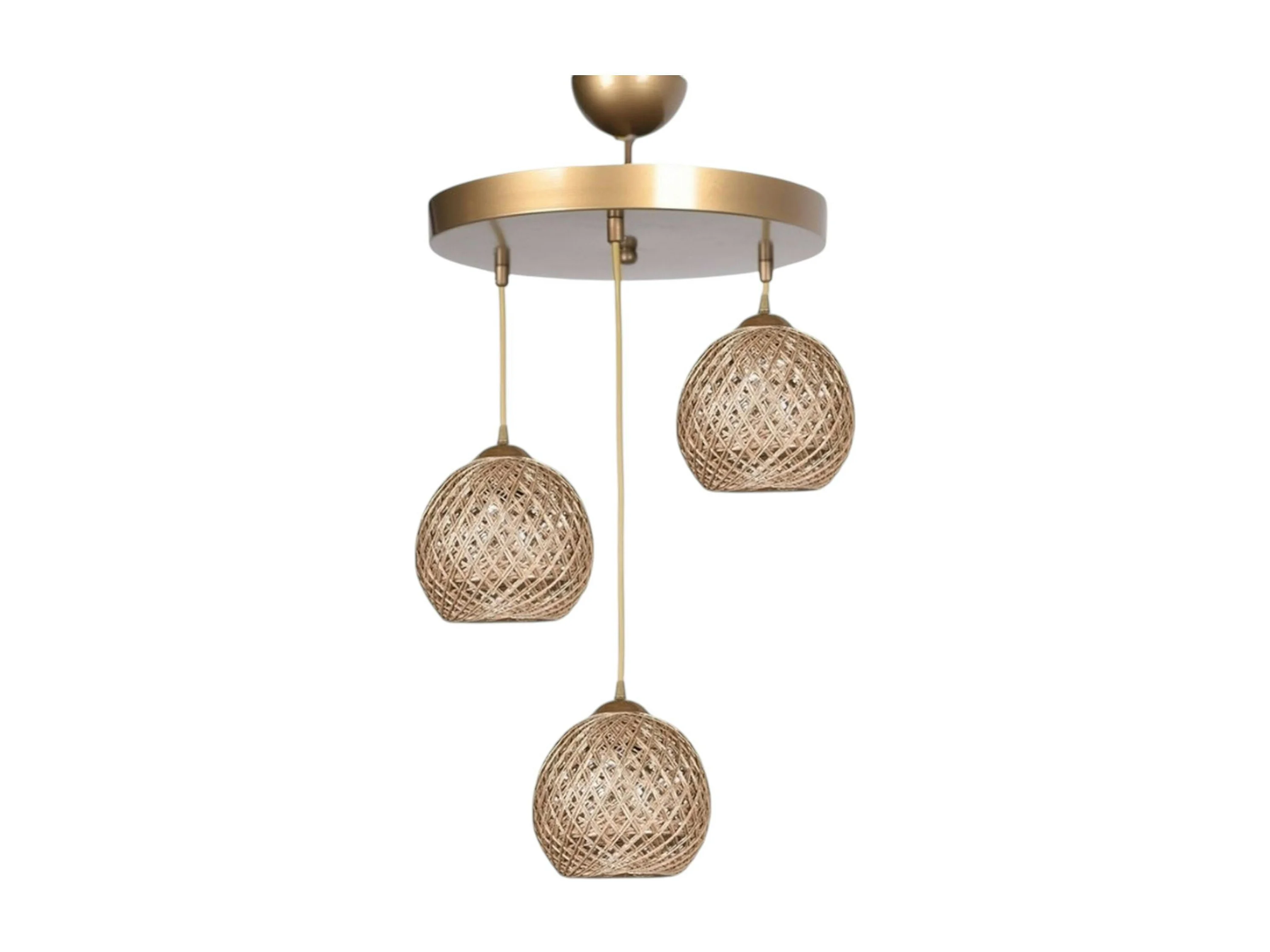 Suspension moderne 3 abat-jour tressés finition dorée AROSA