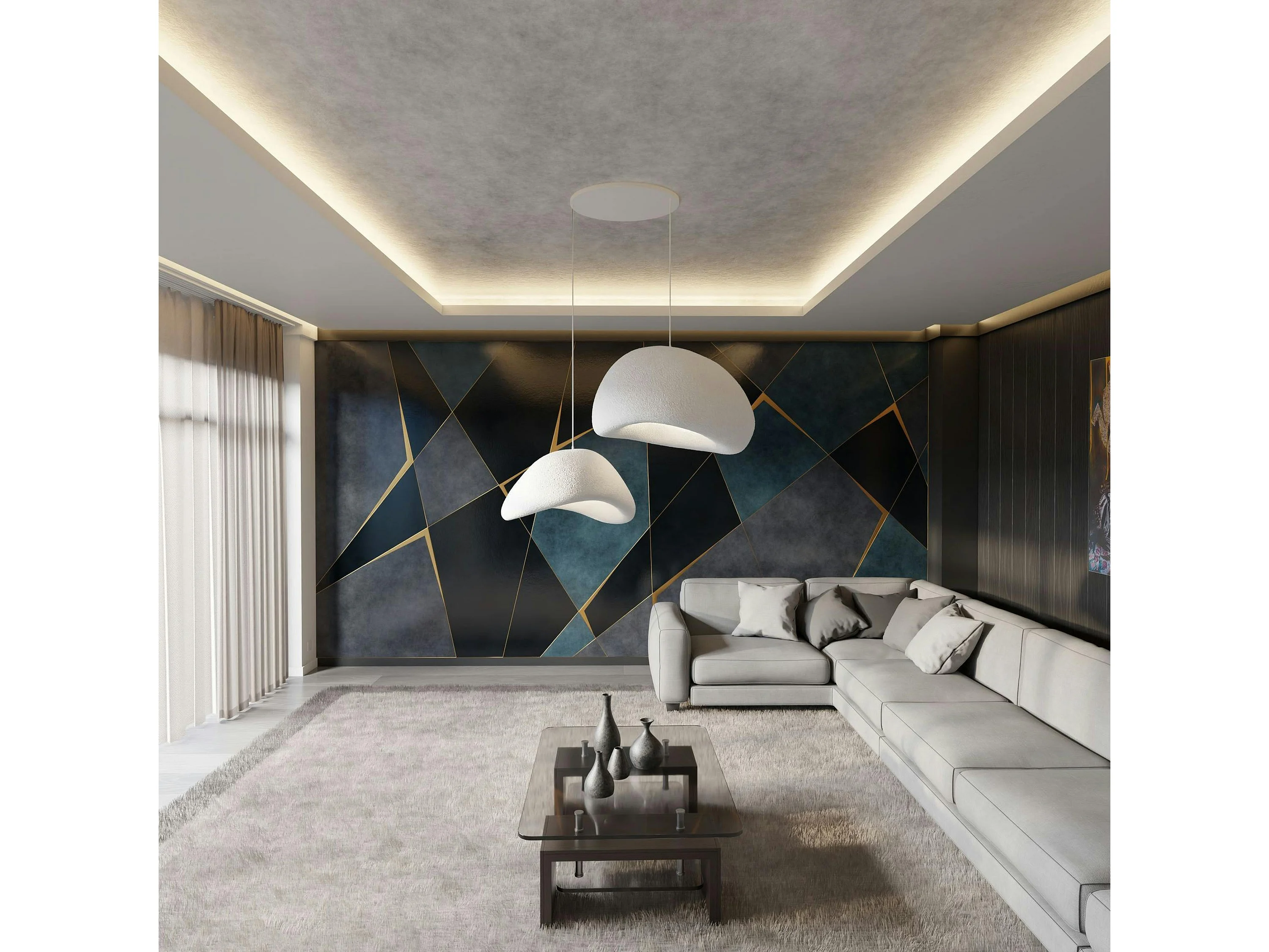 Suspension moderne blanche 2 abat-jour design 80 cm NOXIS