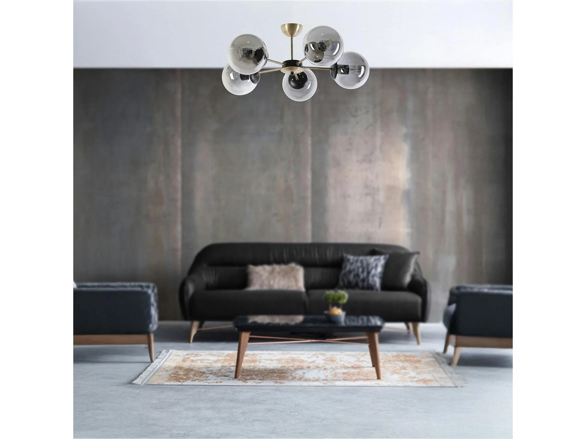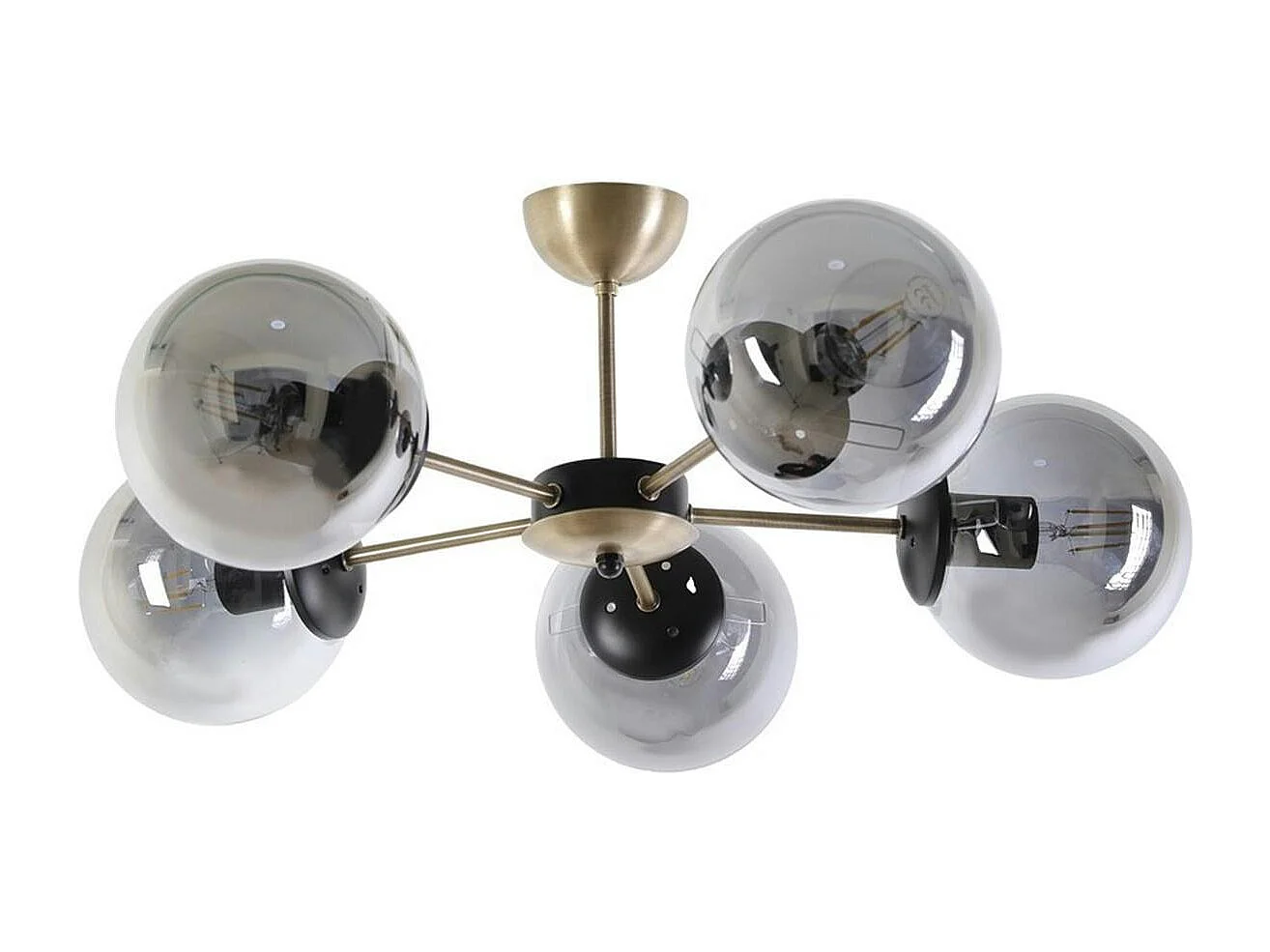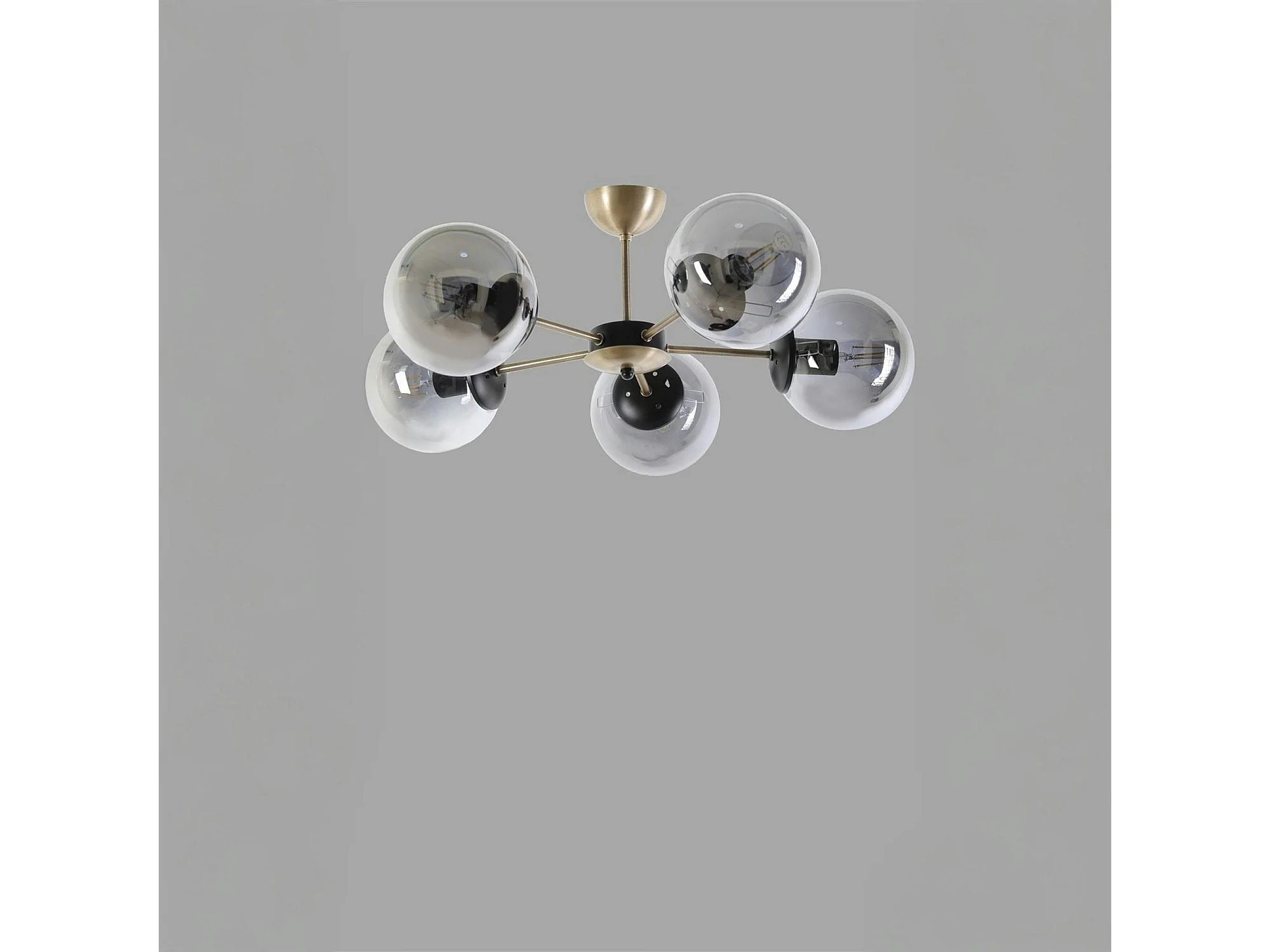 Suspension moderne de salon, 5 globes verre fumé SIERRE