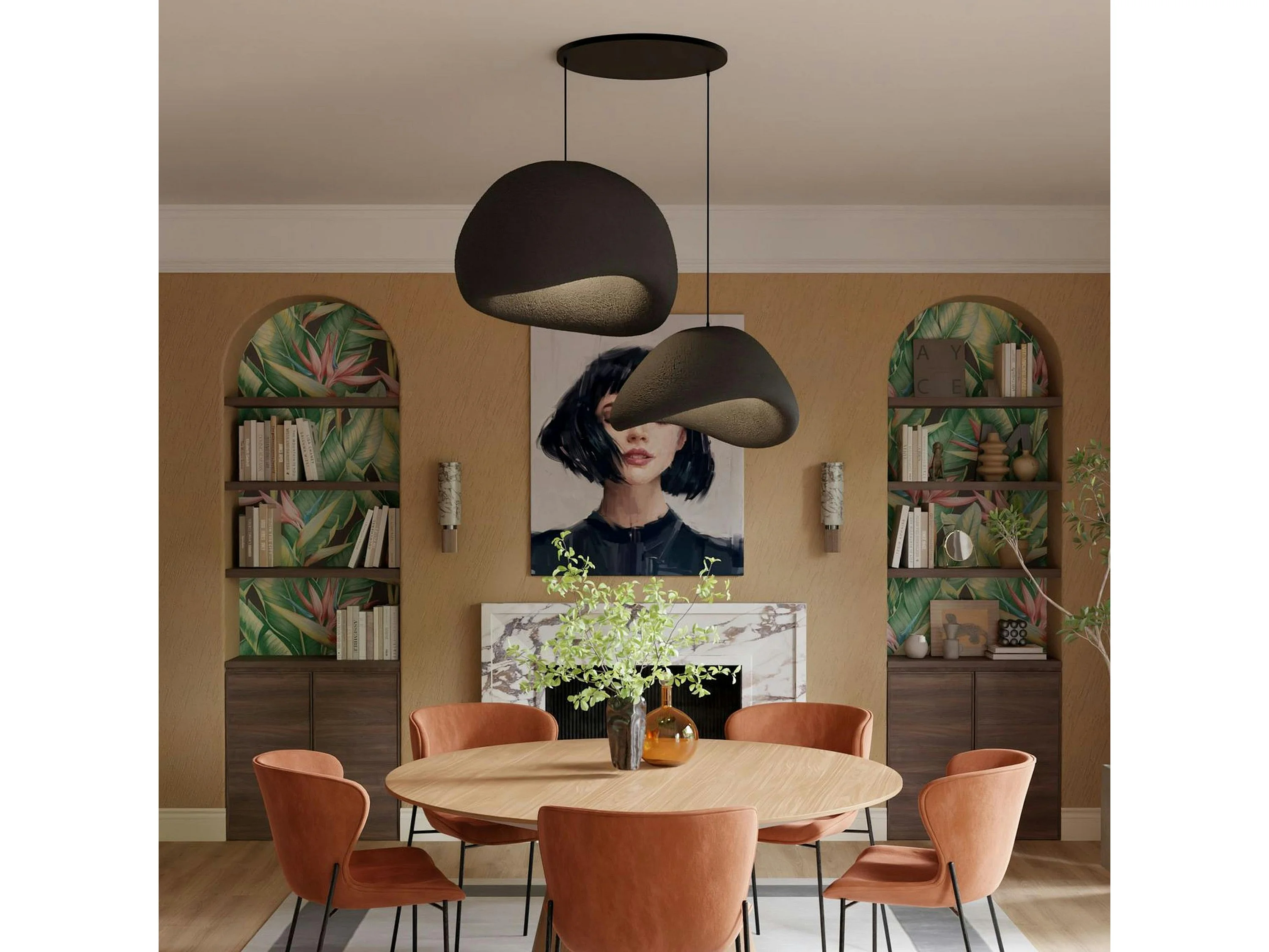 Suspension moderne noire 2 abat-jour design 80 cm NOXIS