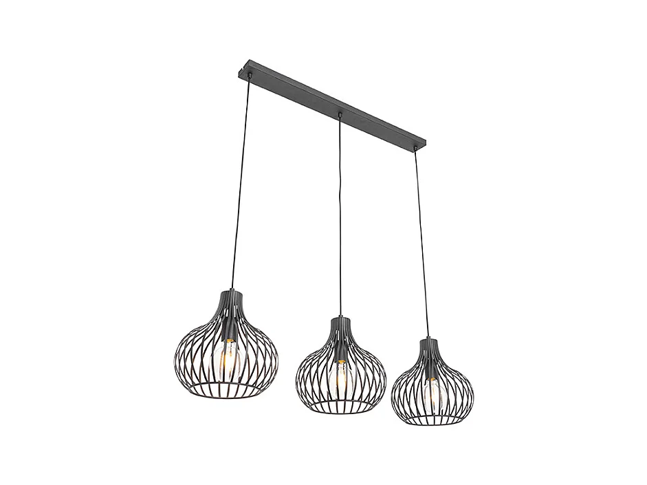 Suspension noire allongée avec LED dimmable en 3 étapes 3 lumières - Lyani