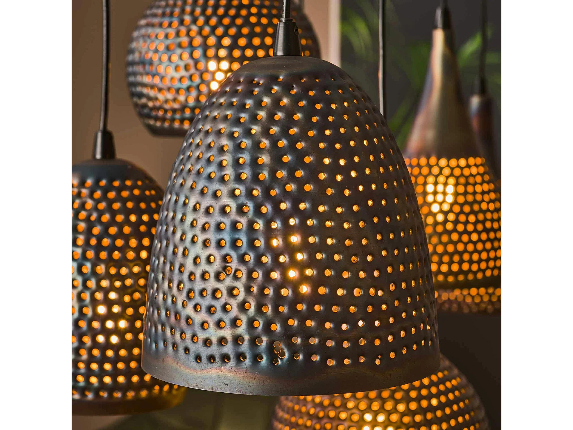 Suspension multiple 7 lampes en métal brun sombre JAVA