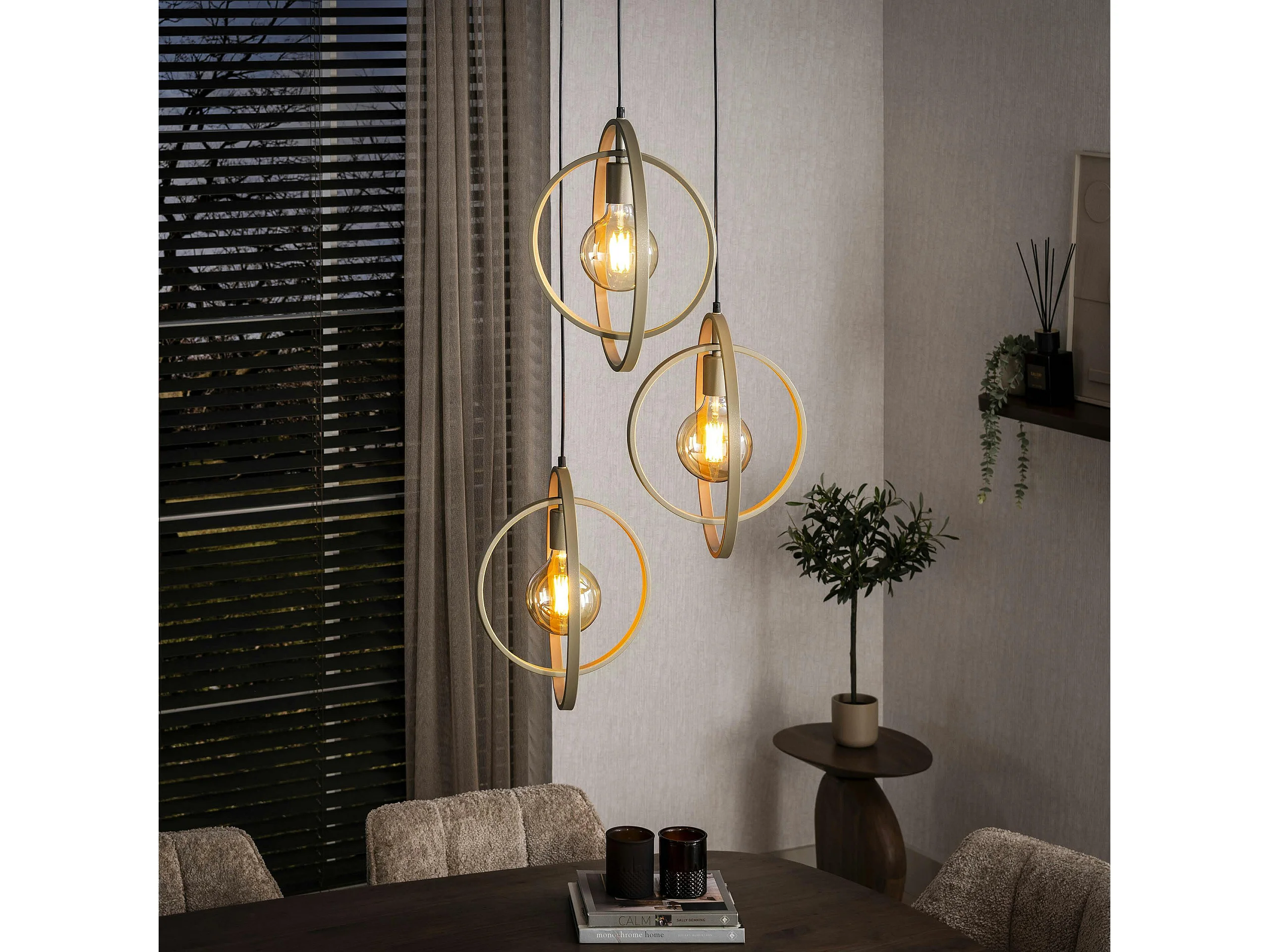 Suspension multiple beige 3 anneaux pivotants TRIBECA