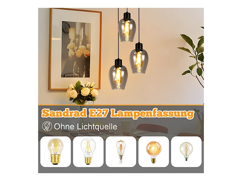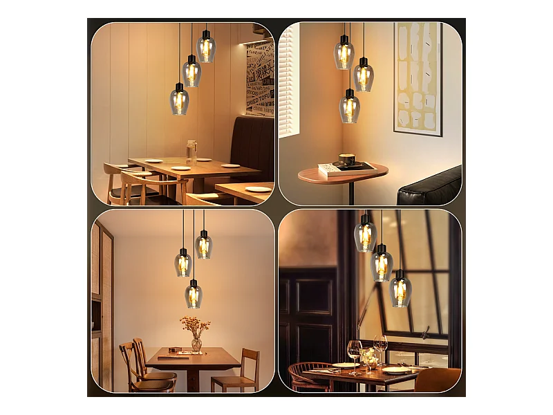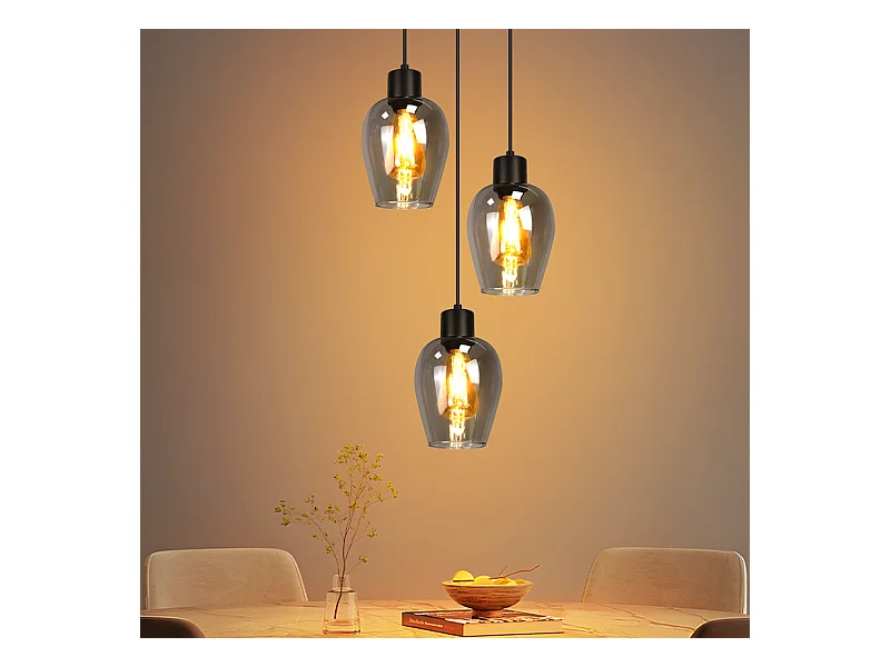 Suspension NETTLIFE vintage 3 flammes lampe suspendue verre E27 à manger lampe réglable en hauteur industrielle