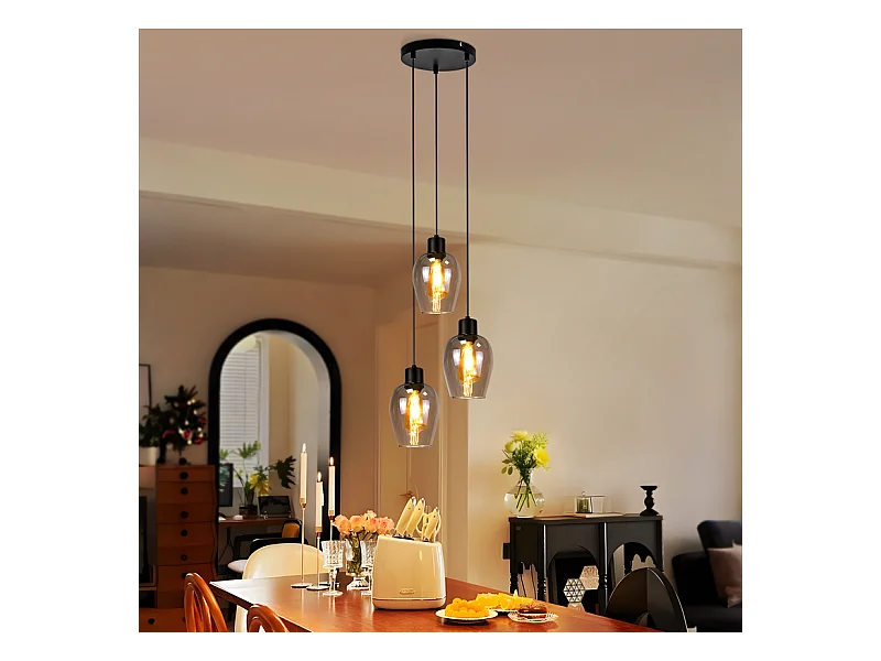 Lampe suspendue NETTLIFE pour table à manger, suspension en verre à 3 flammes vintage suspendue E27