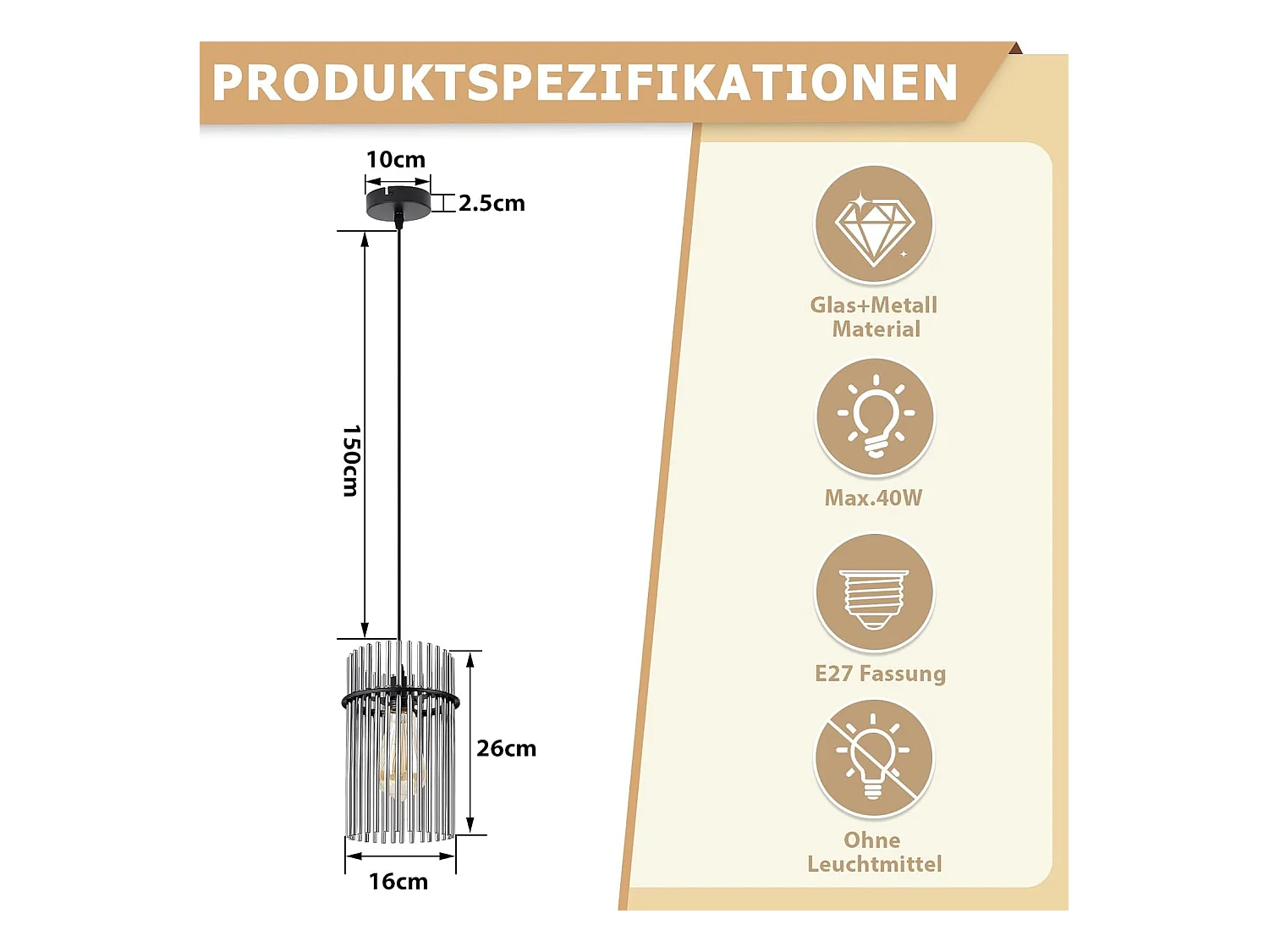 Suspension Nettlife table à manger lampe suspendue 1 flamme - suspension noire E27 lampe de salle à manger verre Ø 16 cm (sans source lumineuse)