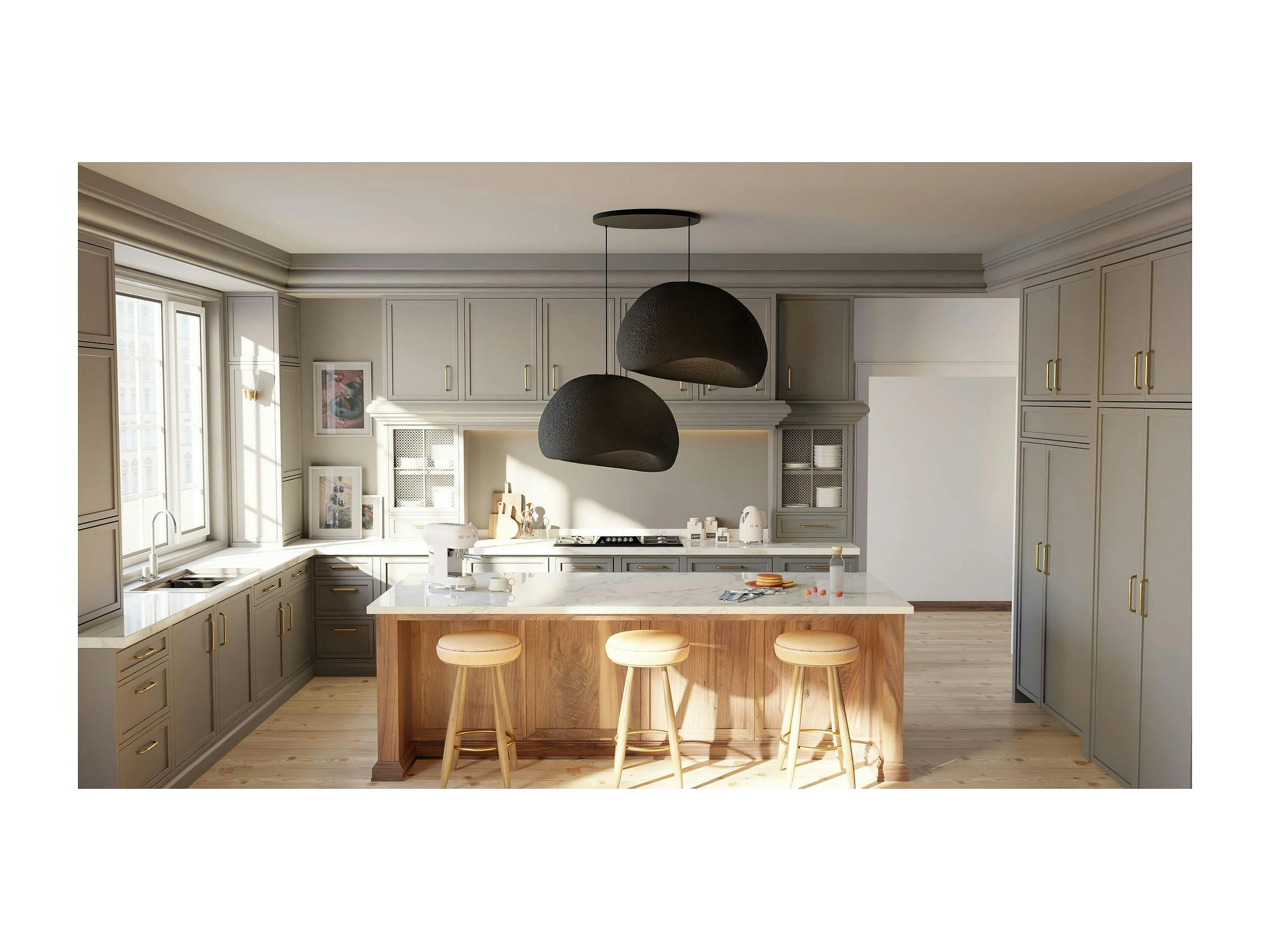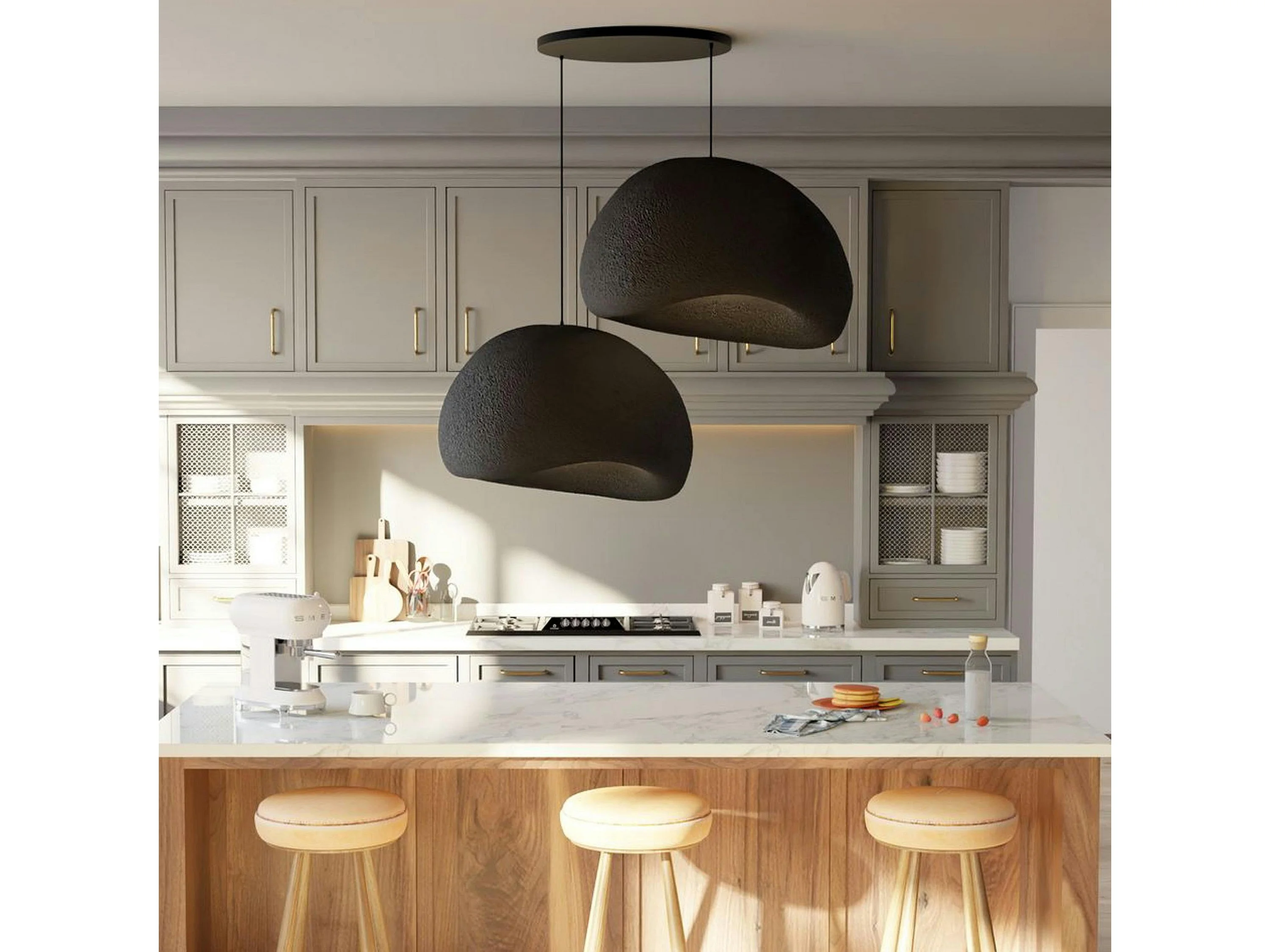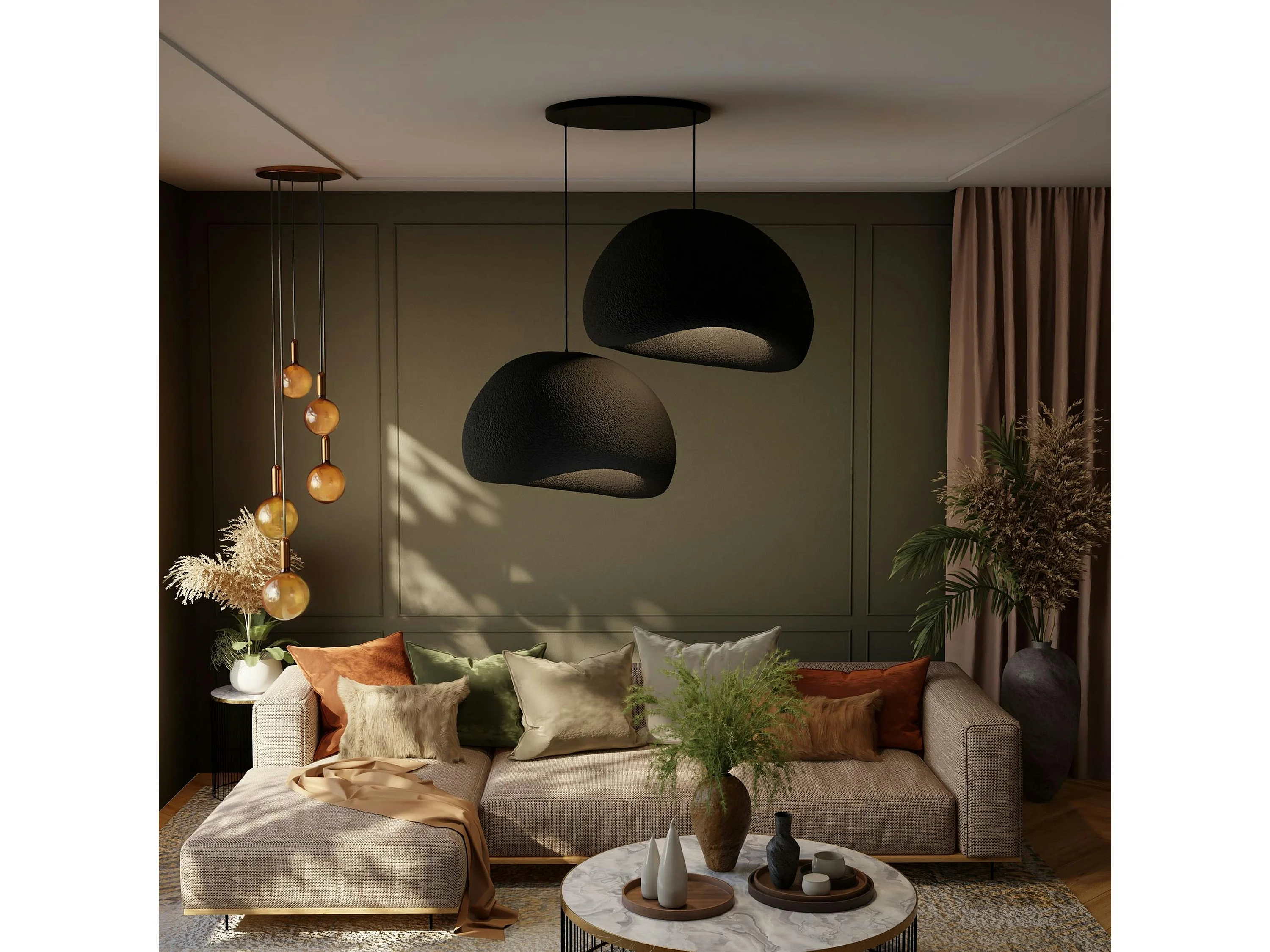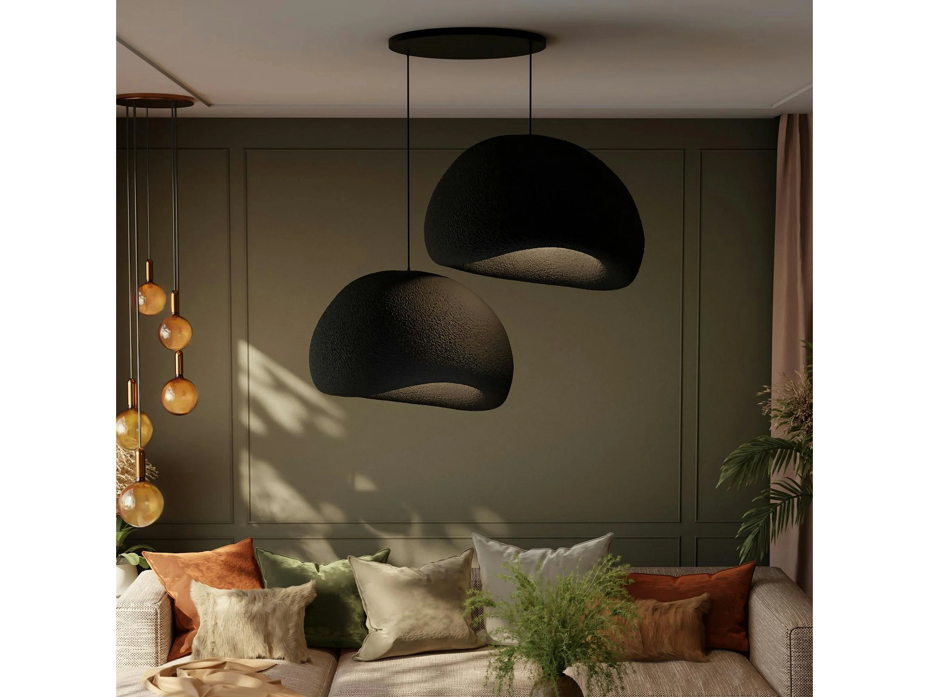 Suspension noire design 2 abat-jour organiques 85 cm NOXIS