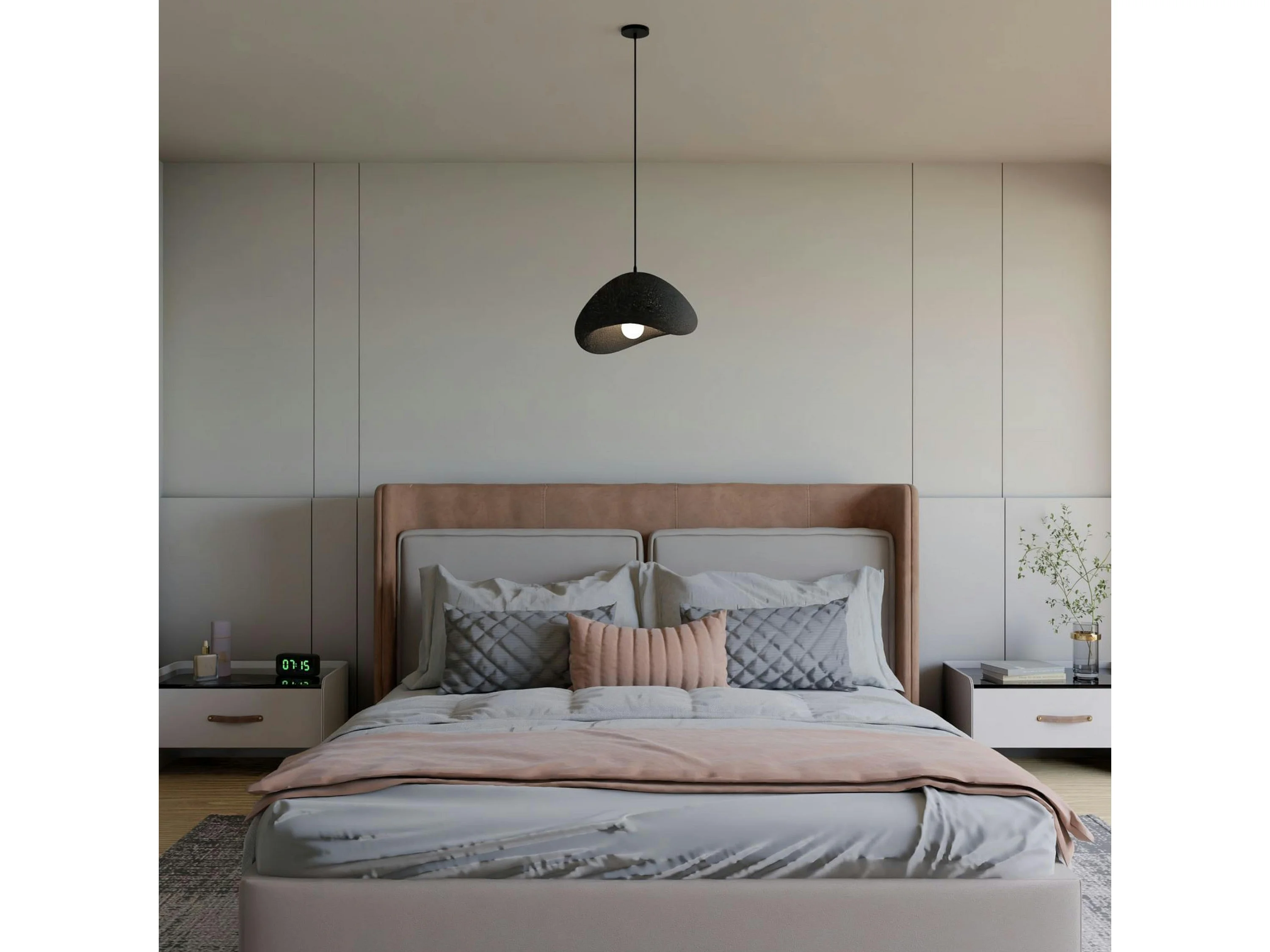Lampe de chevet suspendue noire mat câble rouge, forme cône SILE