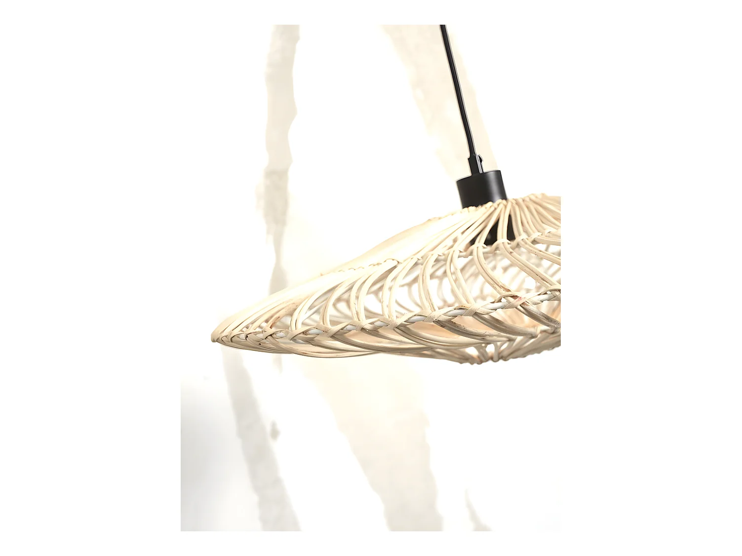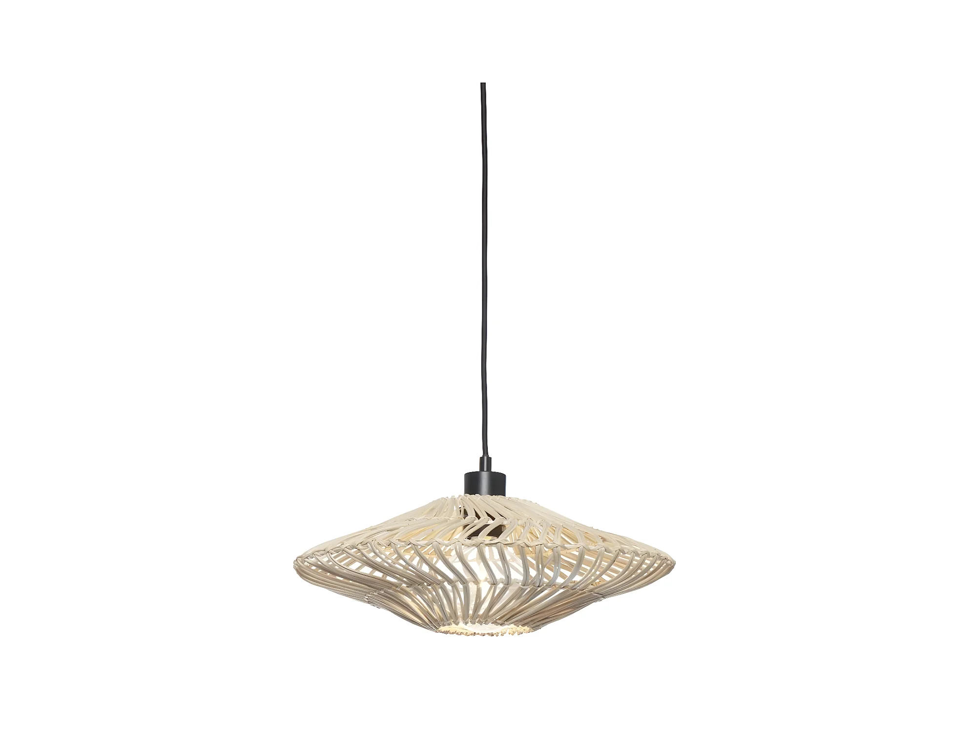 Suspension ronde en rotin blanc avec fil noir gainé