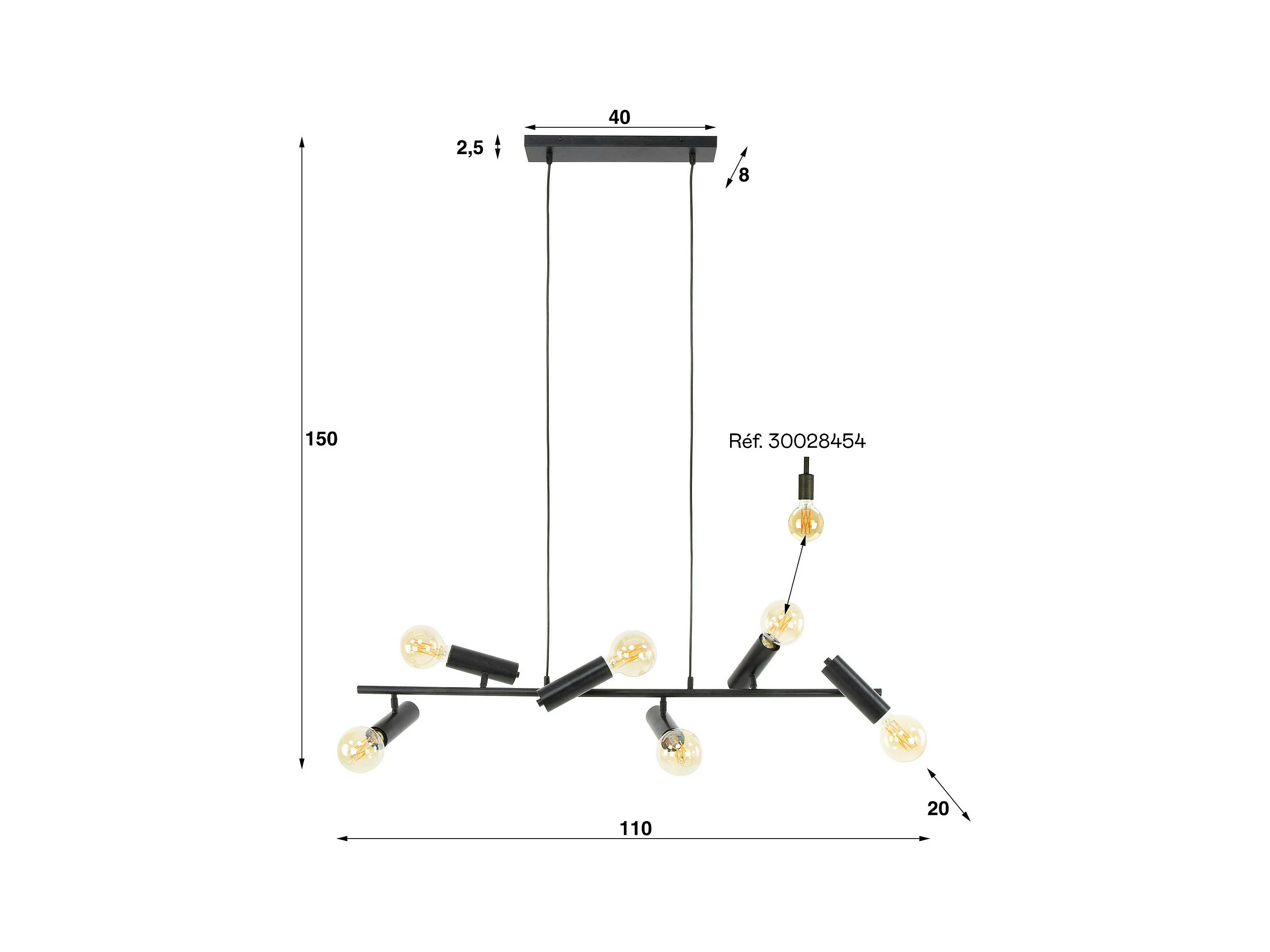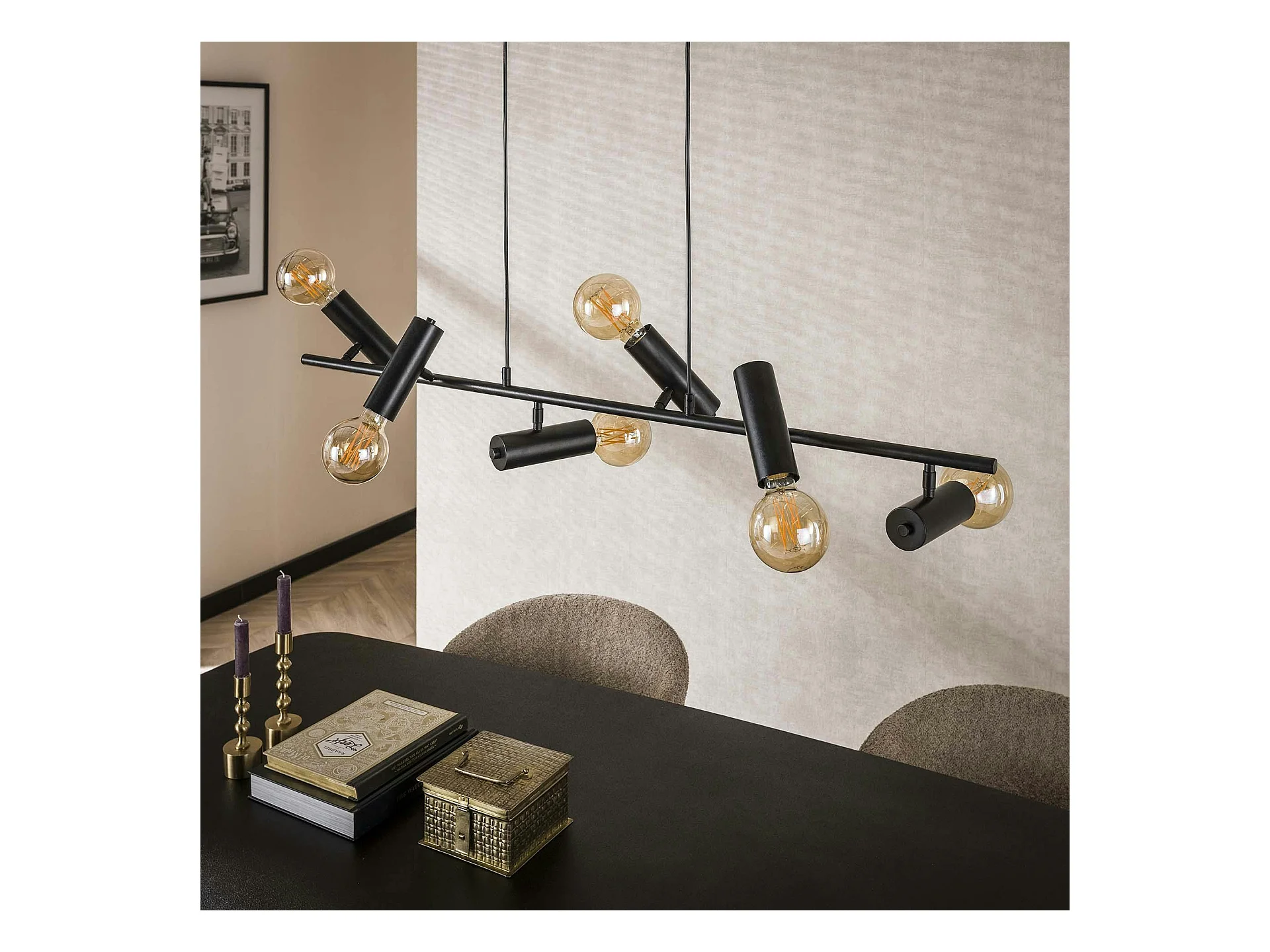 Suspension salle à manger tige 6 lampes, finition charbon RALF