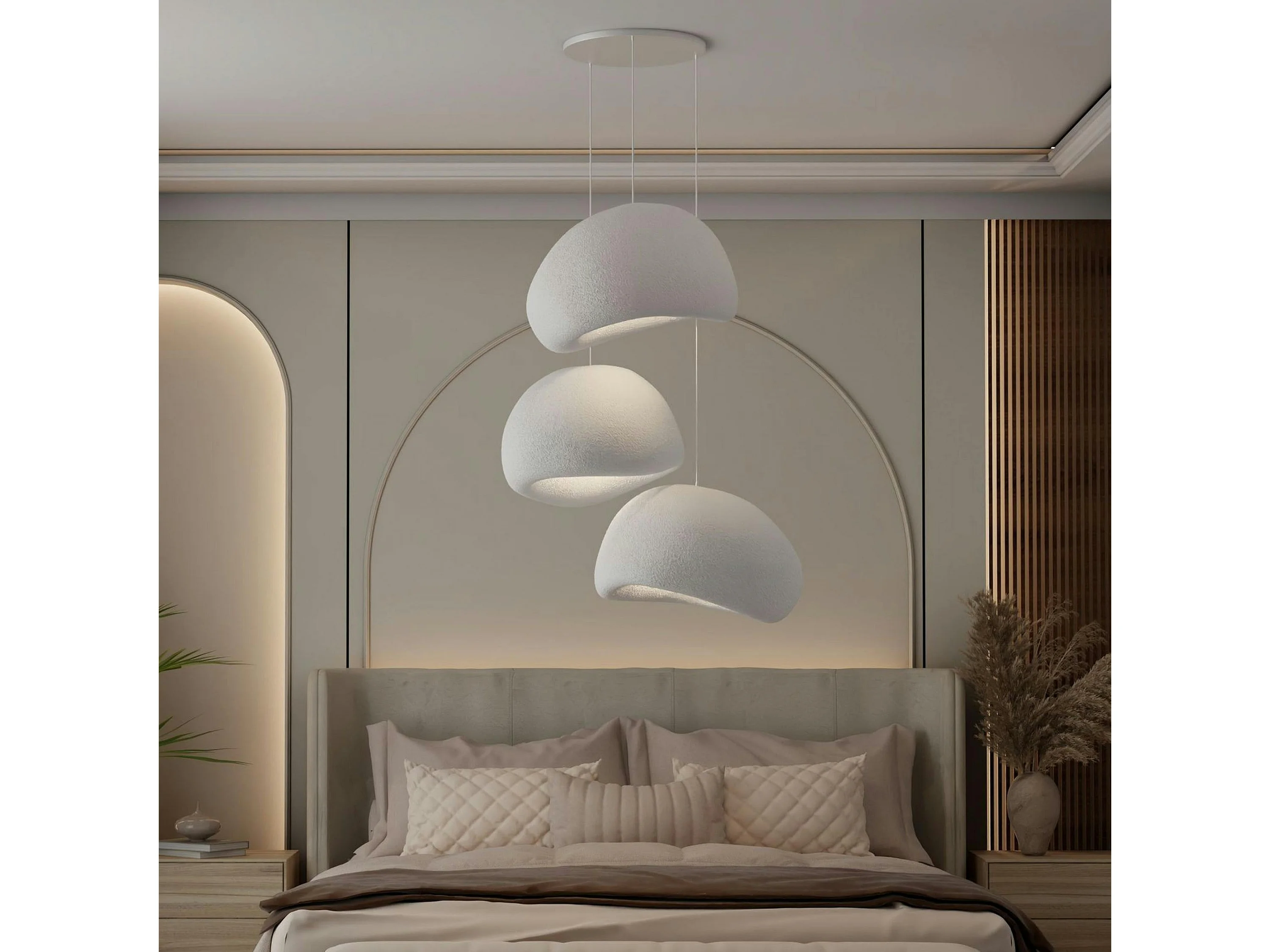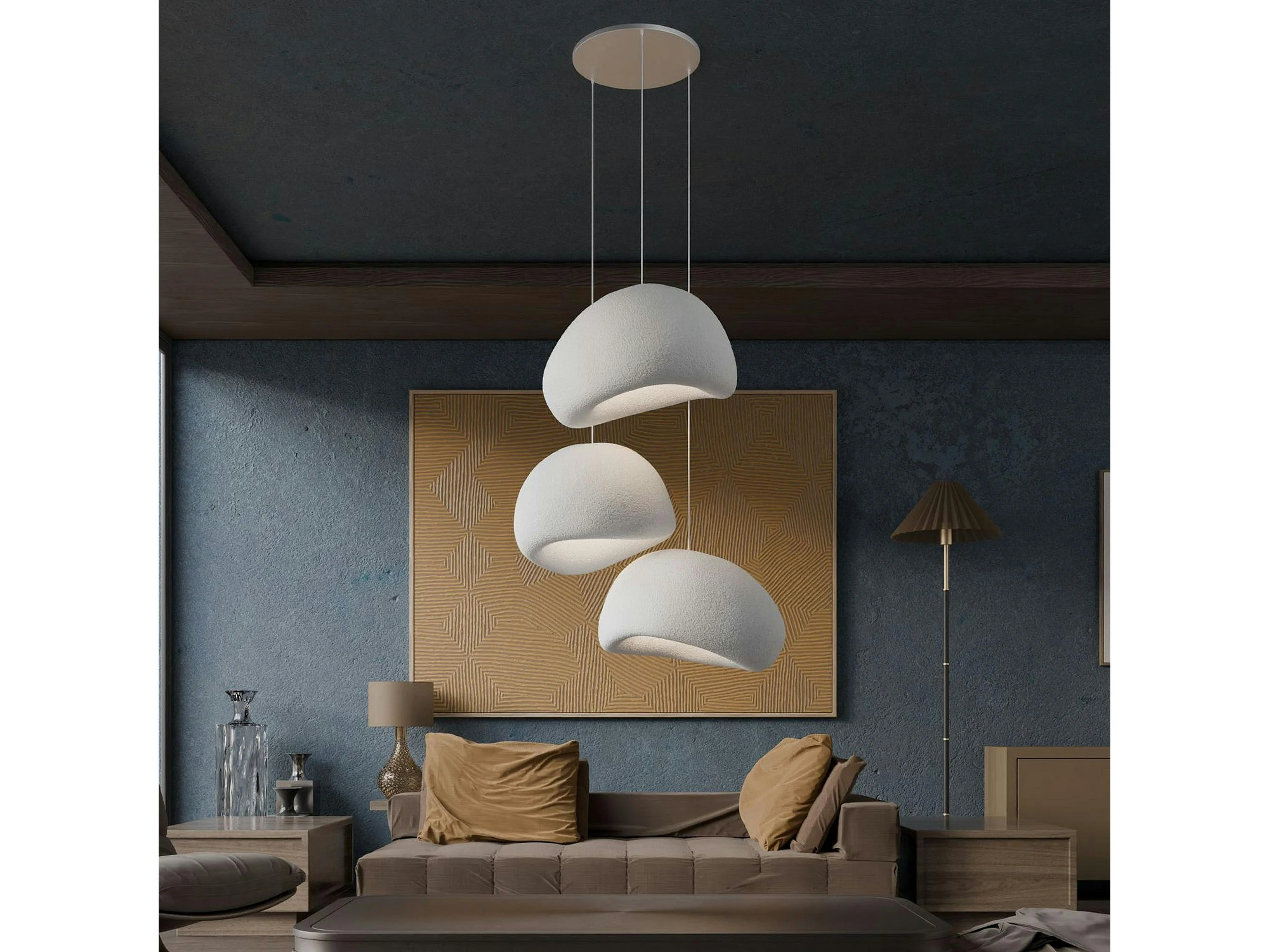 Suspension salon design blanche 3 abat-jour 80 cm NOXIS