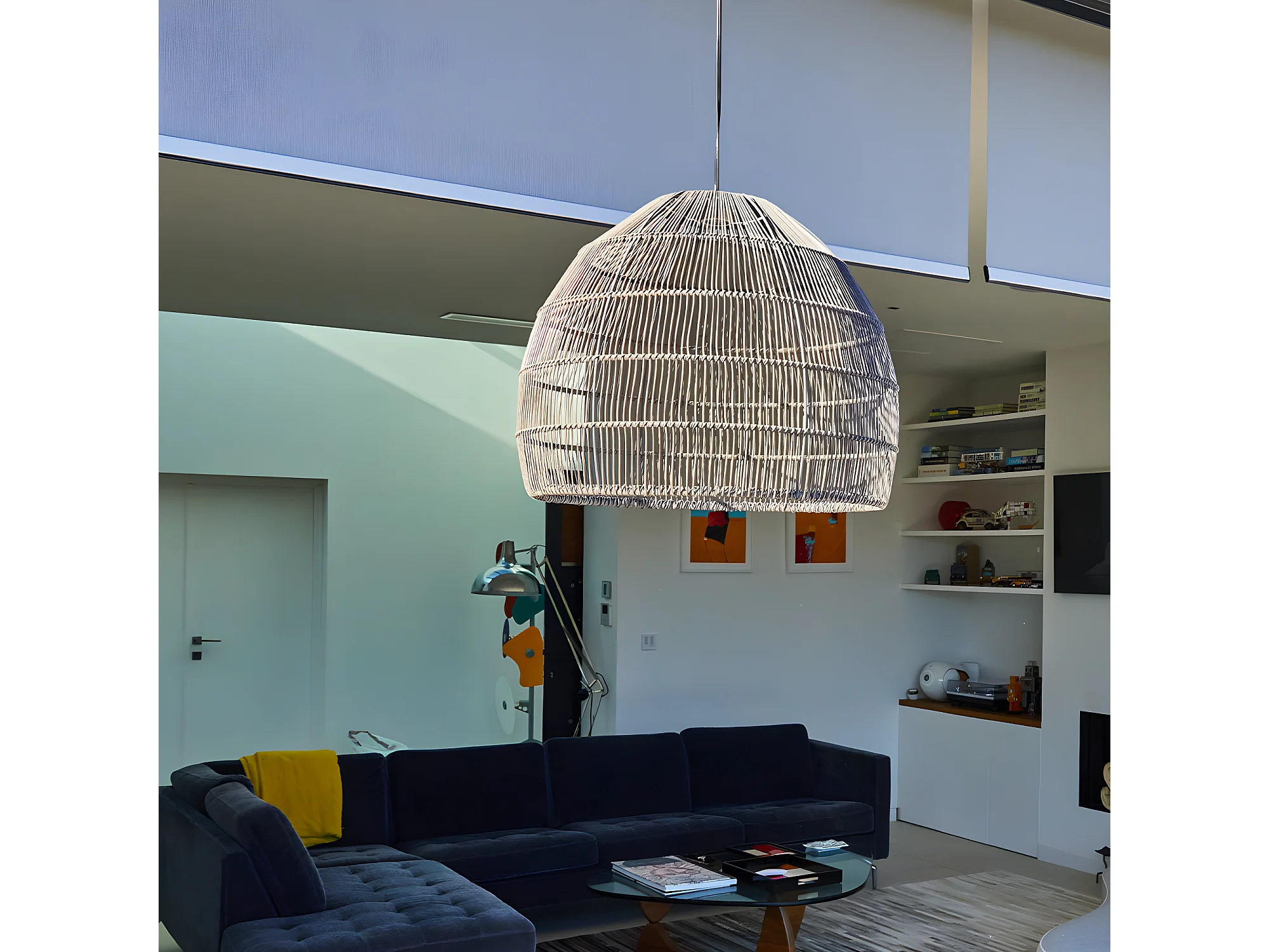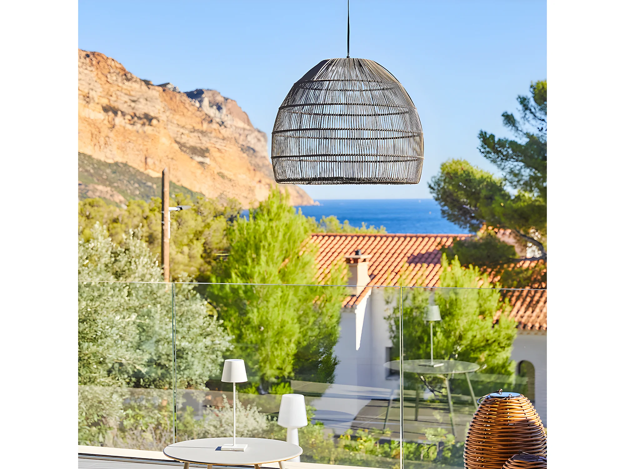 Suspension solaire naturel MAIDO Gris Poly rotin H42cm