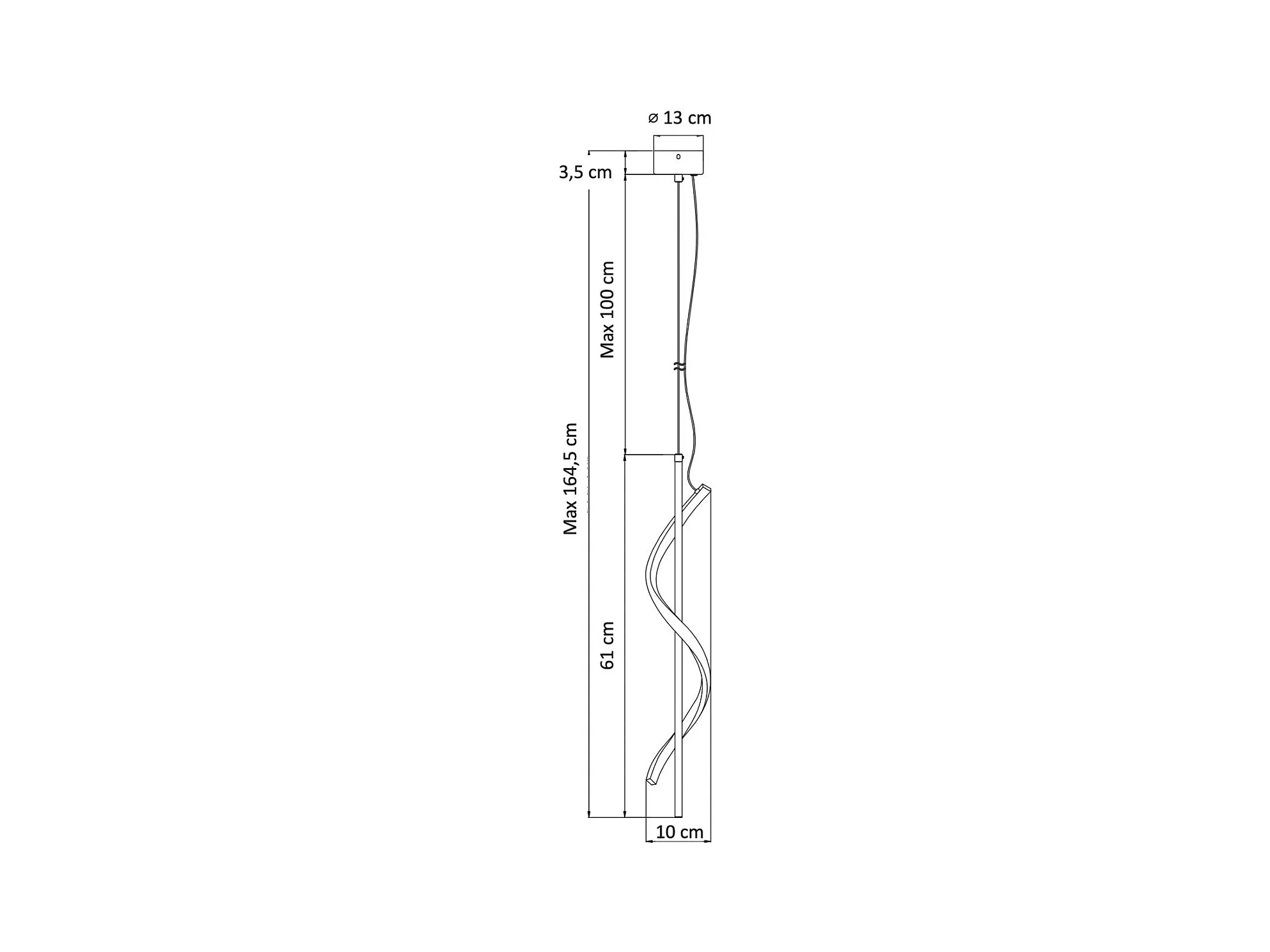 Grande suspension spirale noire 120 cm de long - Lybella